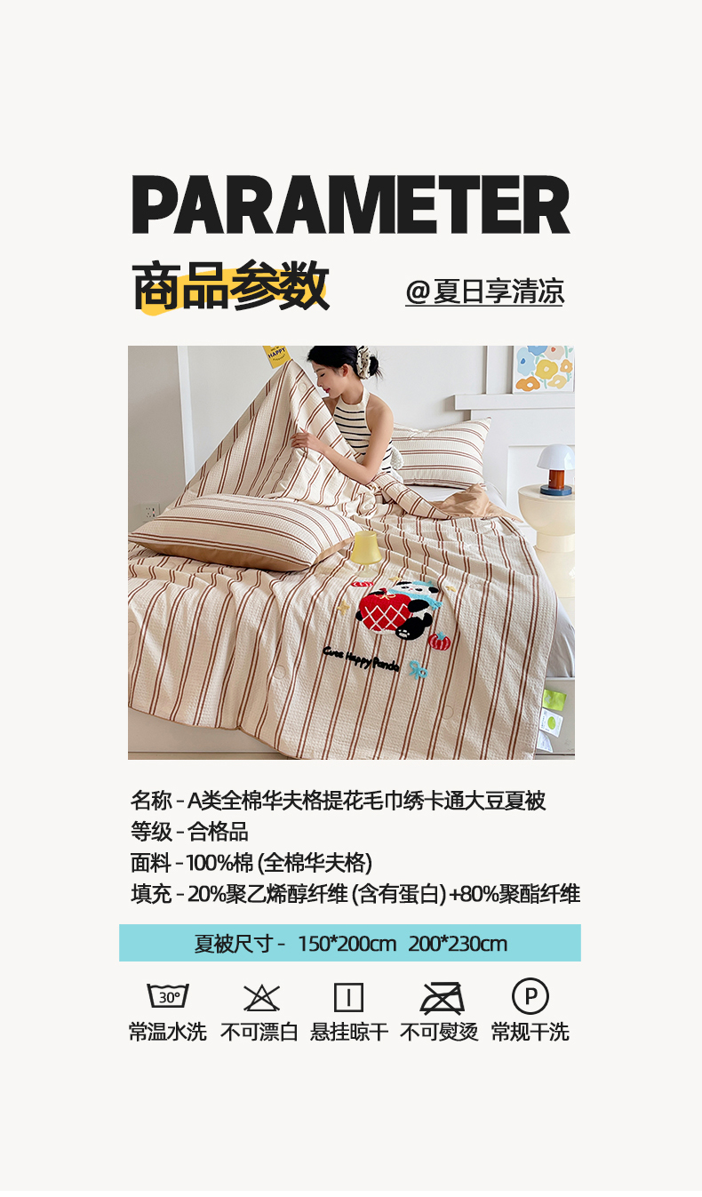 商品名称:莱宁被业 2026新款A类全棉华夫格提花毛巾绣卡通大豆夏被 苹果小熊