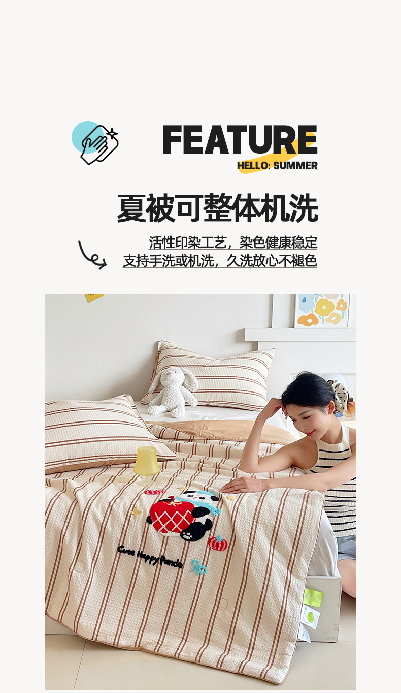 (总)莱宁被业 2026新款原创设计A类全棉有氧双层纱毛巾绣大豆夏被,吉米乐园,乐萌小象,马戏小狗,美梦小马,企鹅小宝贝,书包小熊,组合图