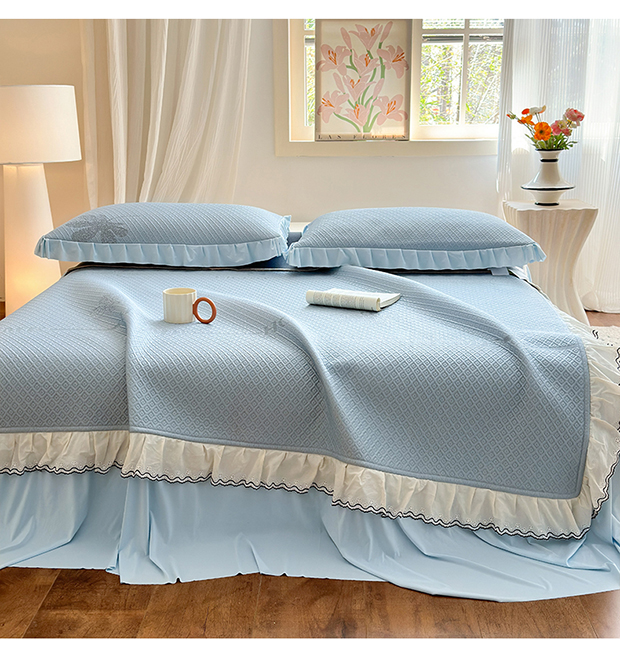(总)美优兰 2025全棉法式花边双层纱水洗棉花床盖三件套(提供买家秀),组合图仅供参考,半亩花田,波点绿,春意盎然粉,春意盎然绿,玛德琳紫,南风,如画,写意,朱樱
