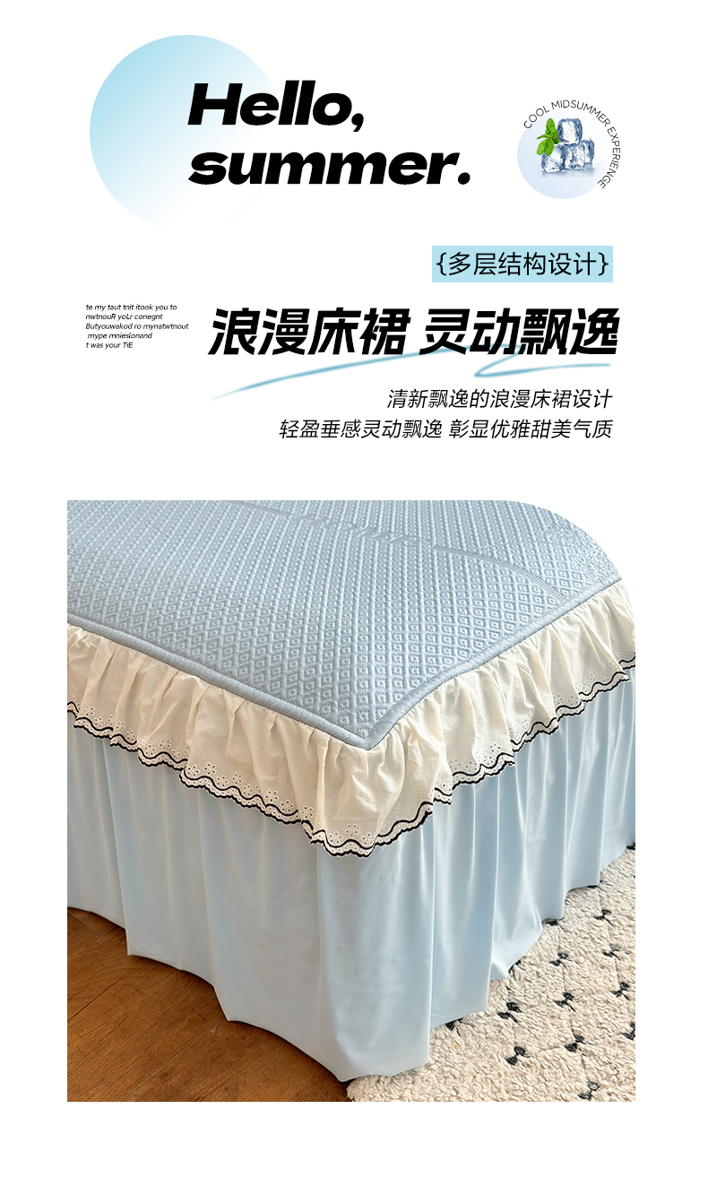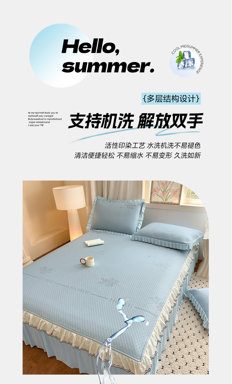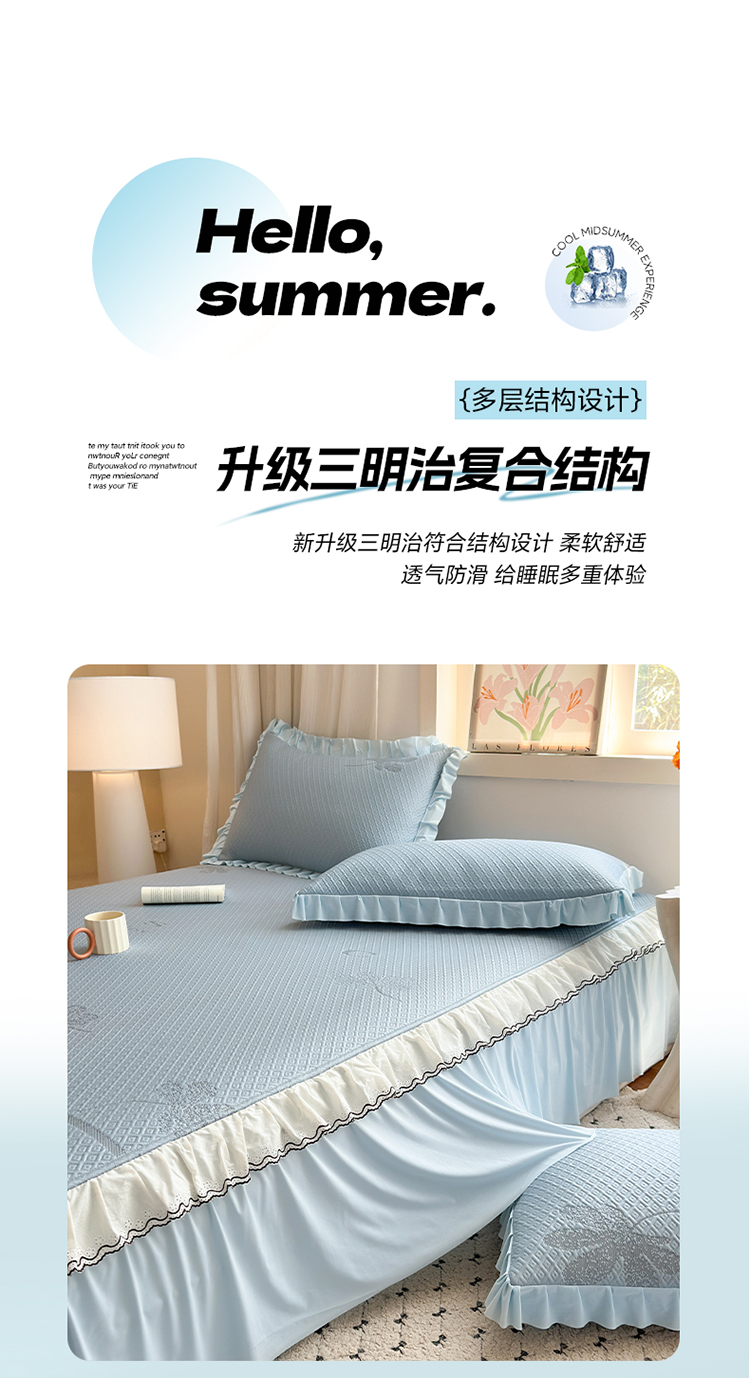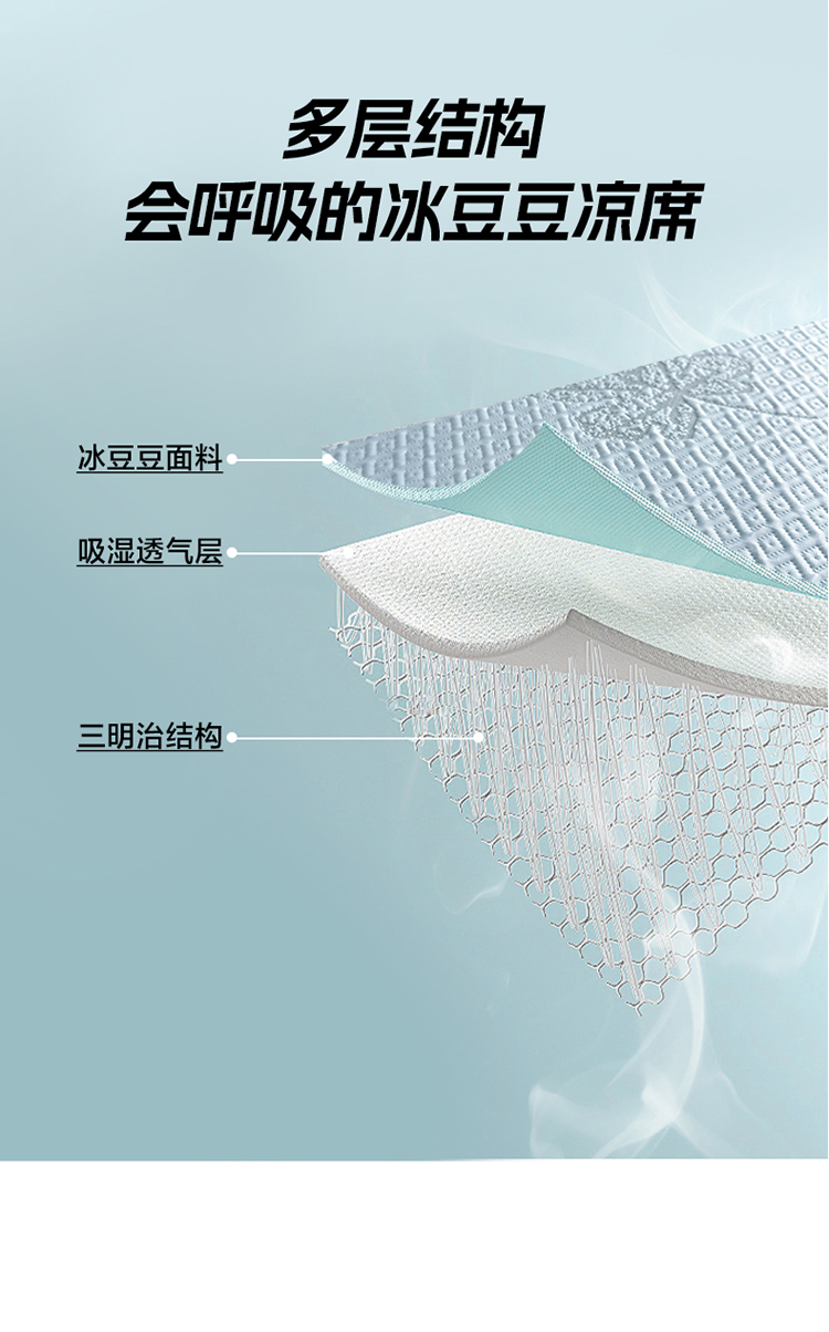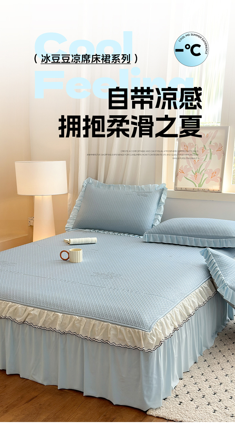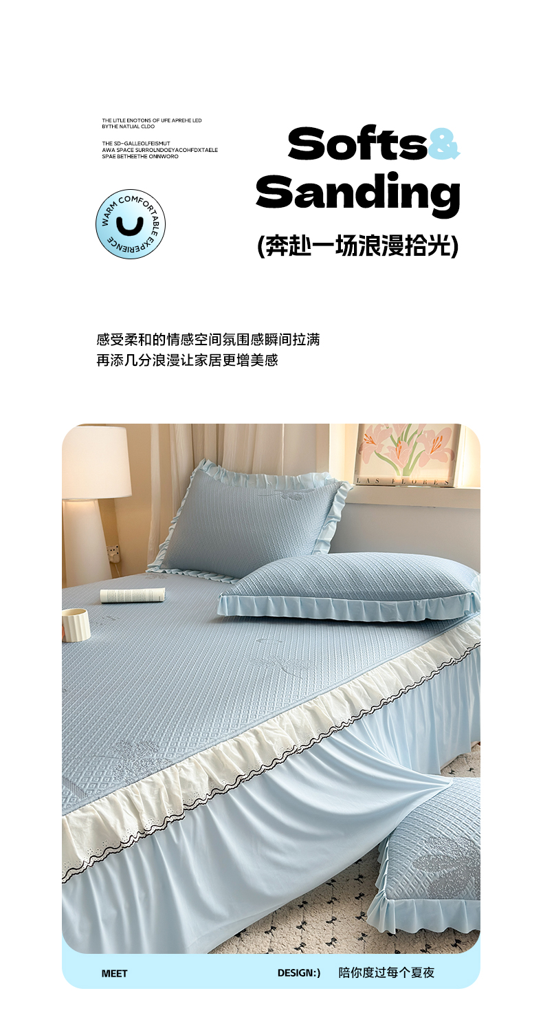 商品名称:美优兰 2026PE提花凉感冰豆豆三明治复合凉席 (提供买家秀) 晚亭蓝