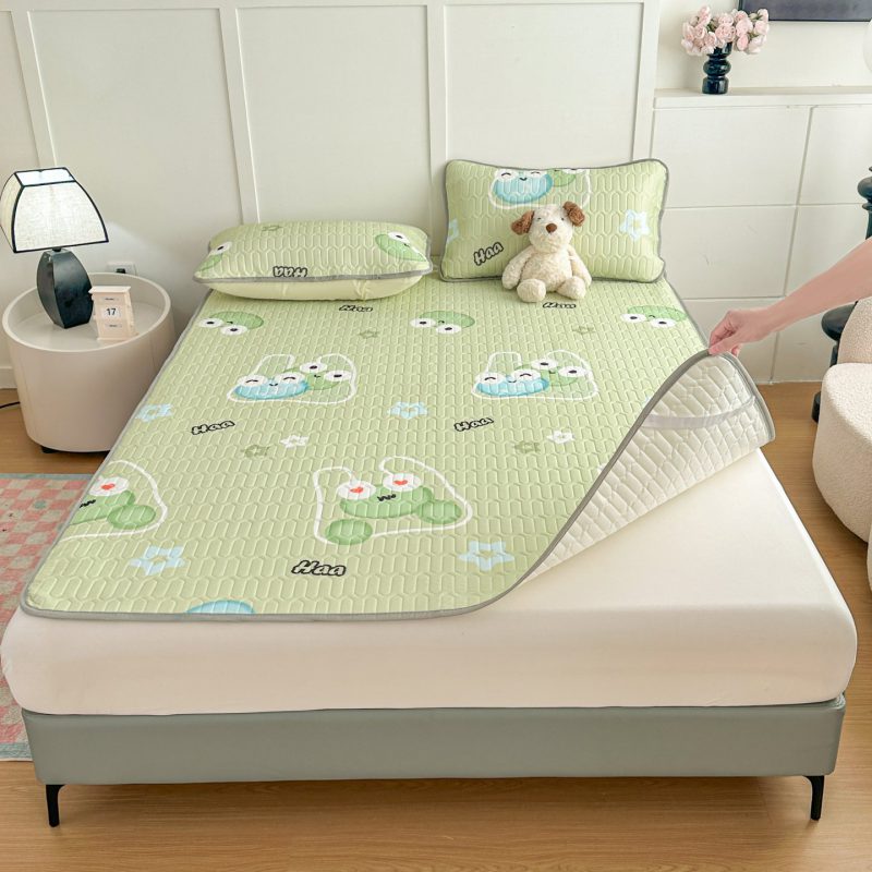 商品名称:梵克保罗 2026新款凉感丝乳胶凉席印花三件套绑带款乳胶条席床单 彩条小趣