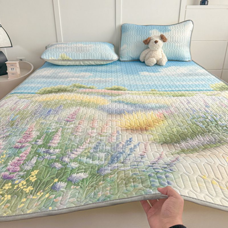 商品名称:梵克保罗 2026新款凉感丝乳胶凉席印花三件套绑带款乳胶条席床单 雪白狗