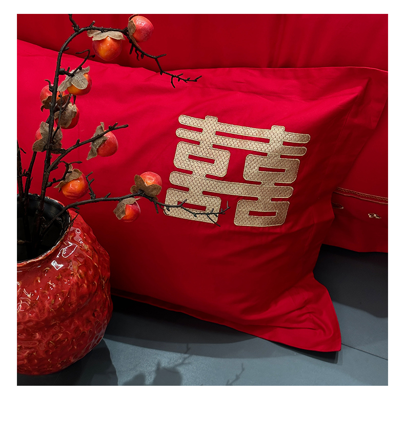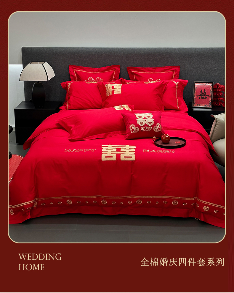 当前位置: 91家纺网 > 商品网购 > 床品套件 > 四件套 > 婚庆四件套 > JUICY 橘滋家纺 2026新款全棉大红刺绣婚庆实惠款四件套多件套 心心相印-金