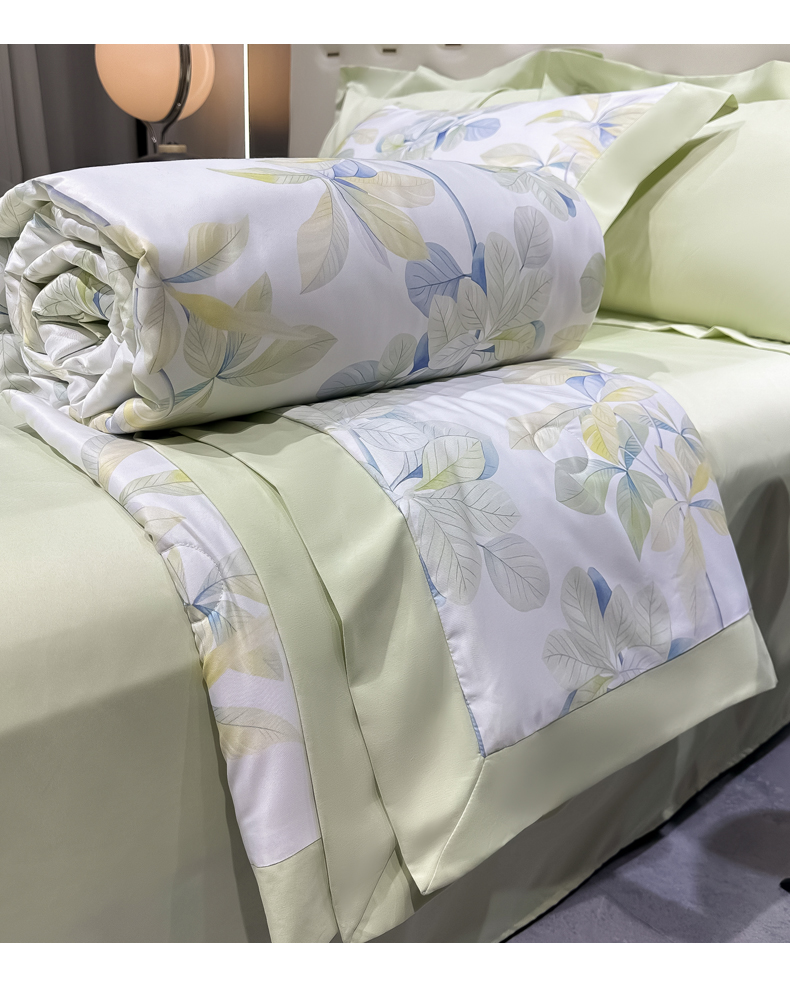 爱彼家纺 2026夏季热门数码冰丝水墨画风单夏被凉感冰丝夏被四件套 夏被-绿叶花园