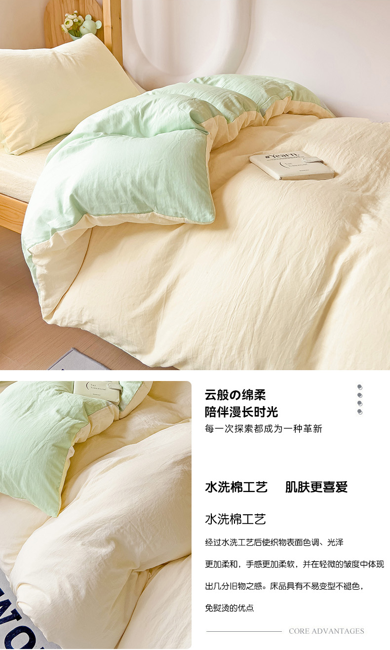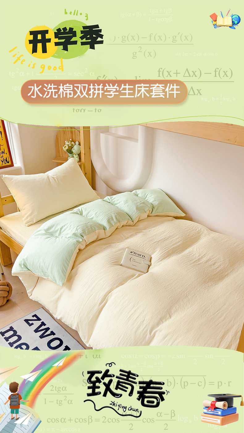 当前位置: 91家纺网 > 商品网购 > 床品套件 > 四件套 > 水洗棉四件套 > 欧妮家纺 2025新款纯色双拼水洗棉四件套学生宿舍上下铺床单被套三件套床上用品-【含买家秀】 双拼系列-奶黄绿