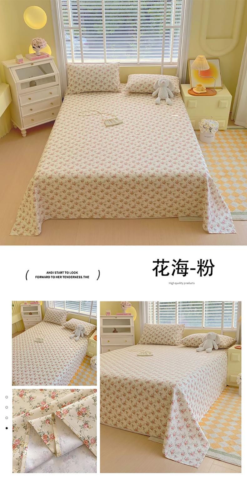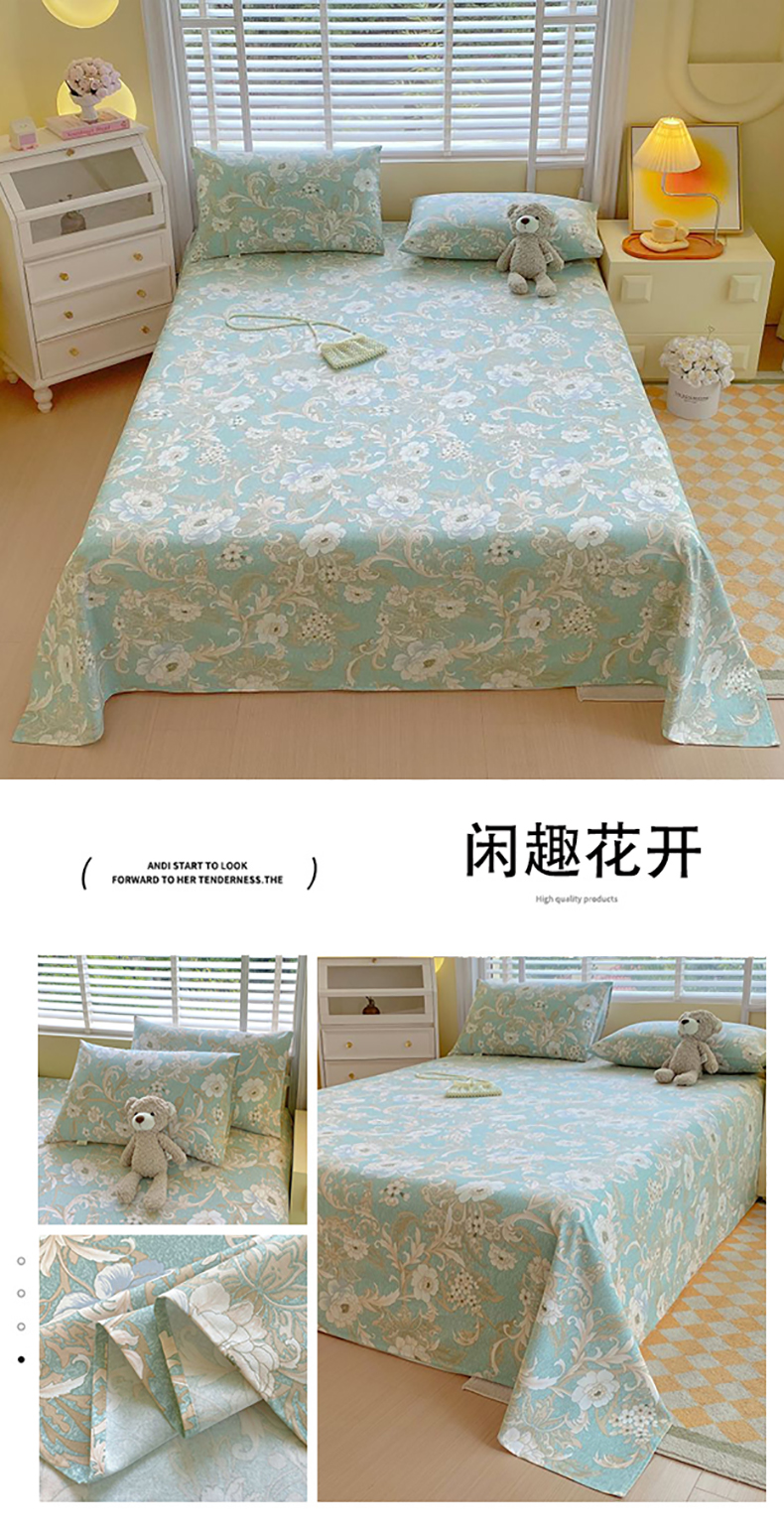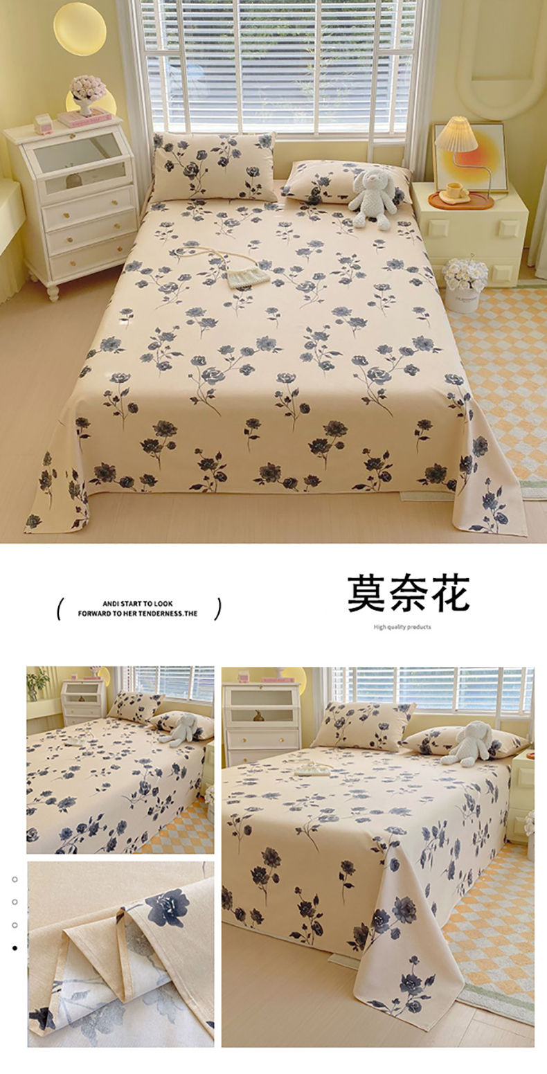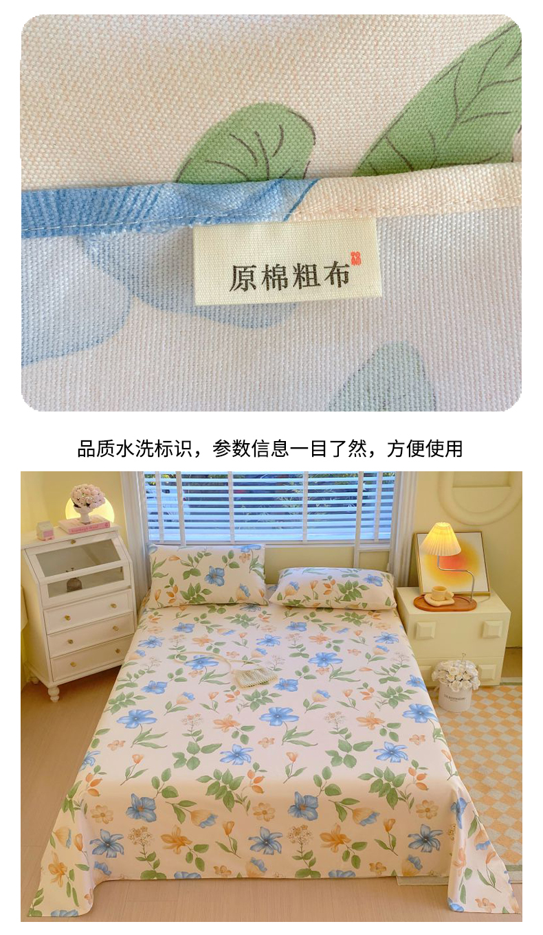 商品名称:(总)欧妮家纺 2025新款全棉纯棉老粗布床单夏季空调凉席子三件套-花卉系列
