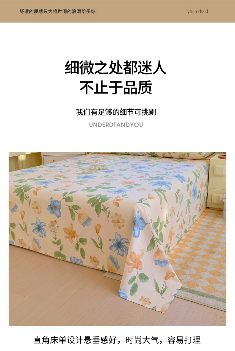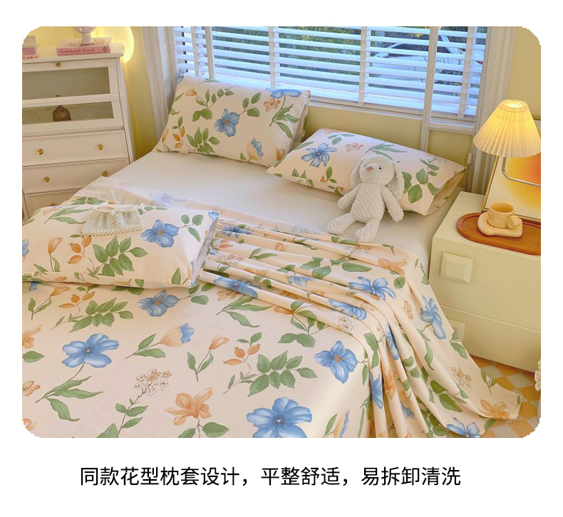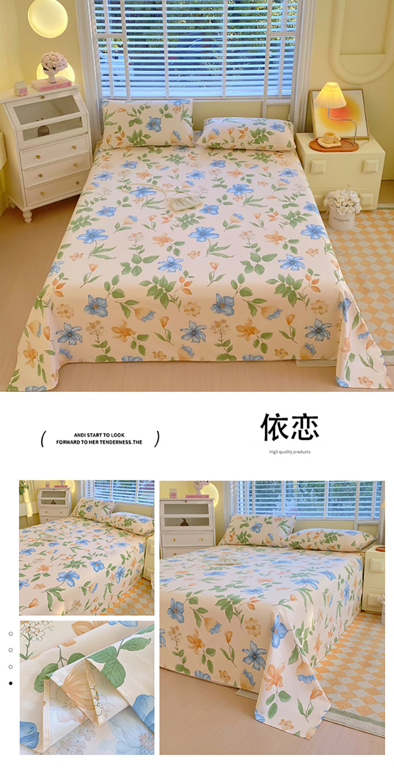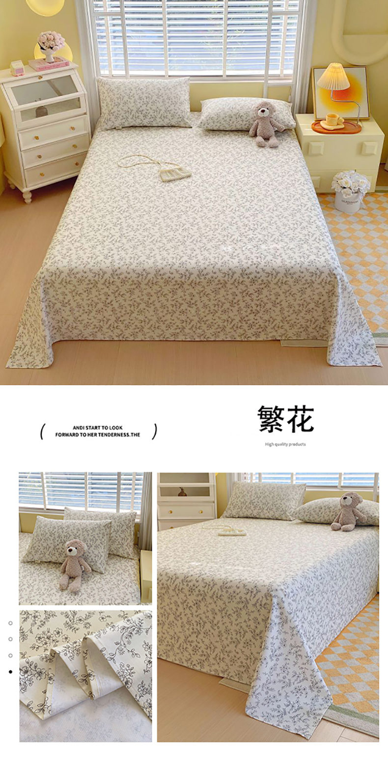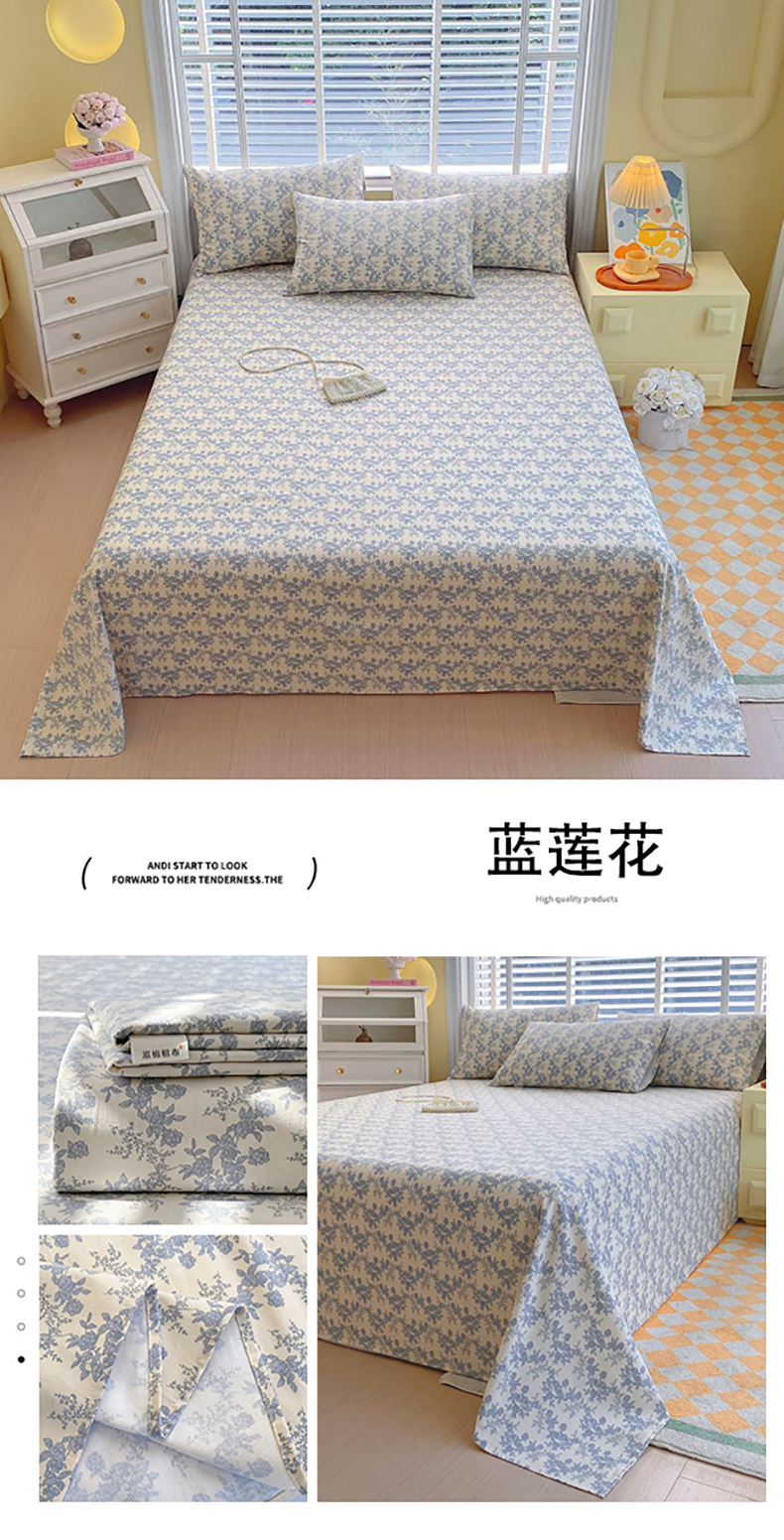 商品名称:(总)欧妮家纺 2025新款全棉纯棉老粗布床单夏季空调凉席子三件套-花卉系列