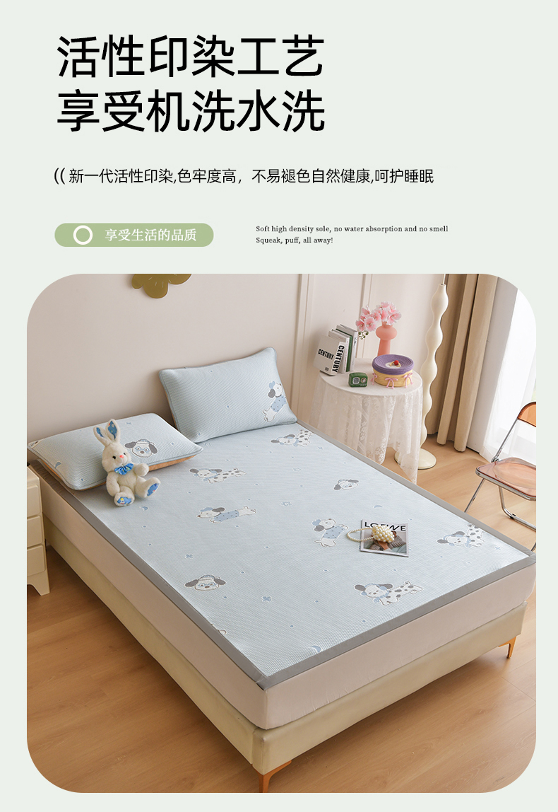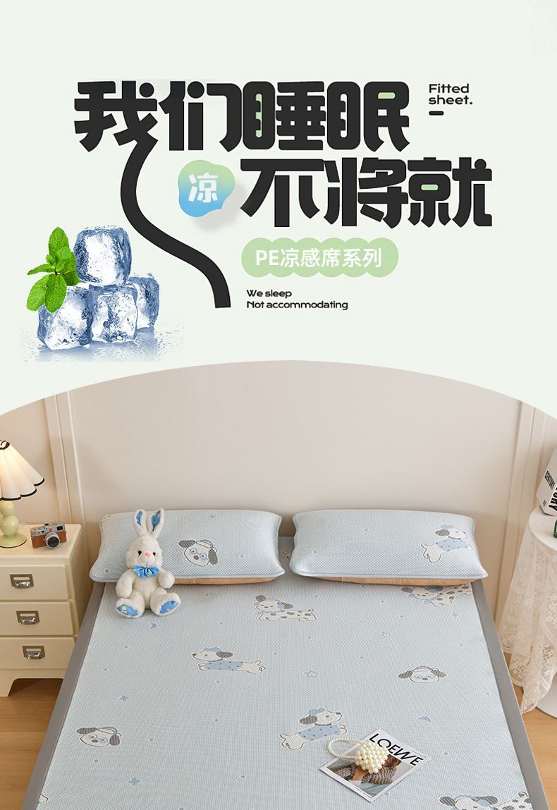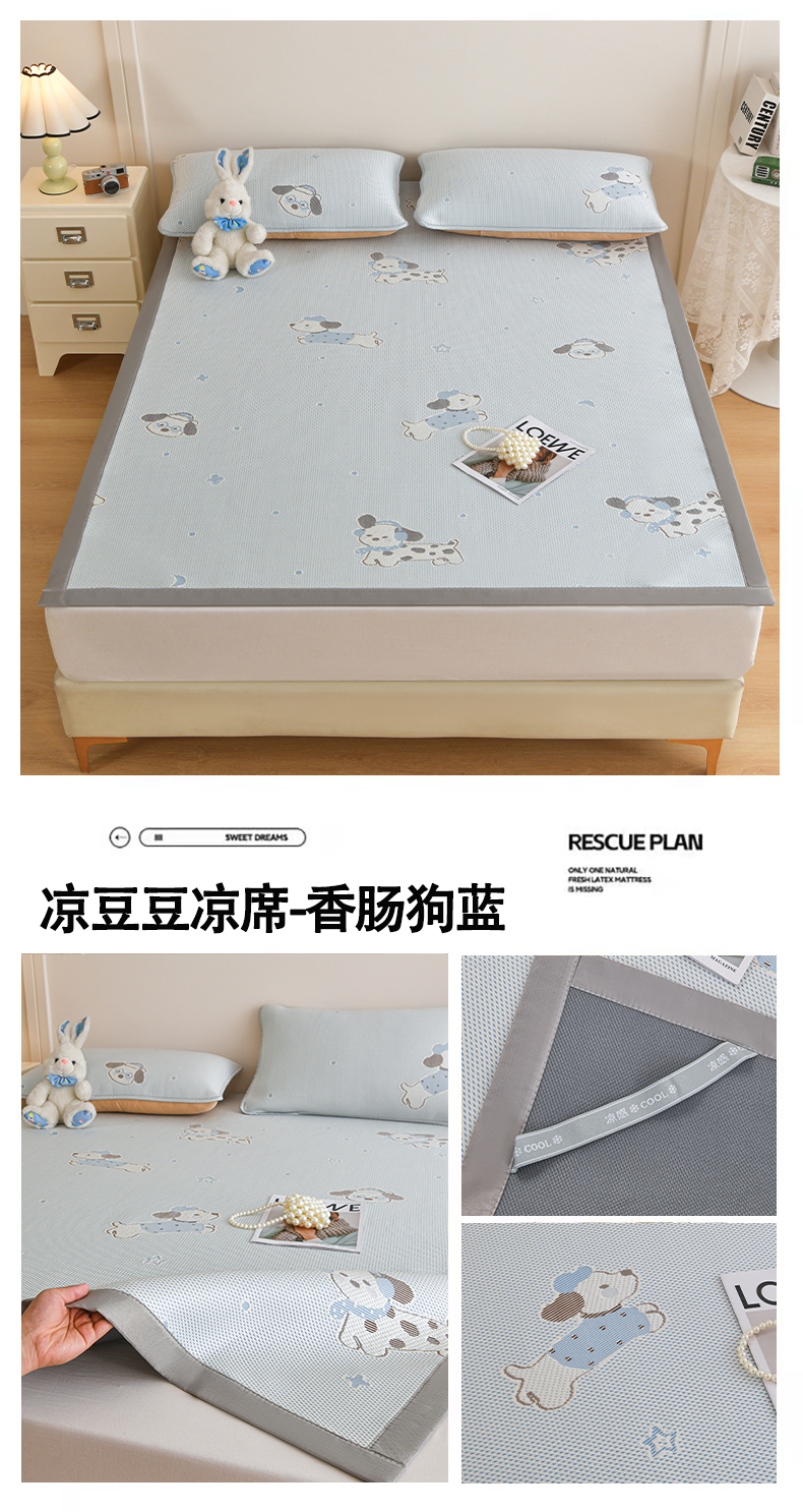 • 91家纺网 家纺一手货源 找家纺 金艾草 2026新款PE冰豆豆席凉感凉席单件席子平铺款 凉豆豆凉席-香肠狗蓝