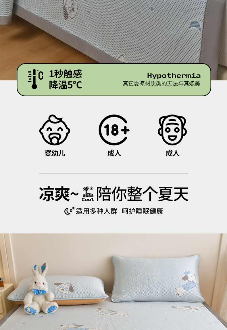 当前位置: 91家纺网 > 商品网购 > 床上用品 > 凉席 > 金艾草 2026新款PE冰豆豆席凉感凉席单件席子平铺款 凉豆豆凉席-香肠狗蓝