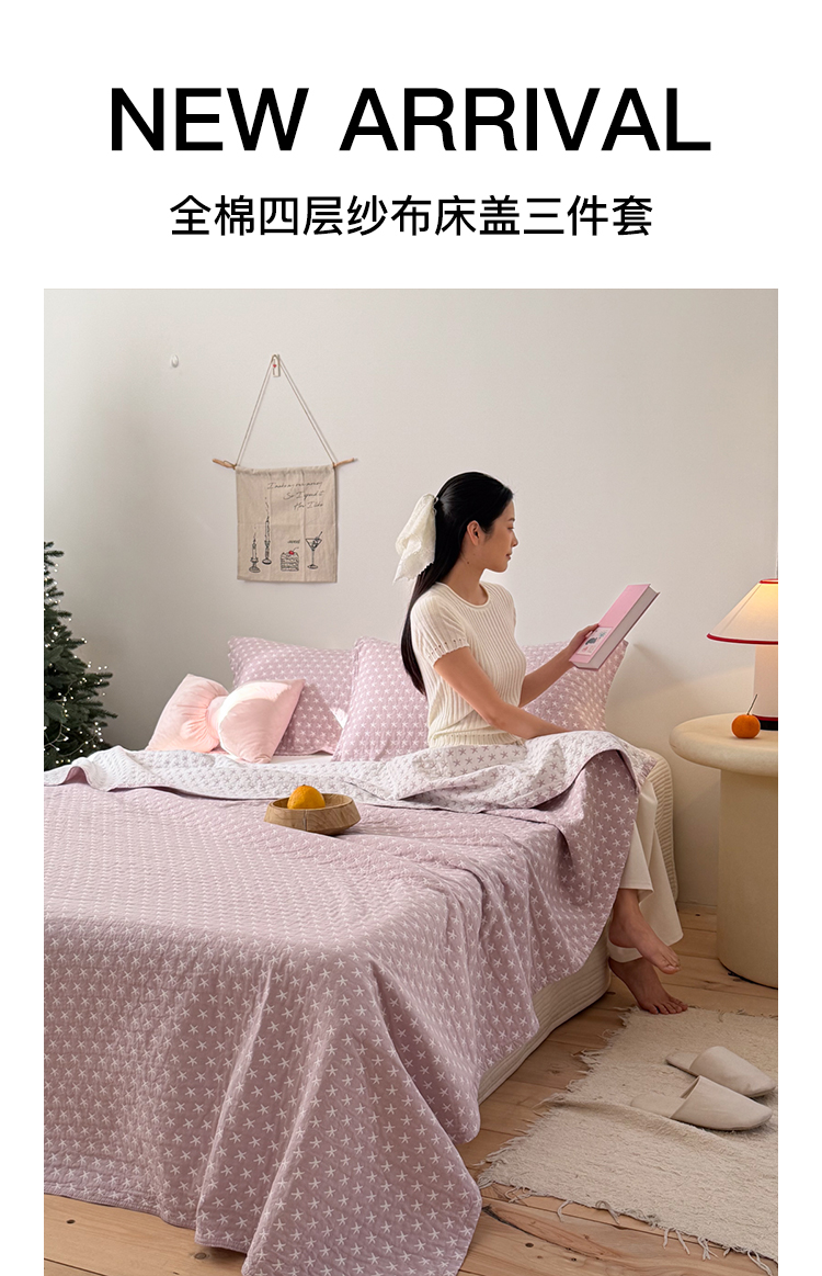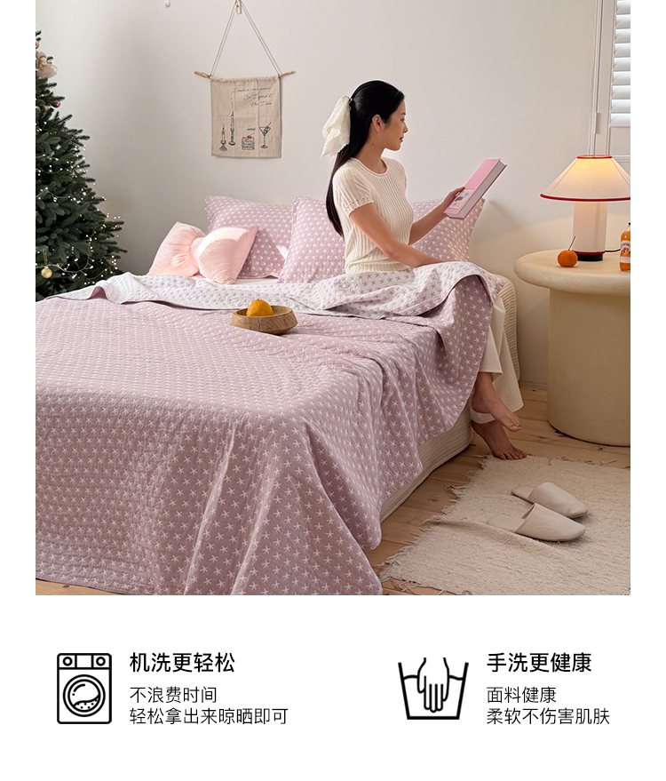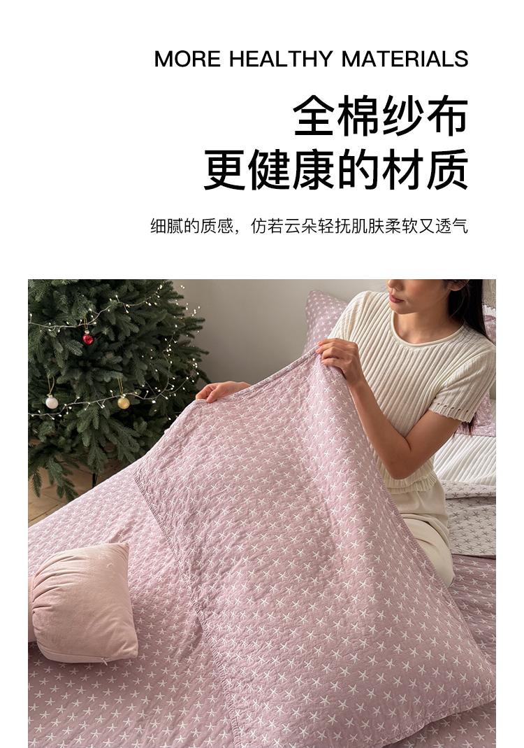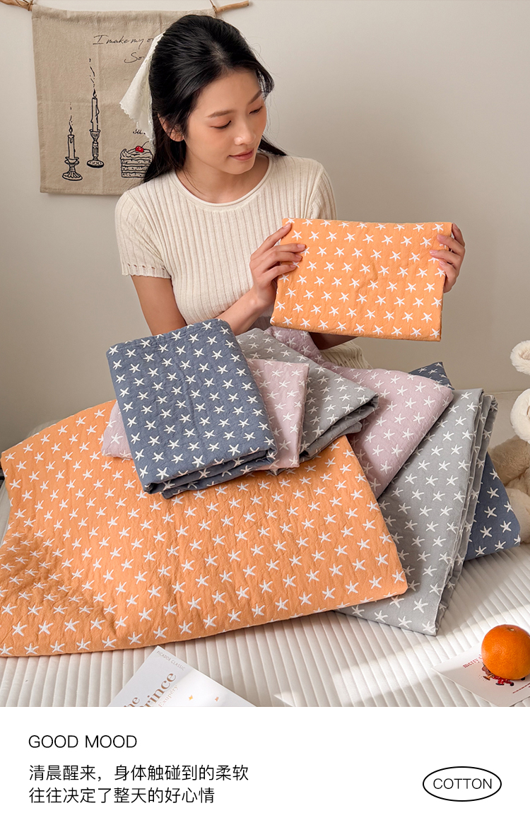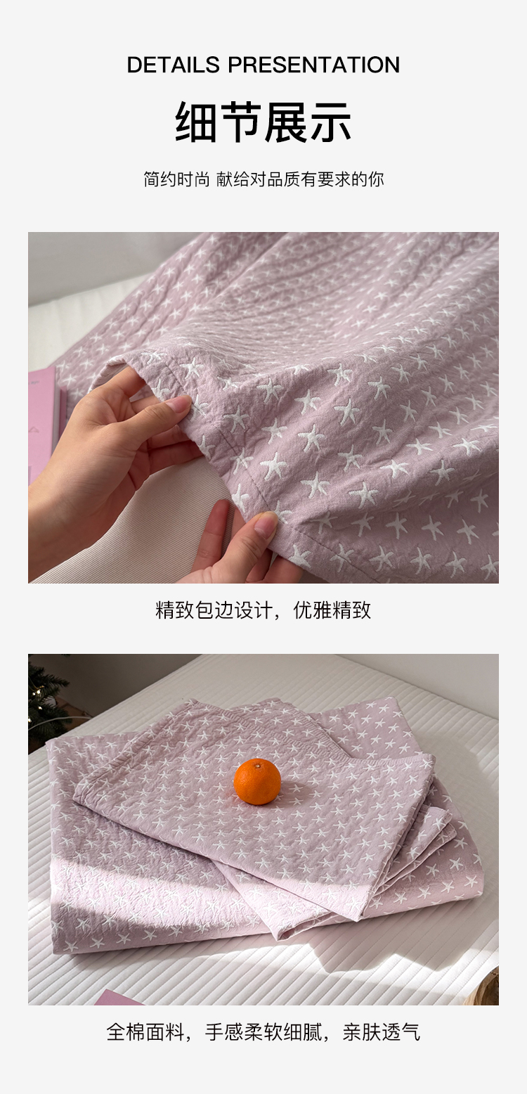 商品名称:沐瑟家纺 2026春夏新款安心棉床盖三件套 星星-紫色