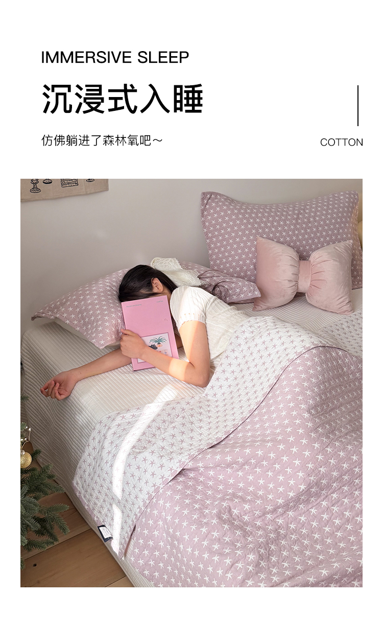 沐瑟家纺 2026春夏新款安心棉床盖三件套 星星-紫色