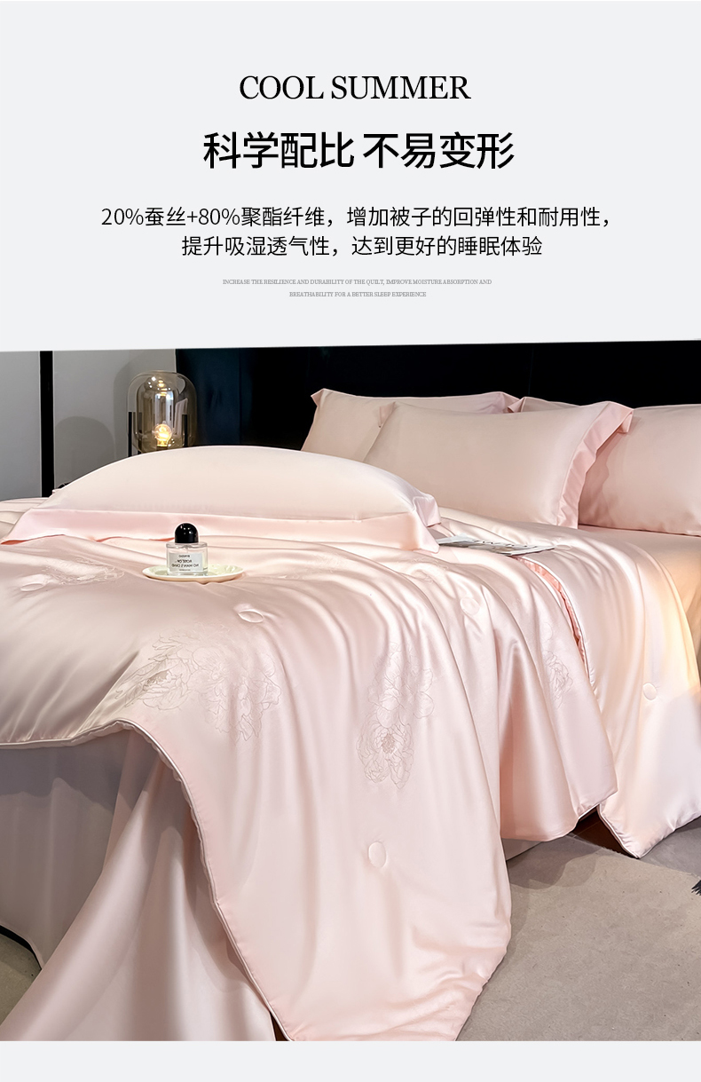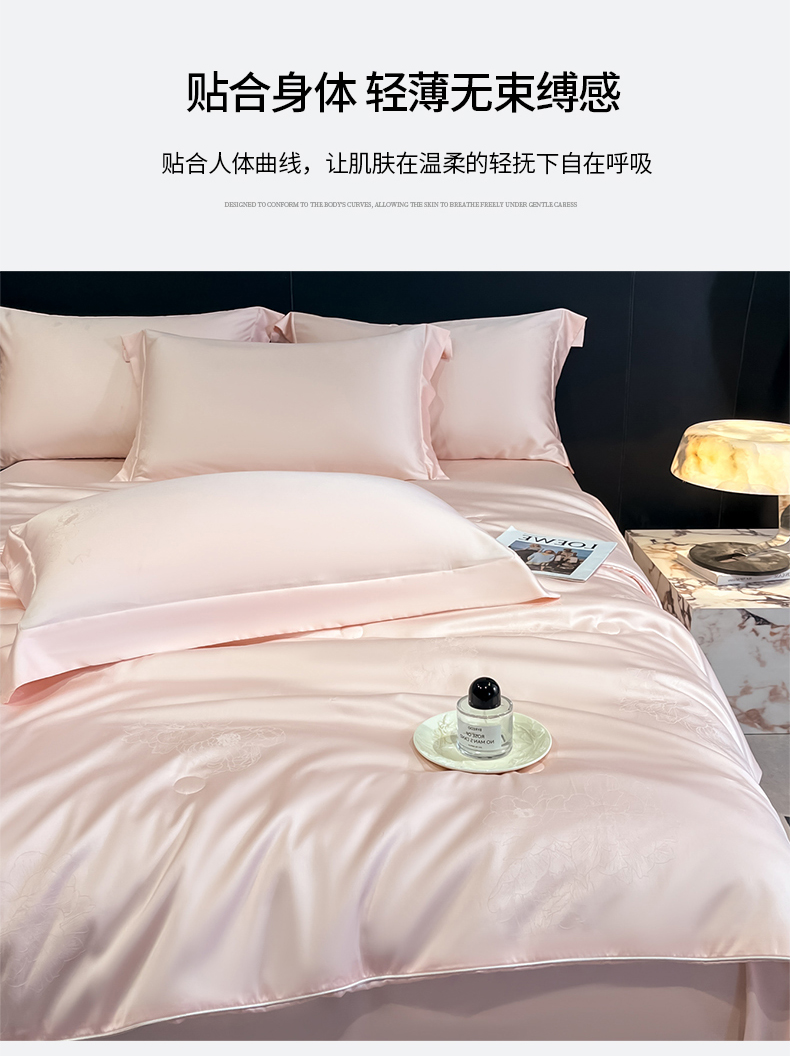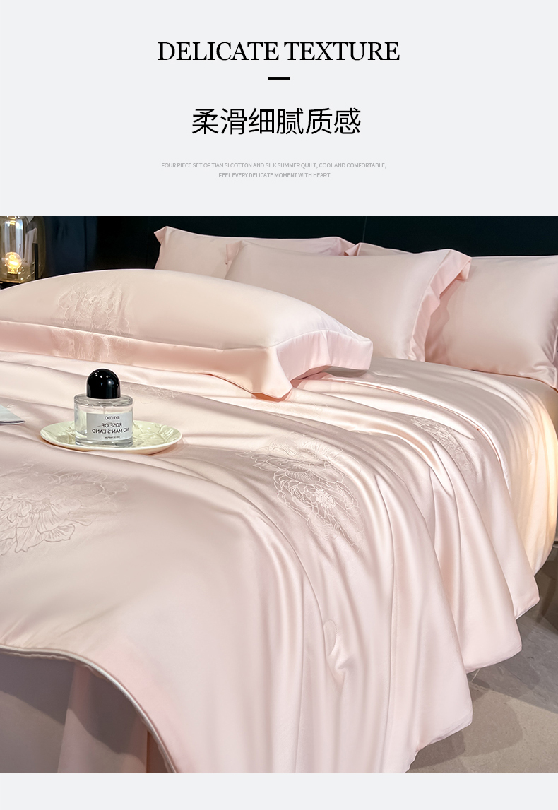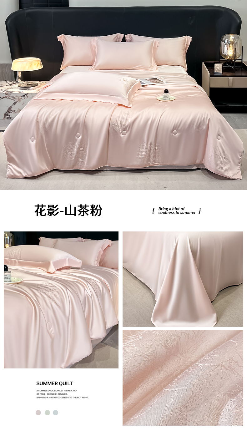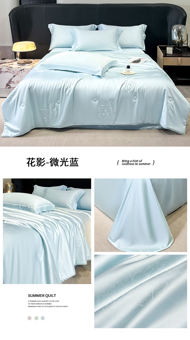 当前位置: 91家纺网 > 商品网购 > 床品套件 > 四件套 > 其它四件套 > (总)新方向 2026A类20%蚕丝提花天丝棉夏被四件套 65%60s兰精天丝 35%100支长绒棉-花影风格二