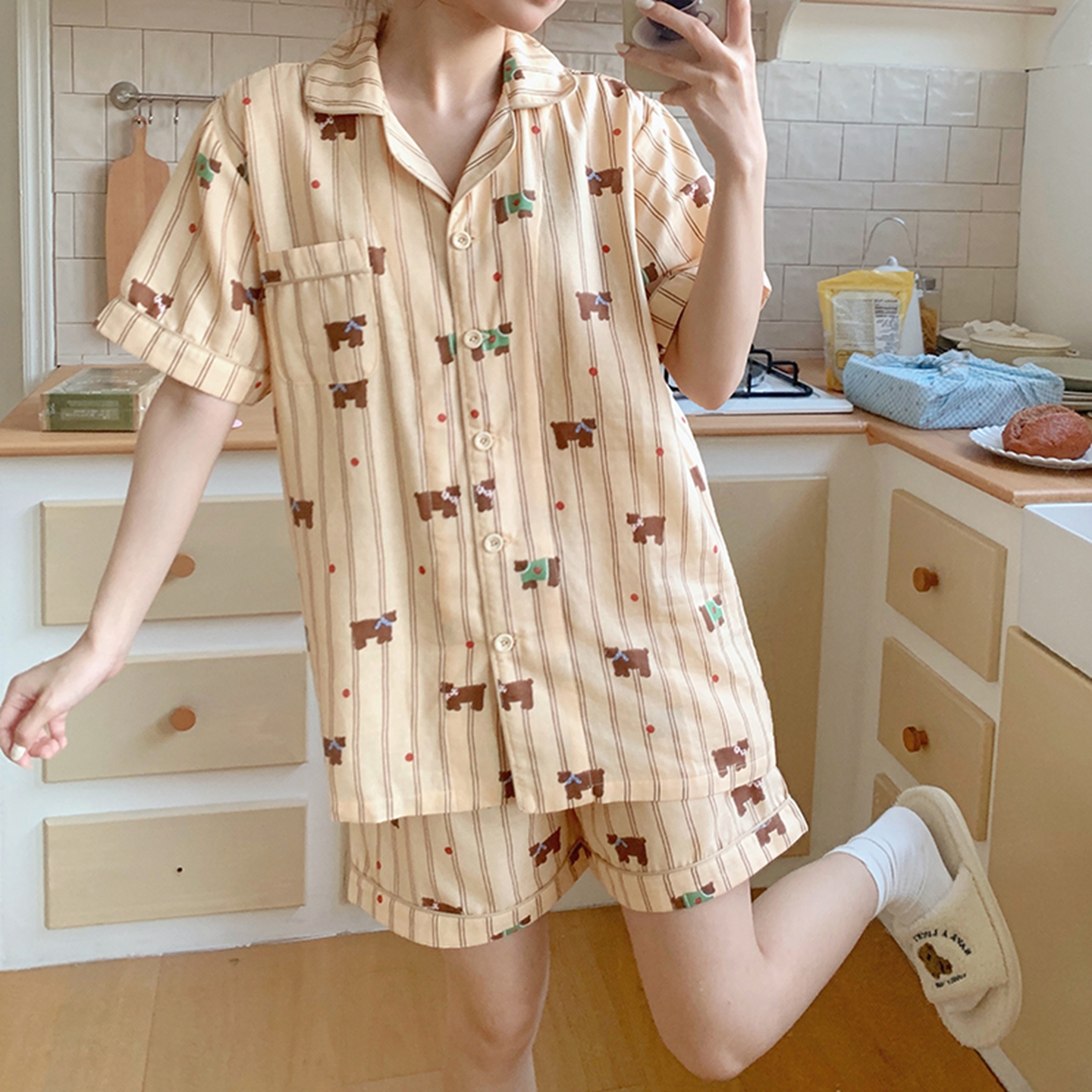 商品名称:爱思佳 2026新款全棉纯棉双层纱短袖睡衣系列 伴夏