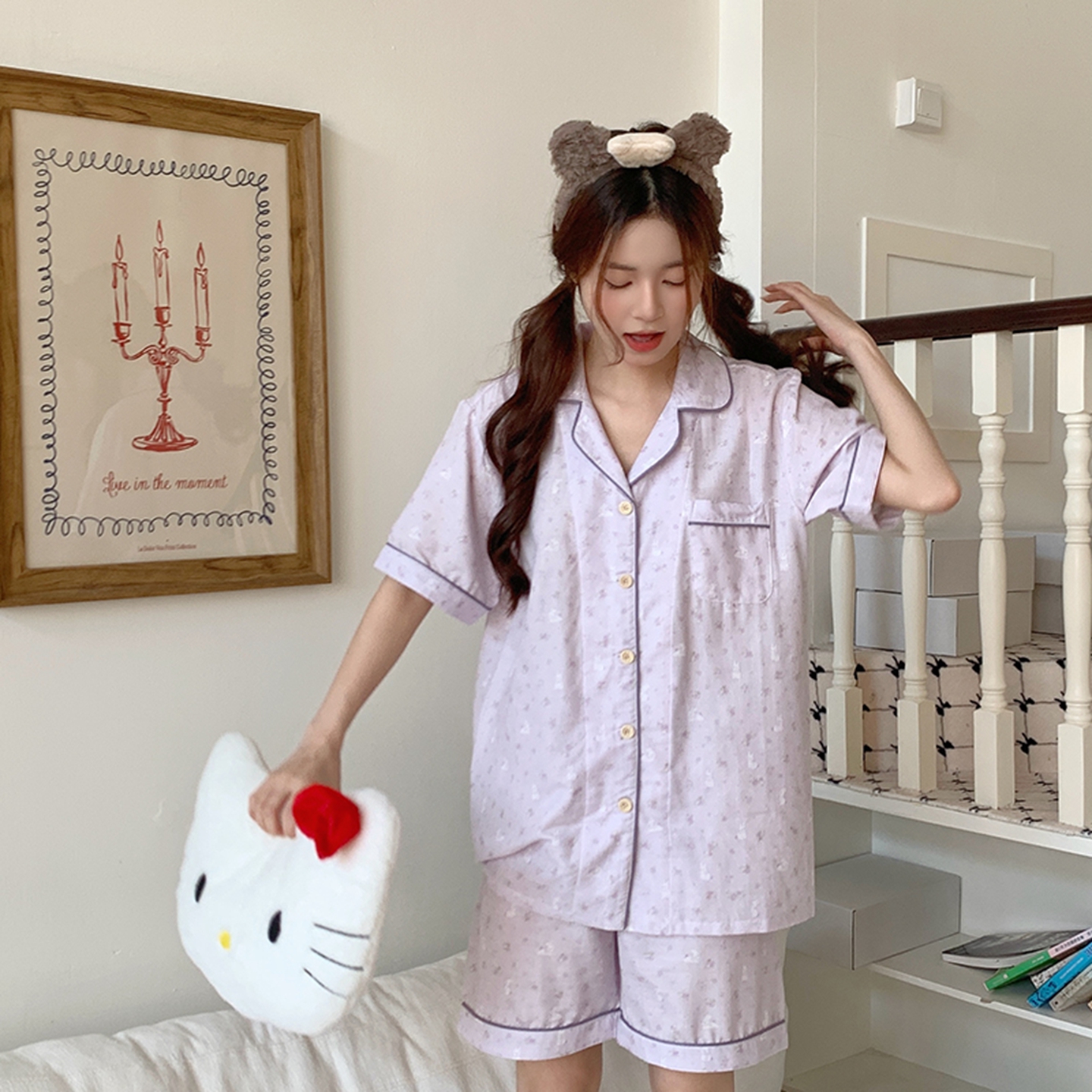 商品名称:爱思佳 2026新款全棉纯棉双层纱短袖睡衣系列 紫小兔