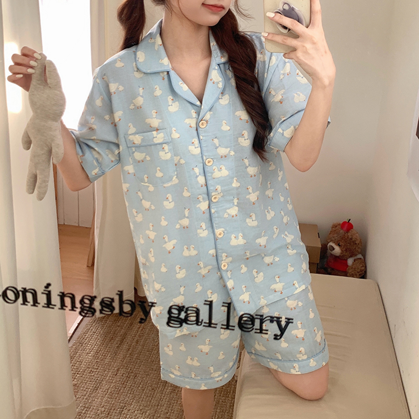(总)爱思佳 2026新款全棉纯棉双层纱短袖睡衣系列,伴夏,草莓点点,嘟嘟熊,咖色小狗,蓝色大鹅,萌星,条纹蓝,西高地,消消乐,熊熊乐园,紫小兔