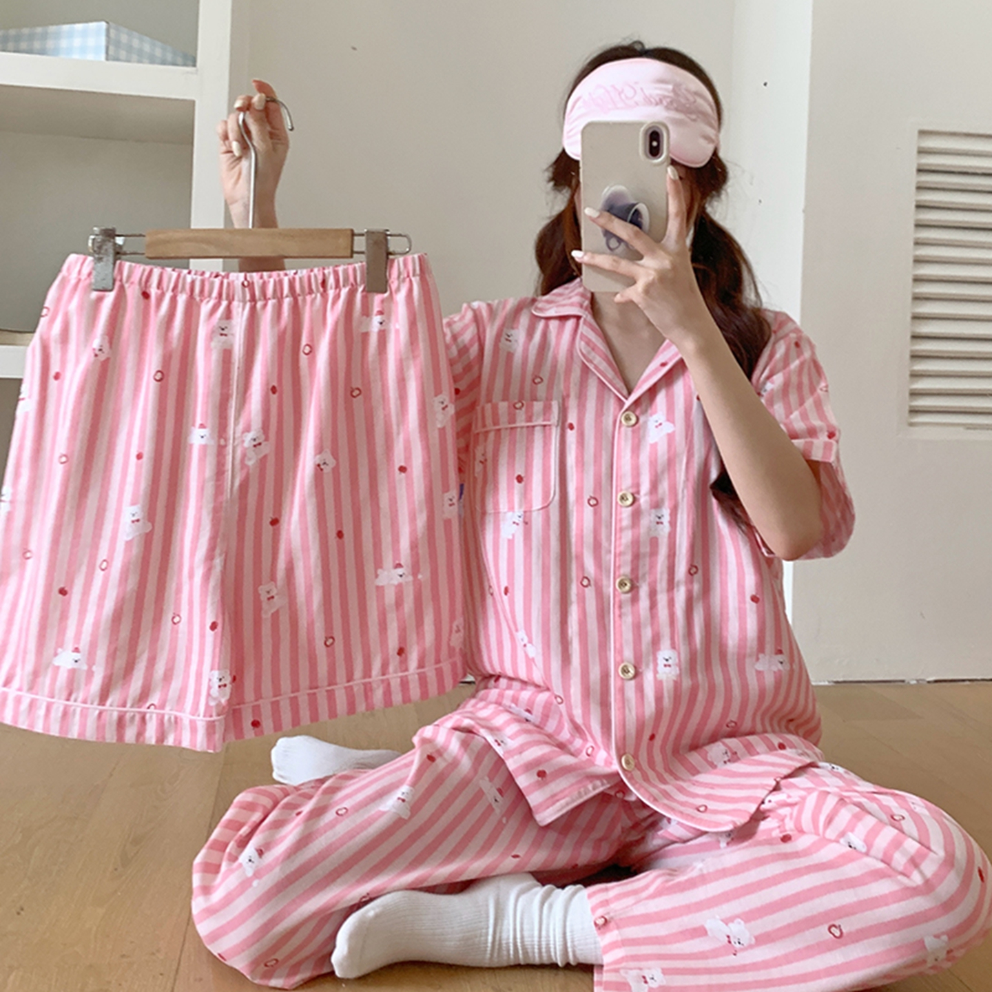 (总)爱思佳 2026新款全棉双层纱长袖长裤睡衣,粉喵喵,格子小熊,吉他派对,可爱小象,蓝色大鹅,萌星粉,面包小熊,奶糖兔,条纹星仔,兔兔情话,小熊乐园,小樱桃,星光小马,星星世界,眼镜家族,智多星