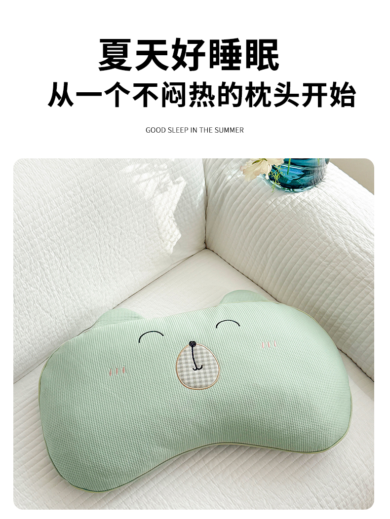 (总)蔻眠 凉感丝小萌猫荞麦护颈枕夏季凉豆豆儿童枕芯学生枕头,主图,小萌猫-花朵,小萌猫-三角