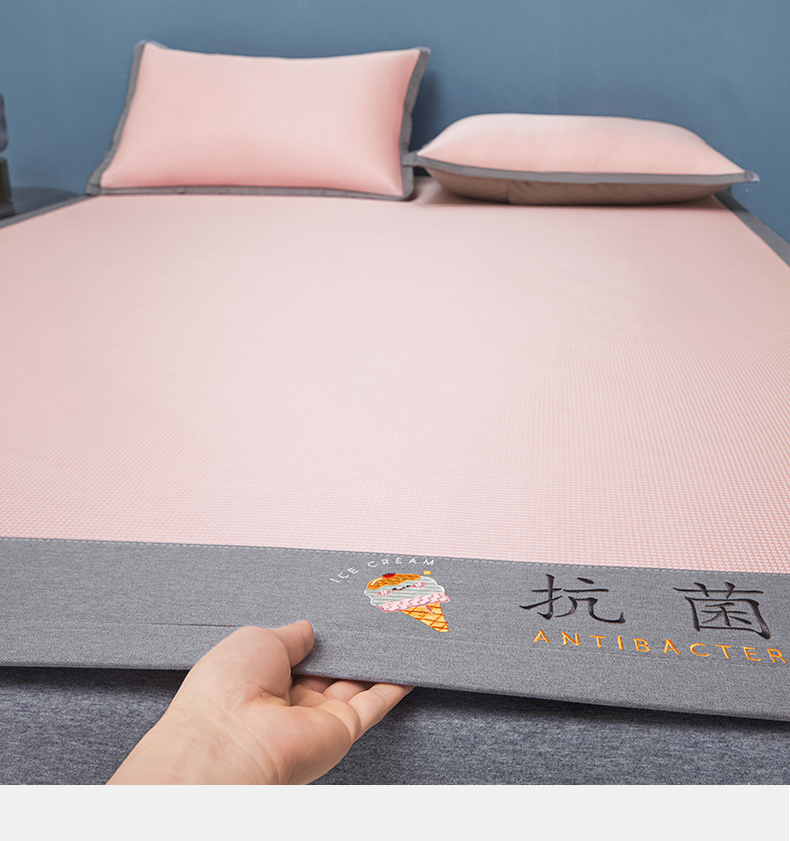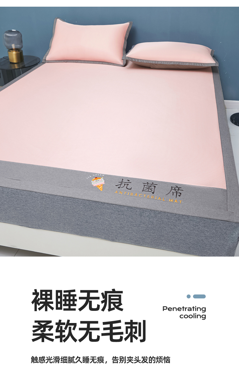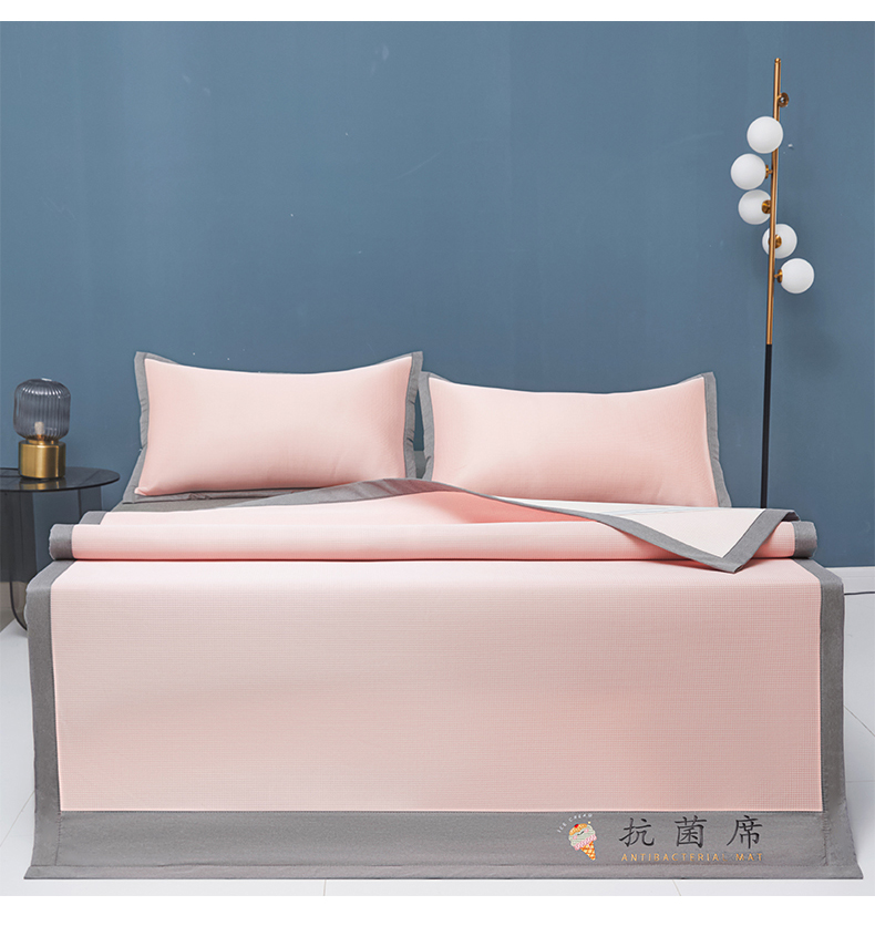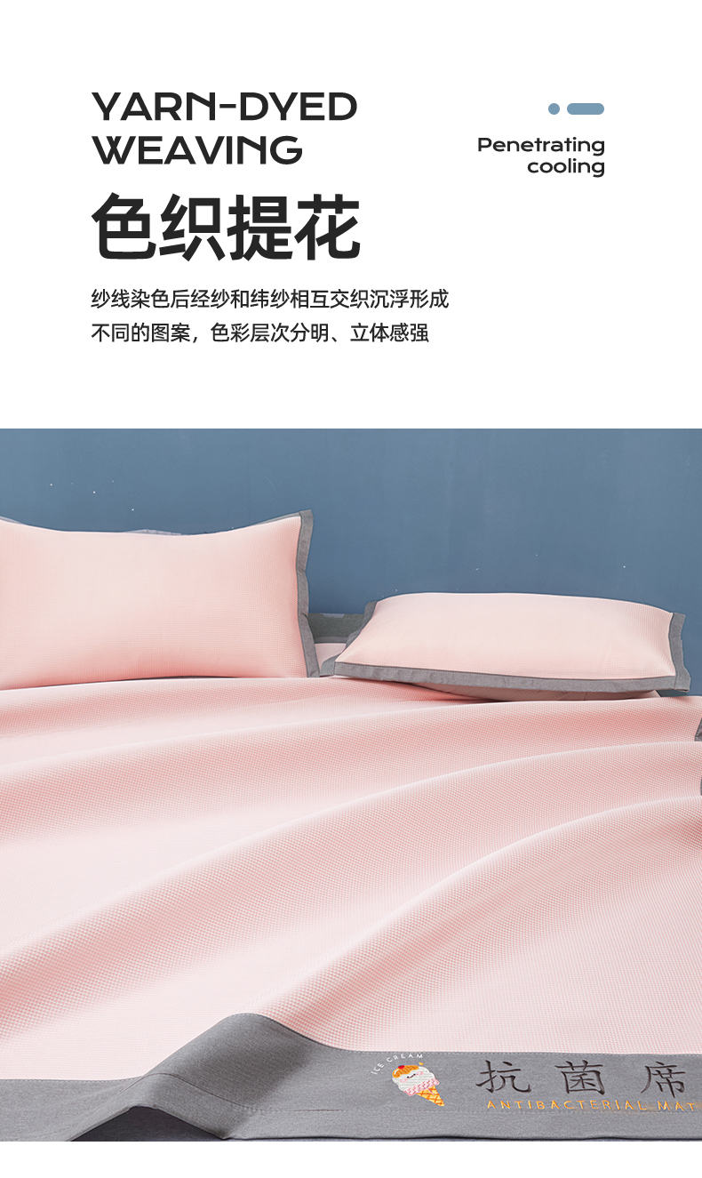 商品名称:色鬼布艺高端家居主号 2026新款抗菌冰激凌色织提花床单款床席冰丝席席子凉席 冰激凌-烟粉