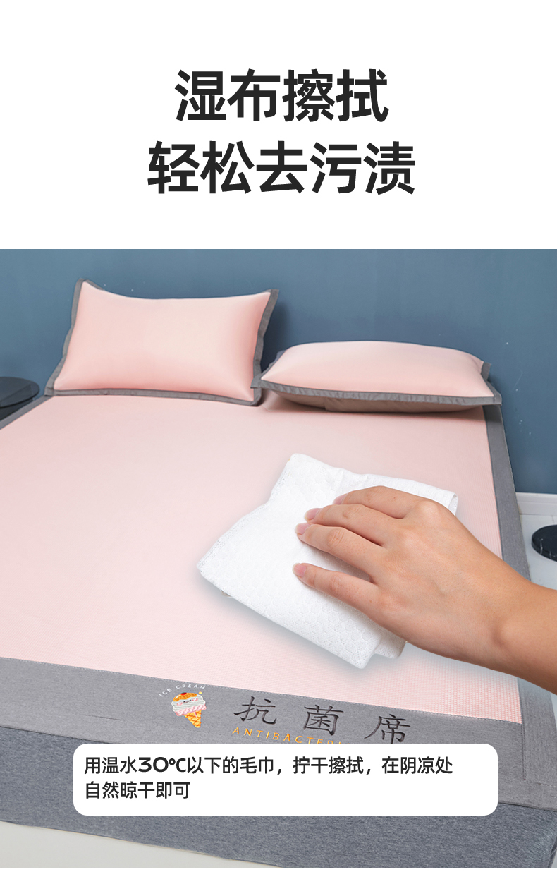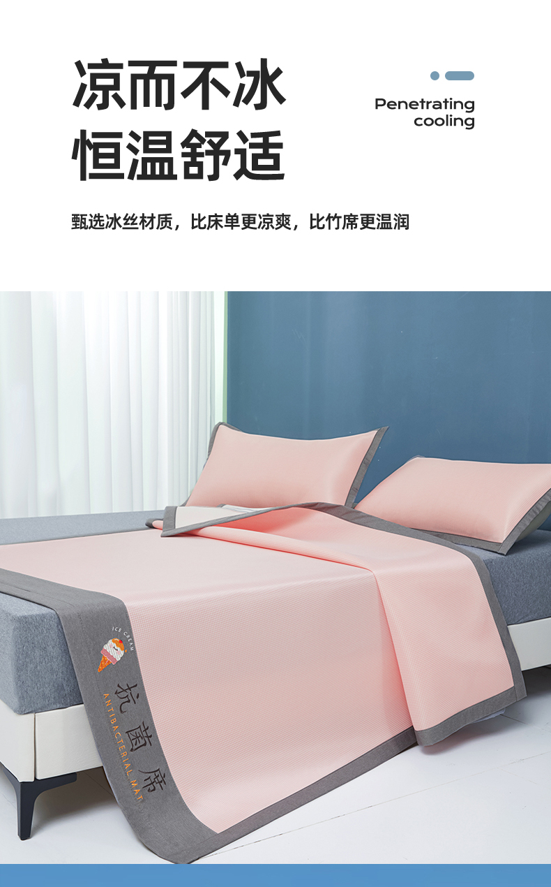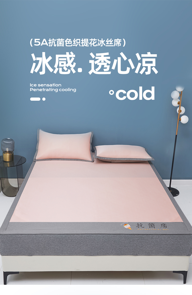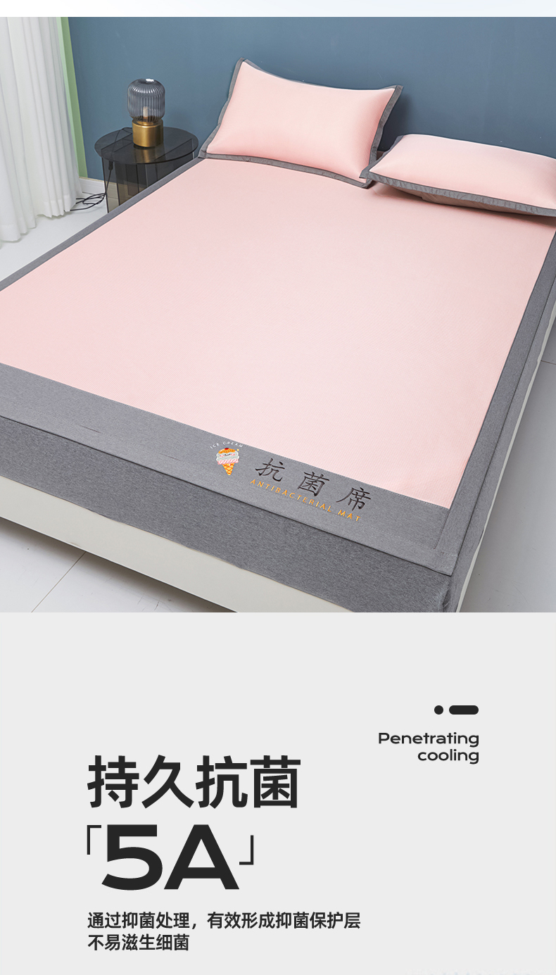 商品名称:色鬼布艺高端家居主号 2026新款抗菌冰激凌色织提花床单款床席冰丝席席子凉席 冰激凌-烟粉