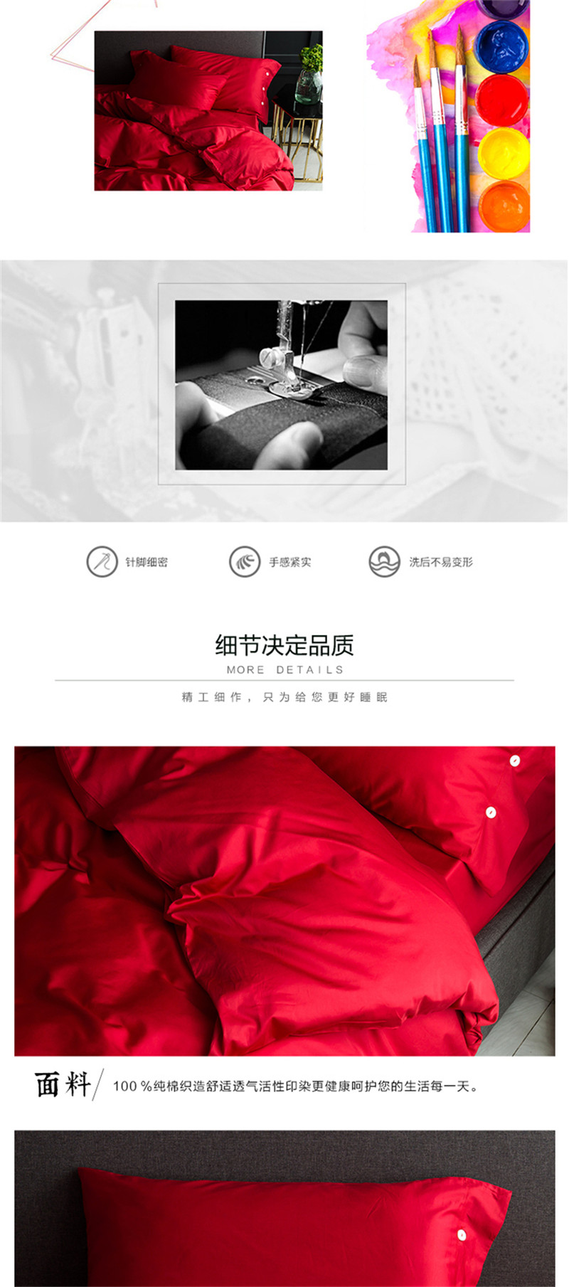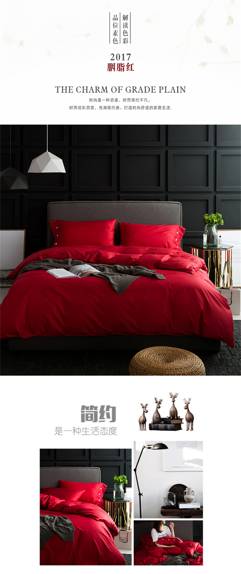 商品名称:涞澳家纺 长绒棉素色四件套 胭脂红
