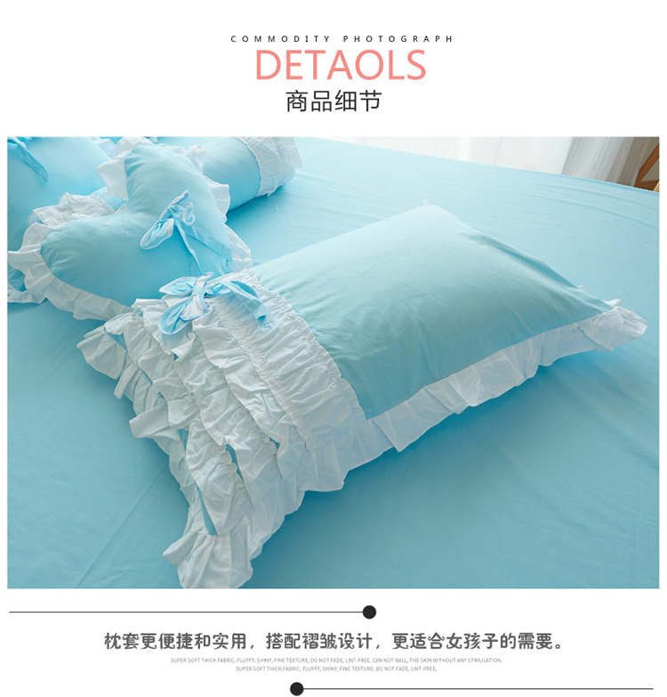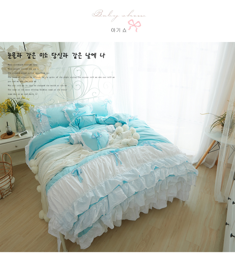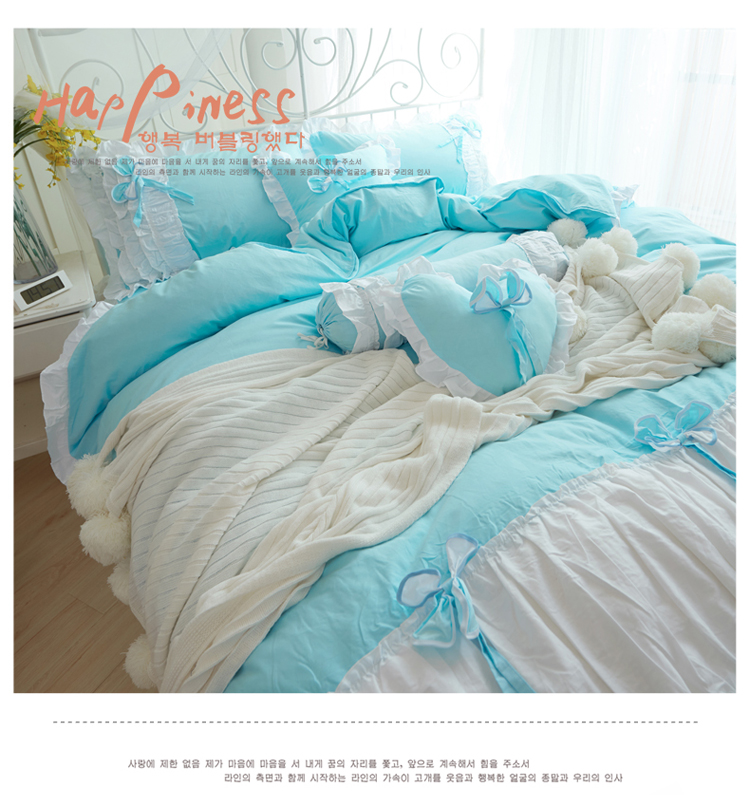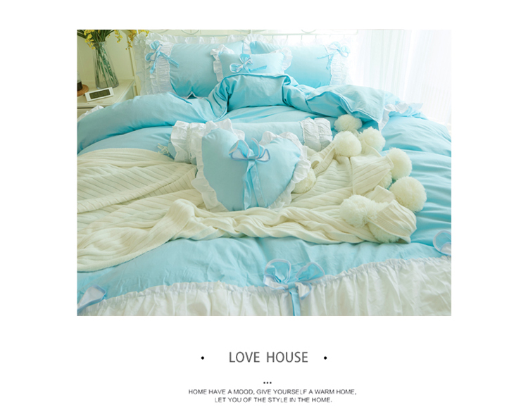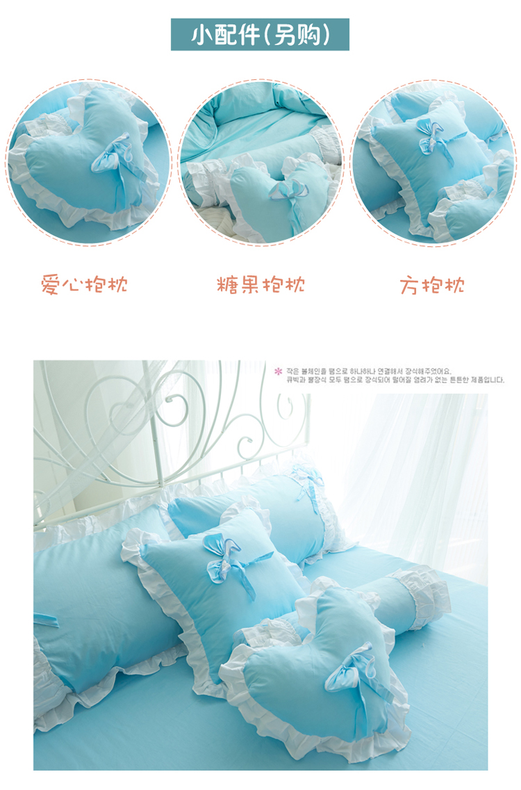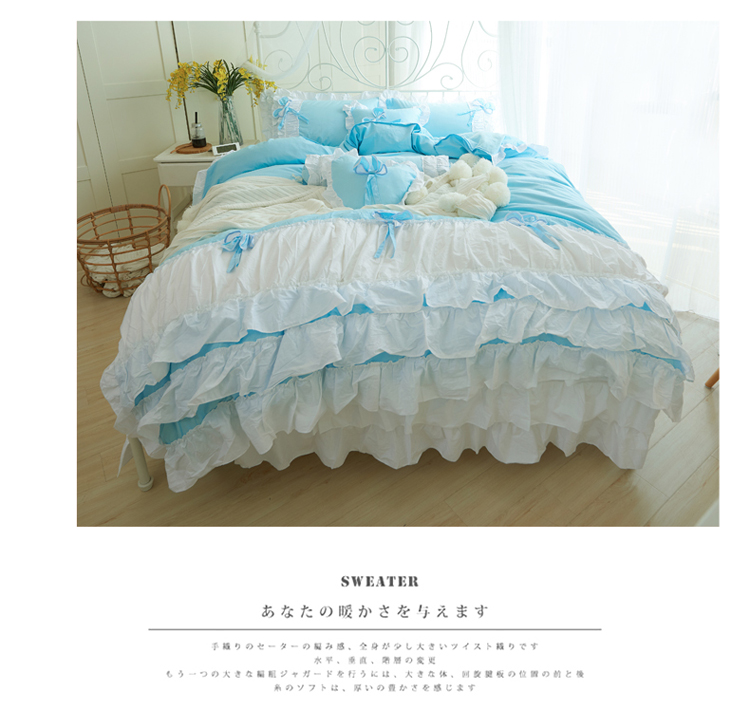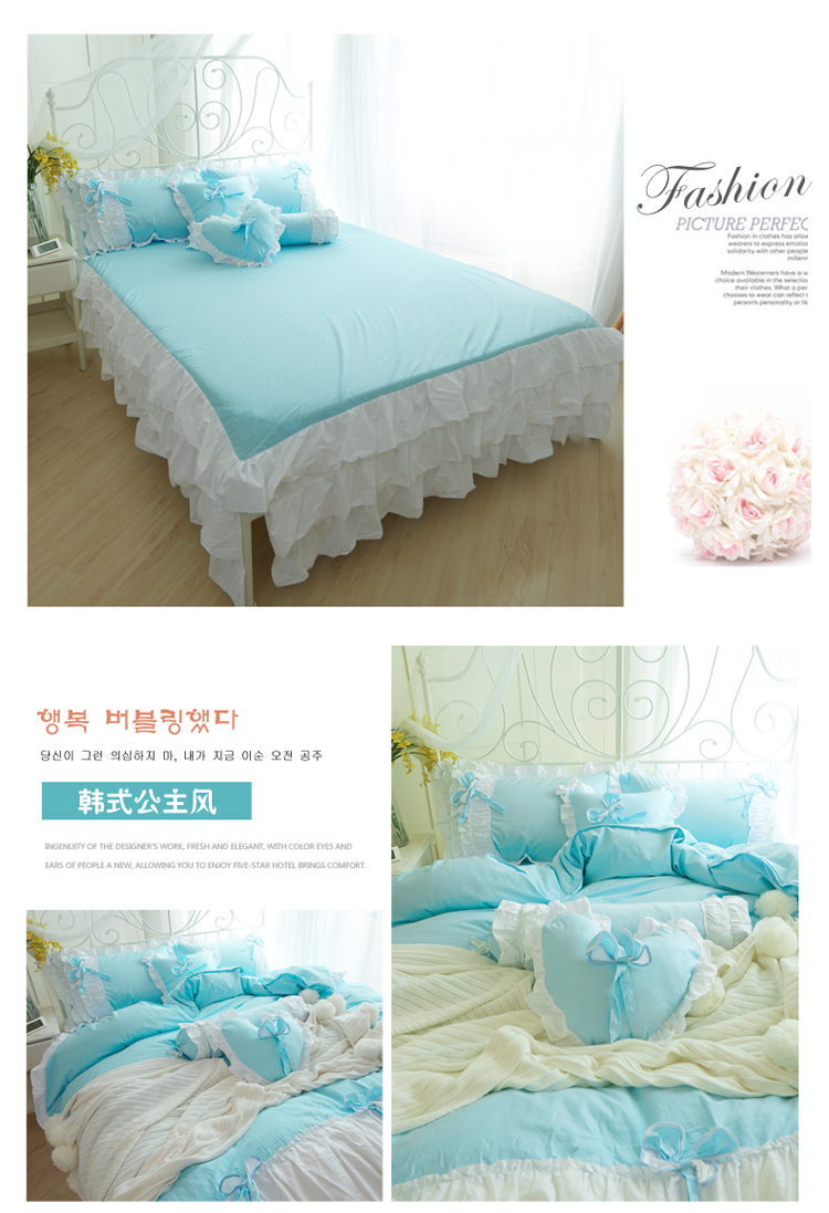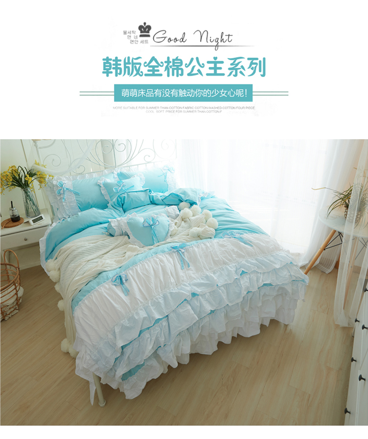 淑女公社 韩版纯棉床裙款四件套-微微公主系列 蓝色,蓝色