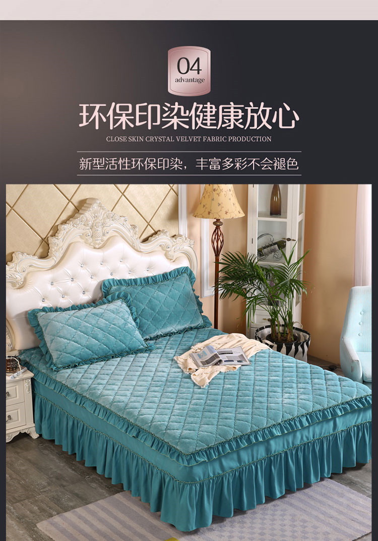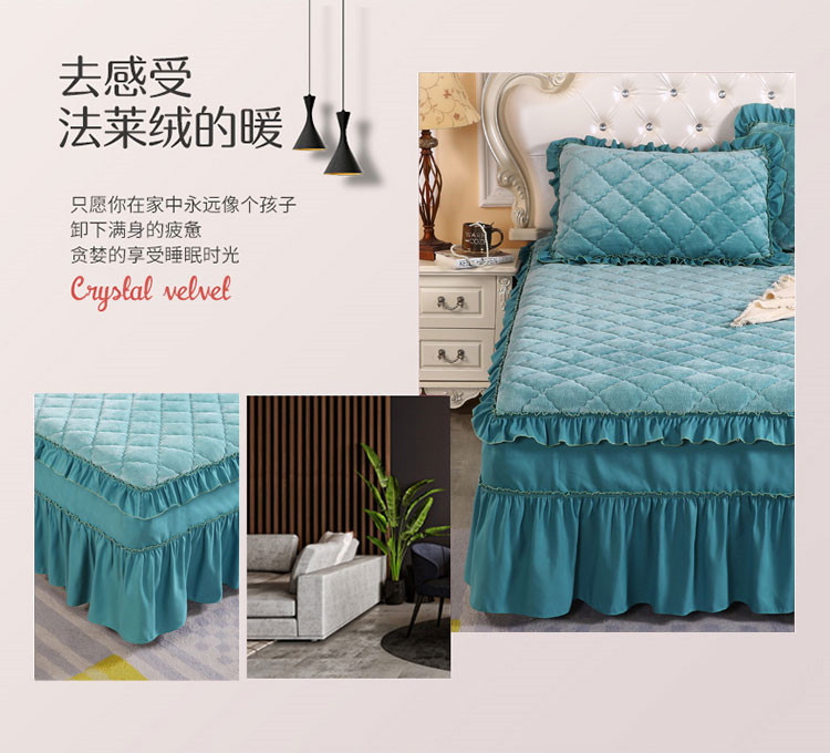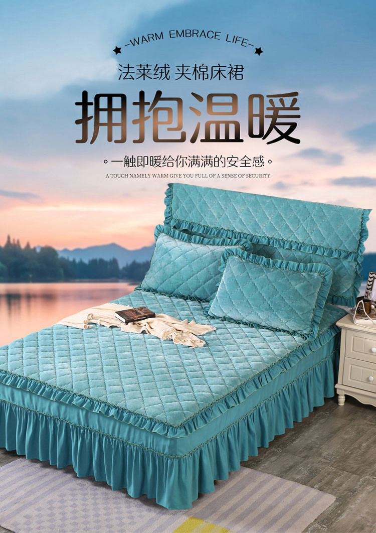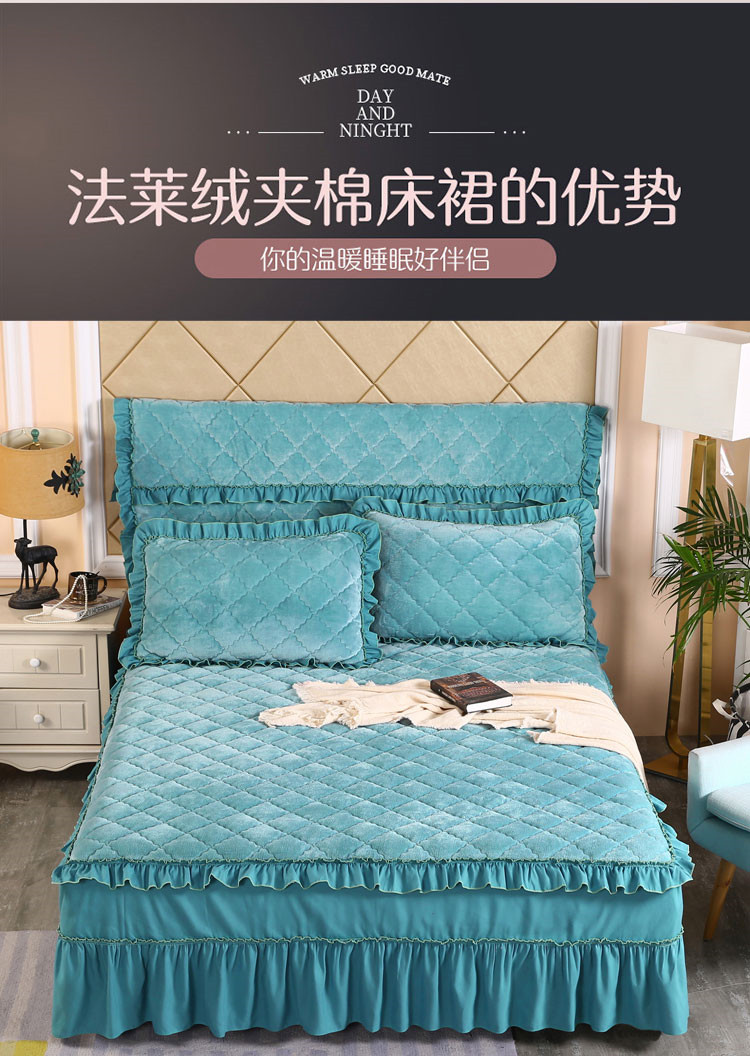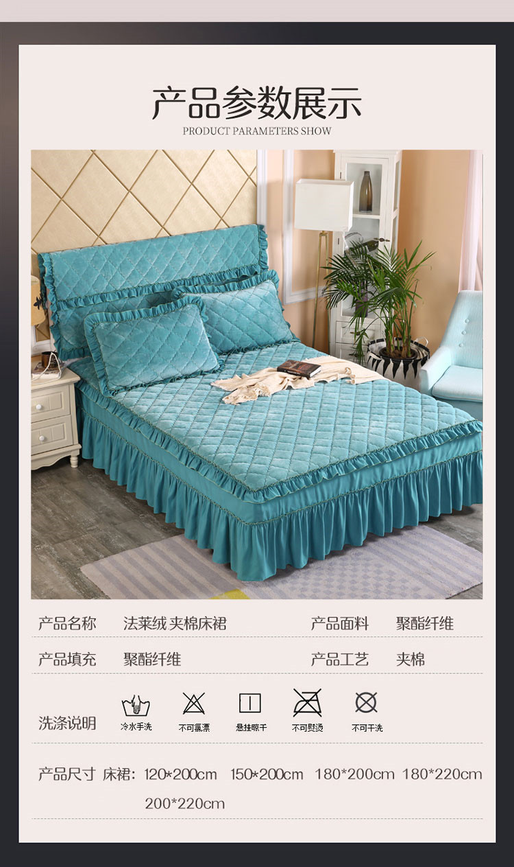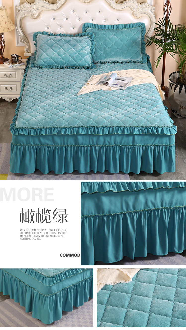 商品名称:情恒家纺 2020新款法莱绒夹棉床裙 橄榄绿