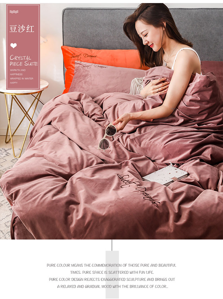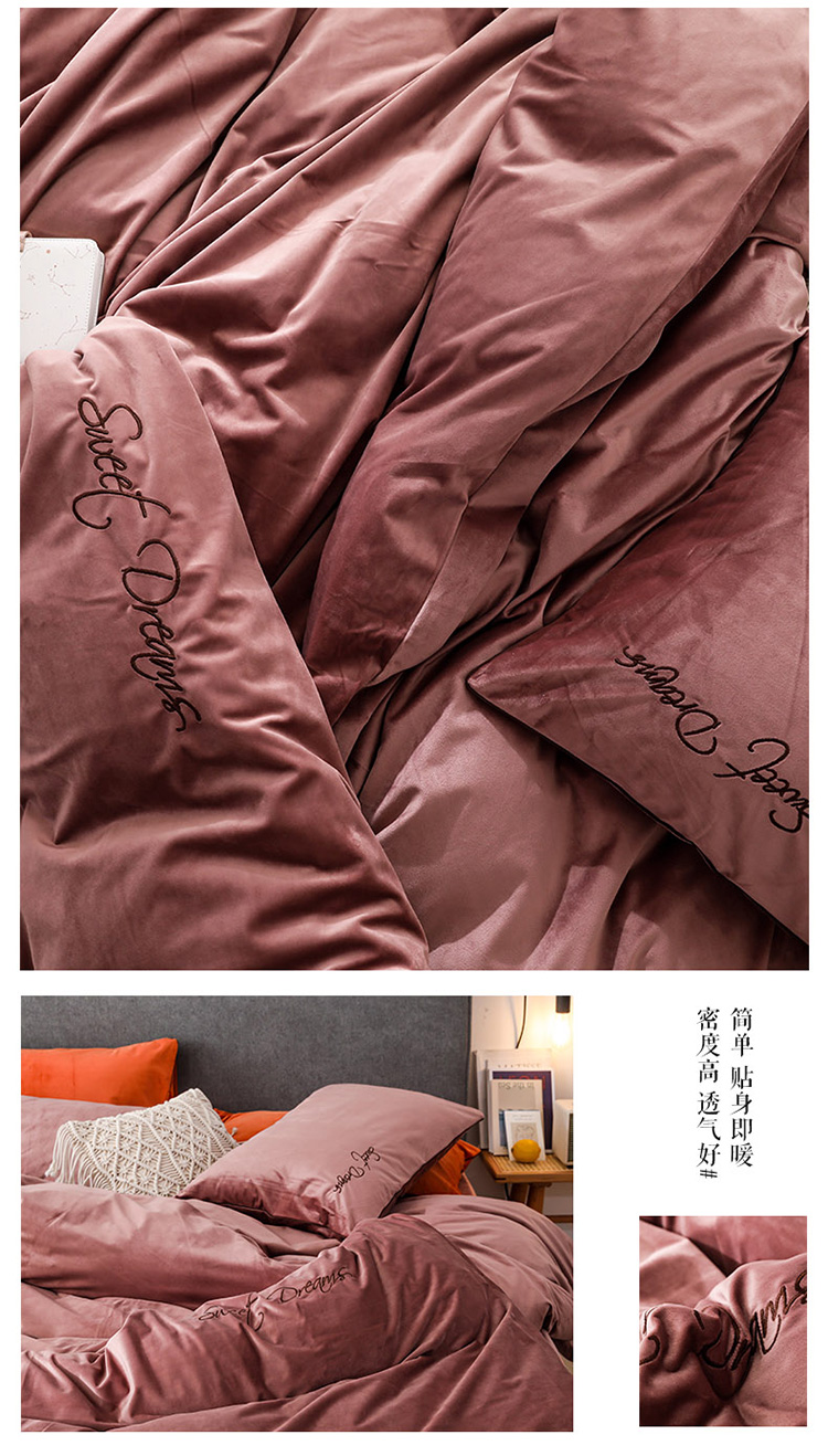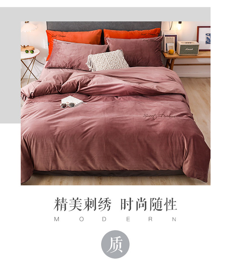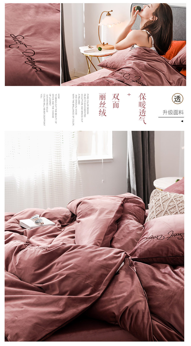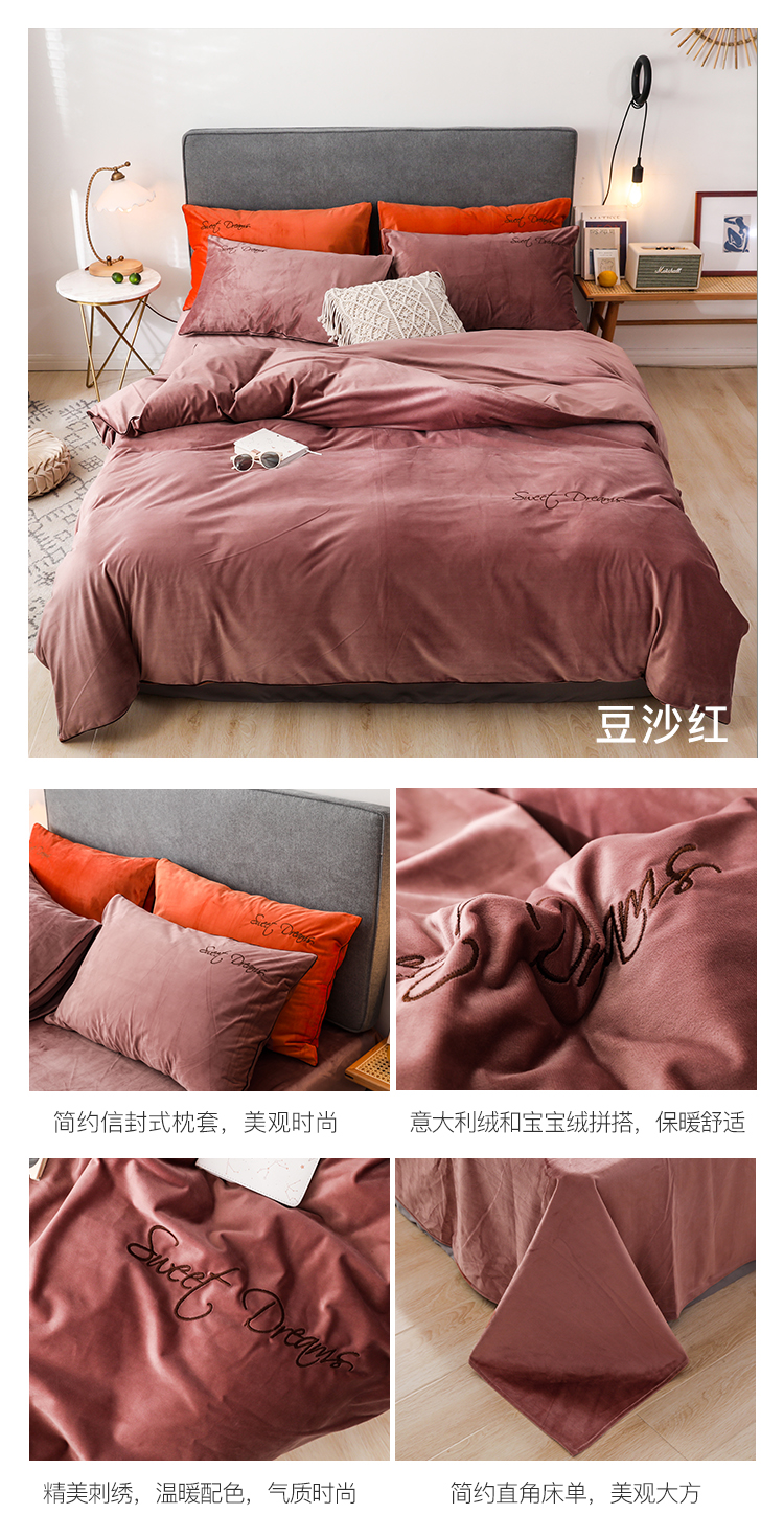 商品名称:爱缦 2019新款水晶绒丽丝绒绣花工艺款四件套 豆沙红