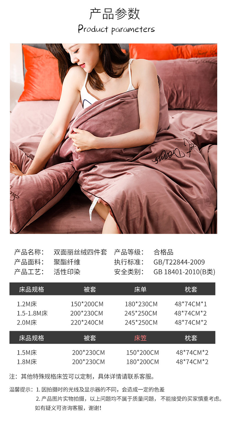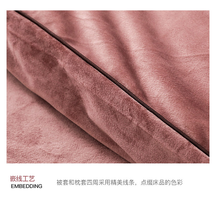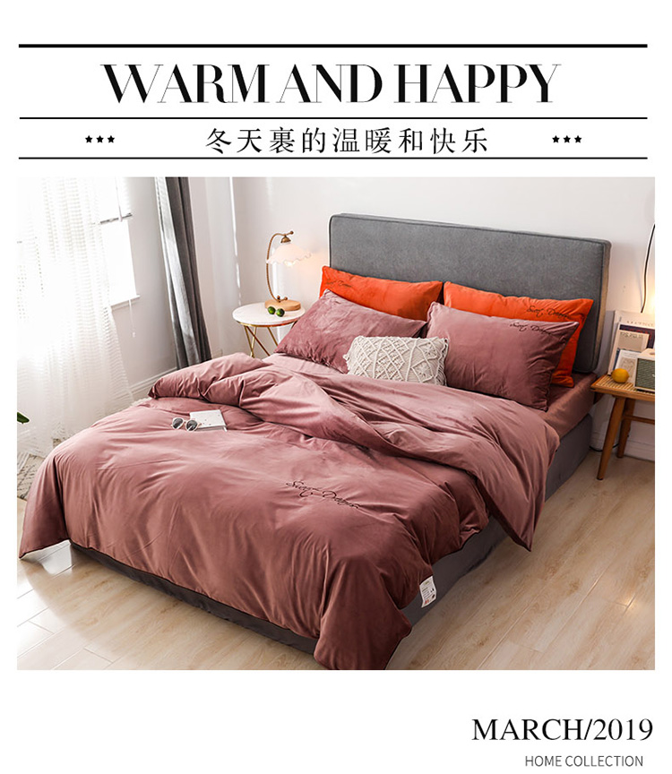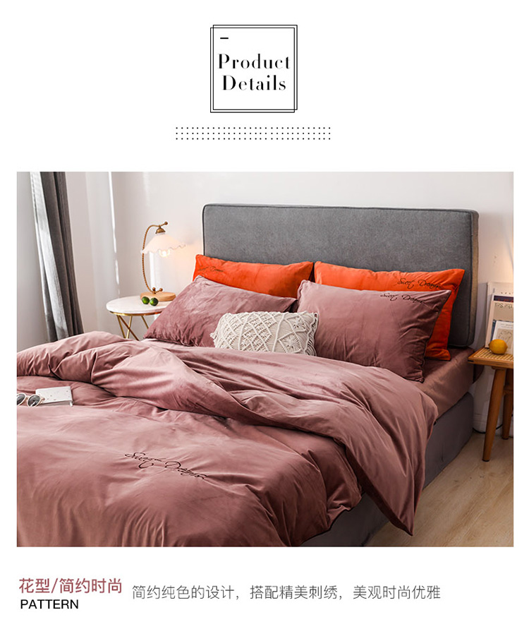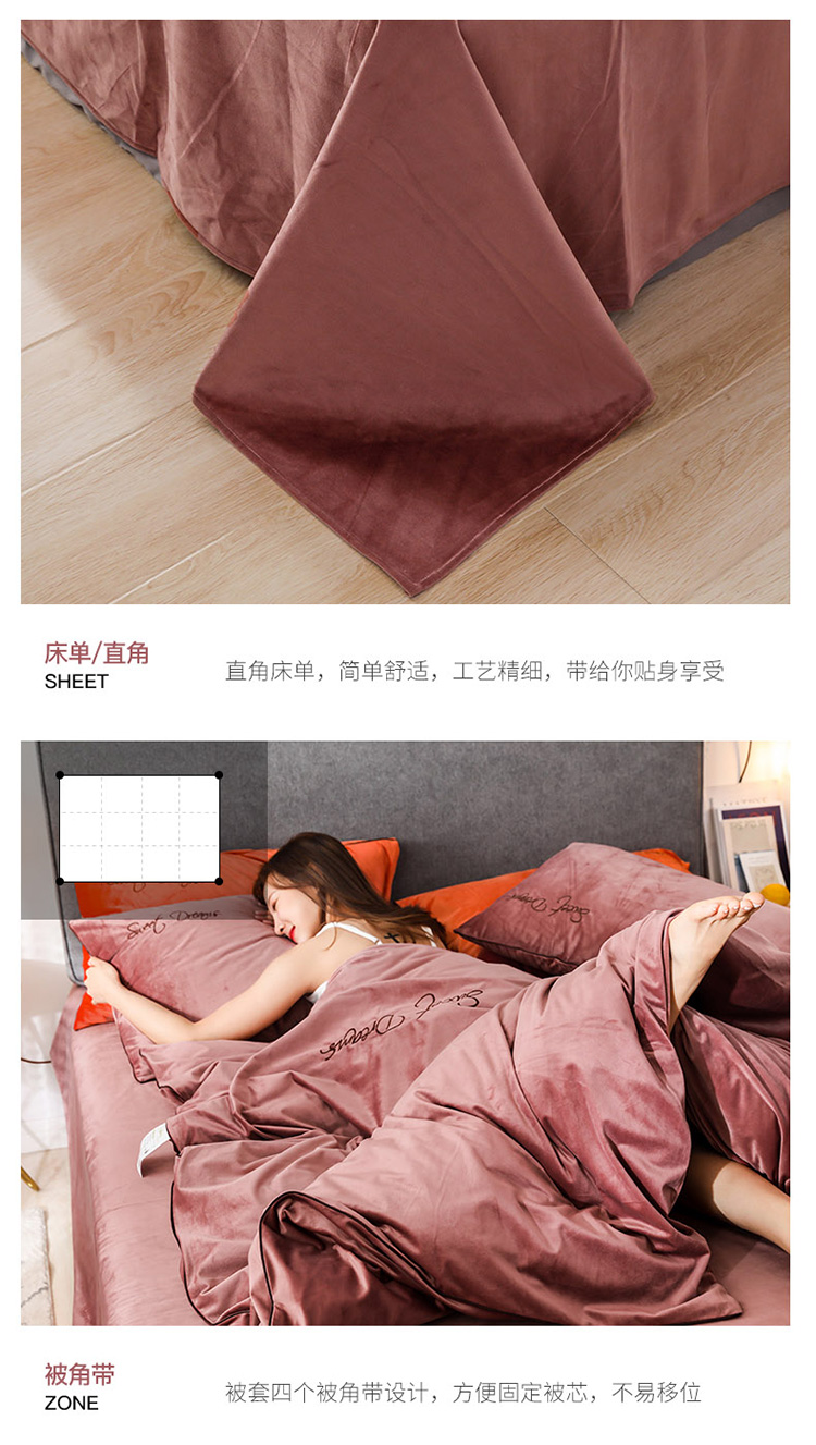 商品名称:爱缦 2019新款水晶绒丽丝绒绣花工艺款四件套 豆沙红