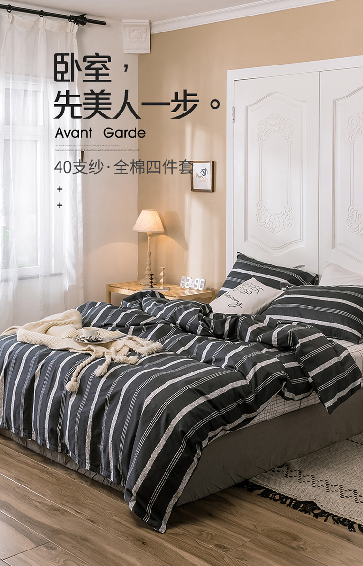 (总)2023新款40支纱全棉13070锁边工艺款四件套系列,格子爱心,嘉兰,咖条,朗尼,小兔兔,星星兔