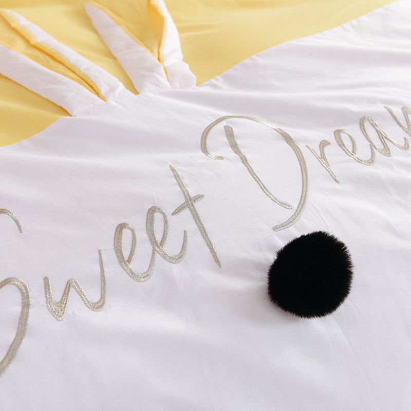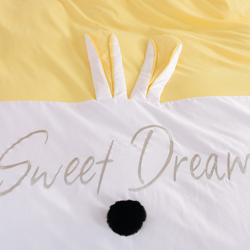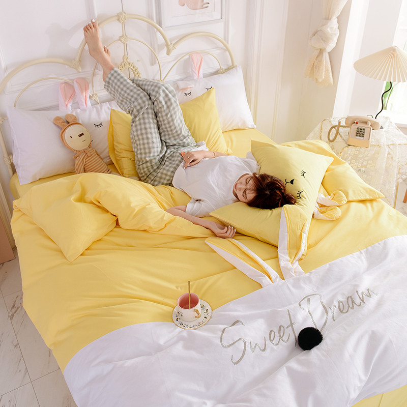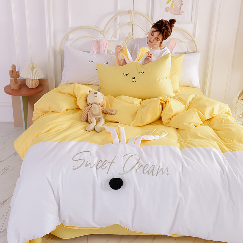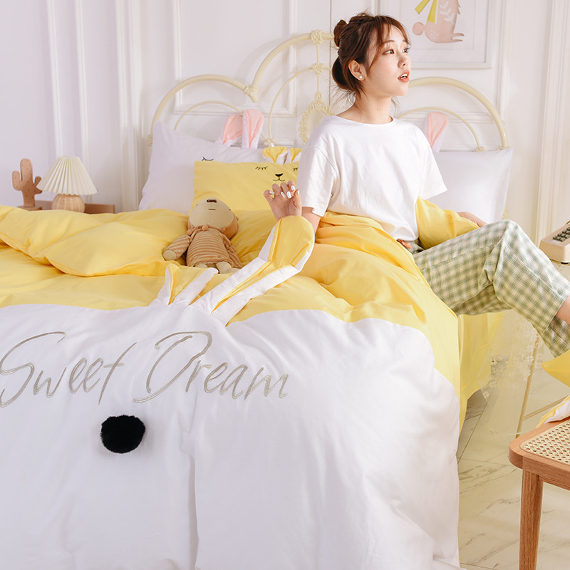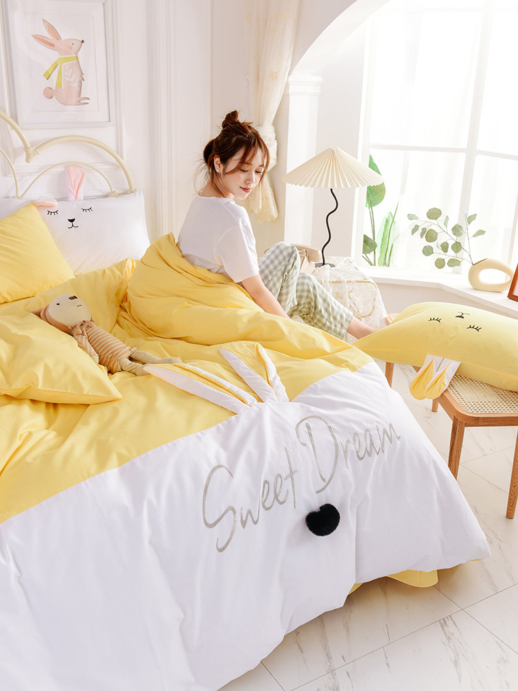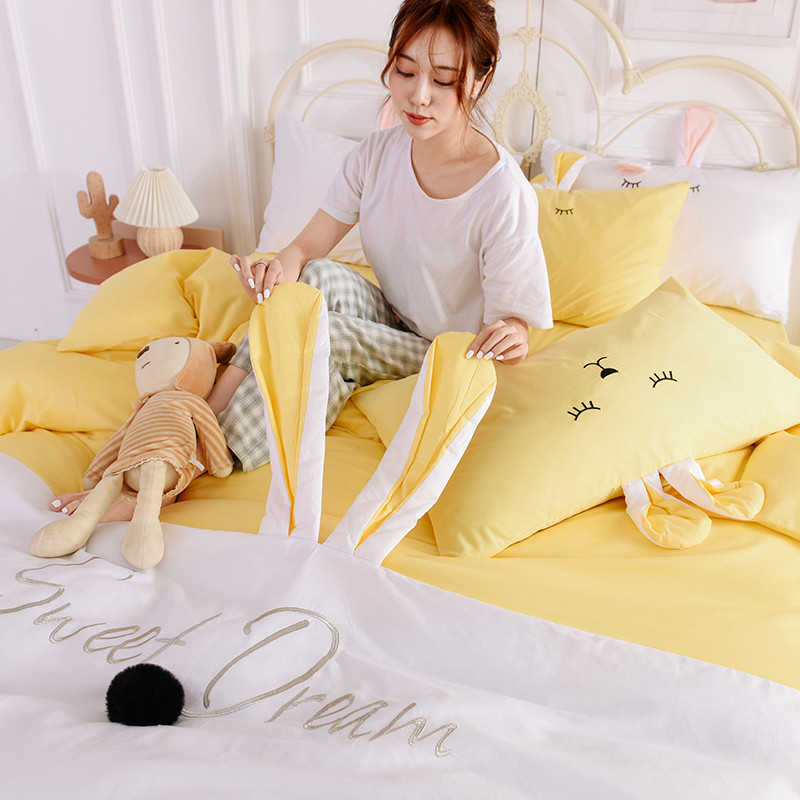 漫调家纺 2019新款ins爆款全棉兔耳朵四件套 芒果黄
