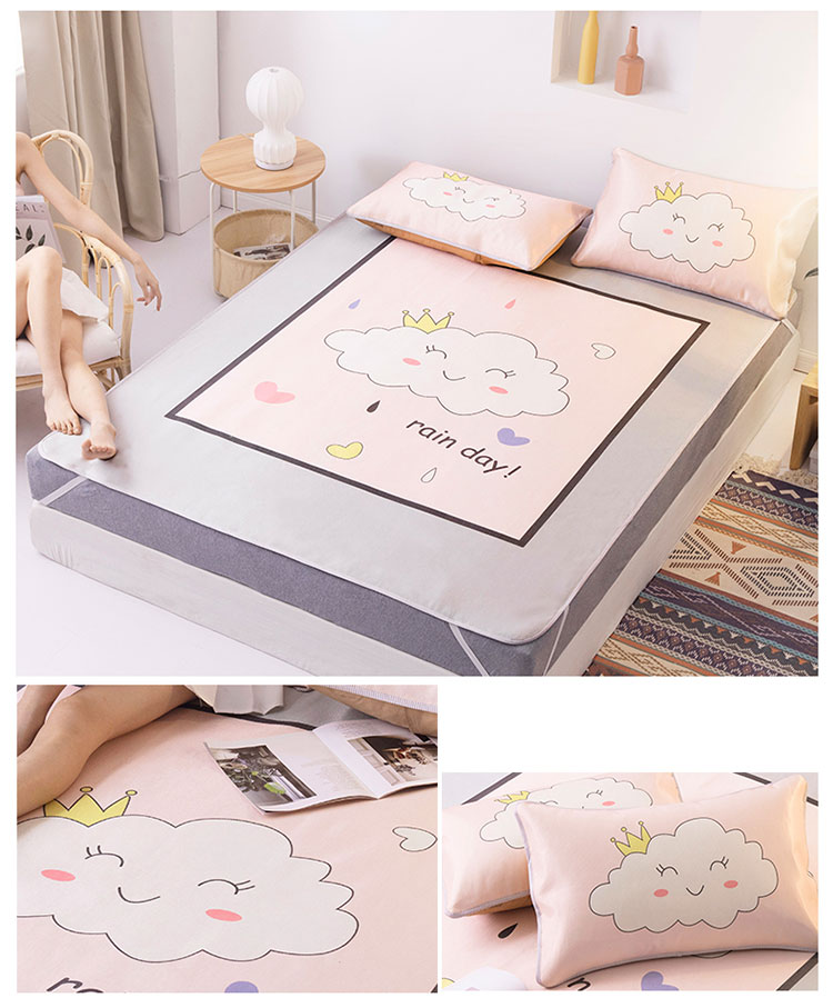 (总)北纬27度 2025新款法式优雅自带凉感科技复合三明治凉席三件套-幸运草系列,幸运草-豆绿,幸运草-蓝,幸运草-浅豆沙,幸运草-浅卡其