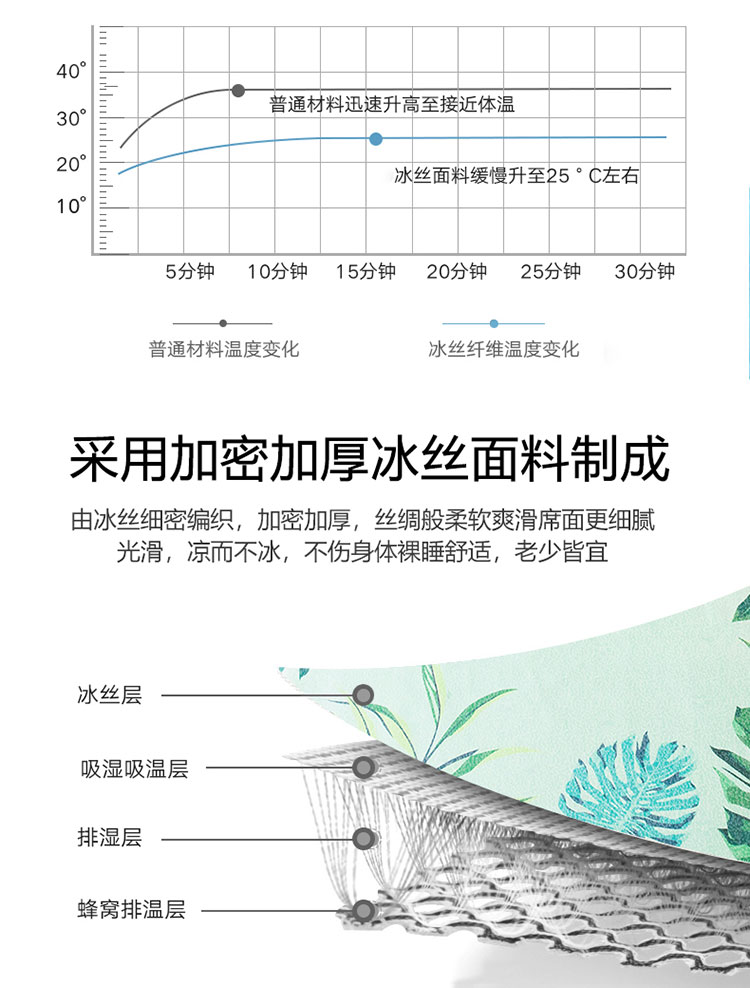 商品名称:北纬27度 2020新款ins养生纳米纤维冰丝席 绿叶丛林
