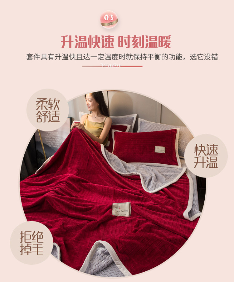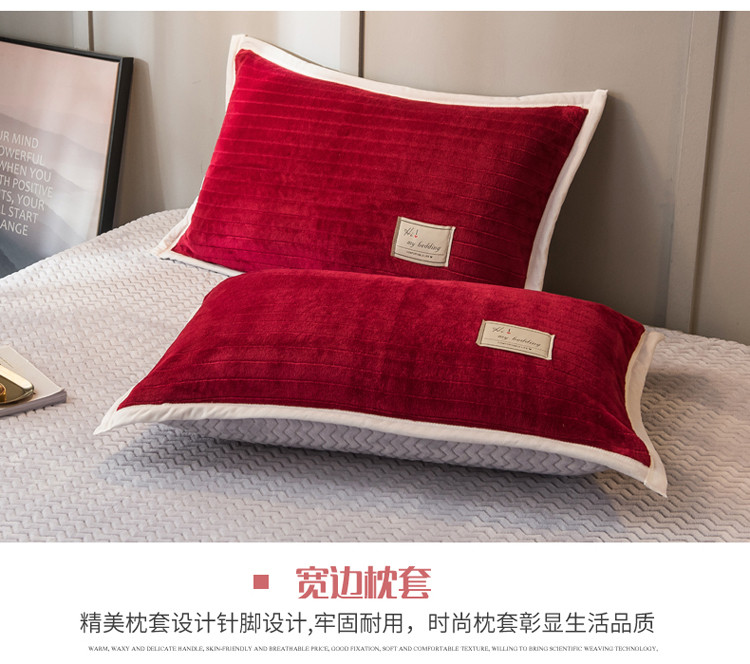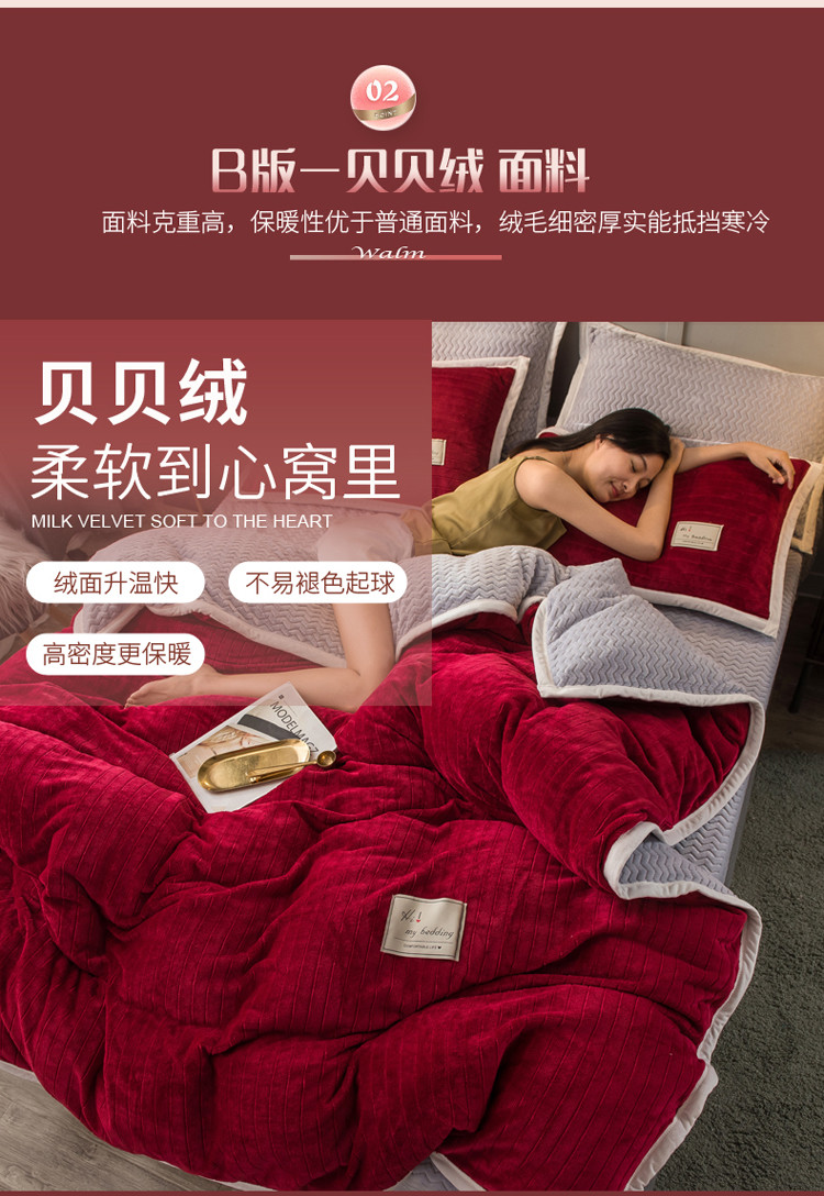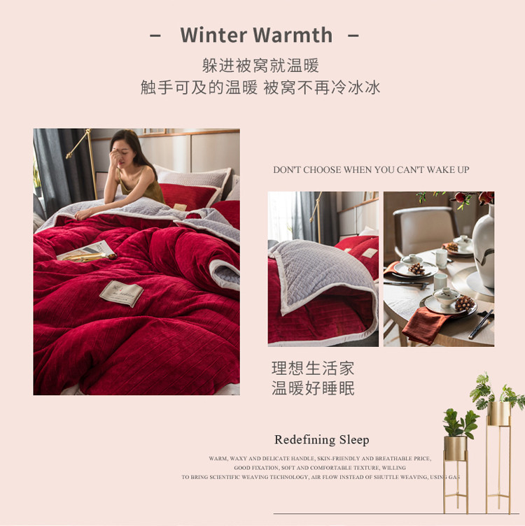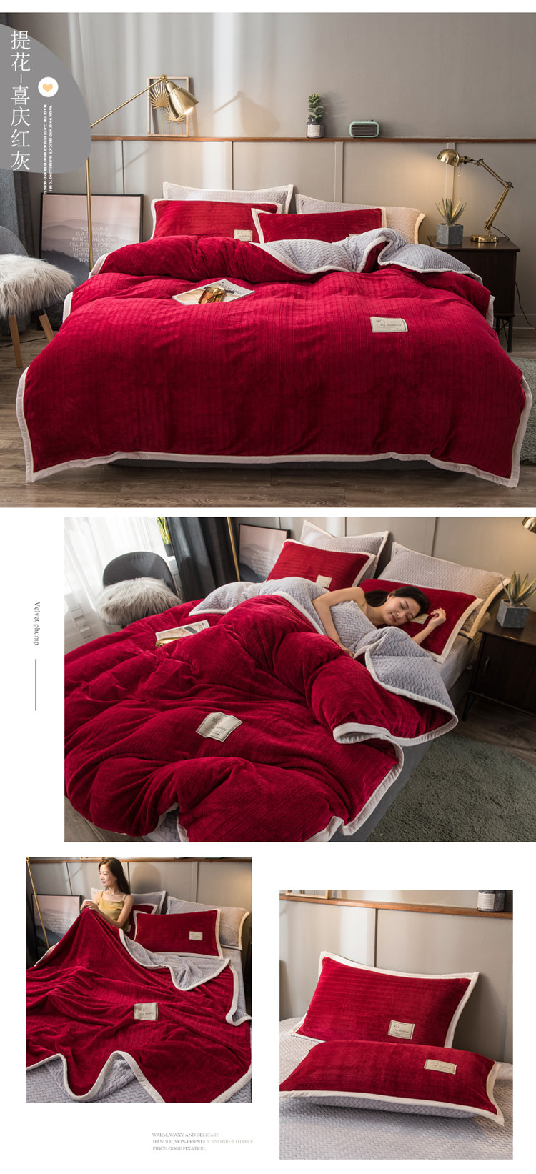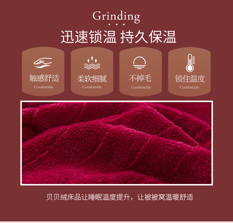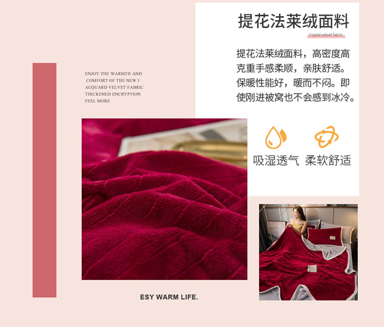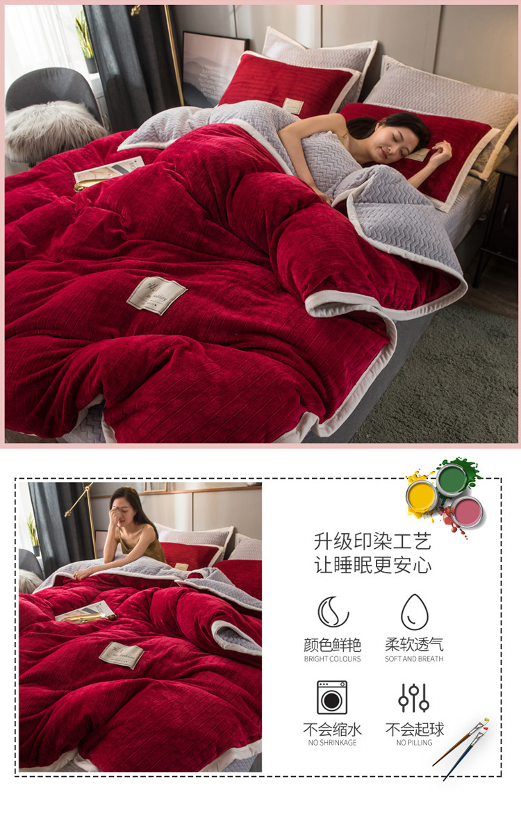商品名称:欧冠 2019提花法莱绒加贝贝绒加厚四件套 喜庆红灰