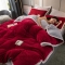 欧冠 2019提花法莱绒加贝贝绒加厚四件套 喜庆红灰