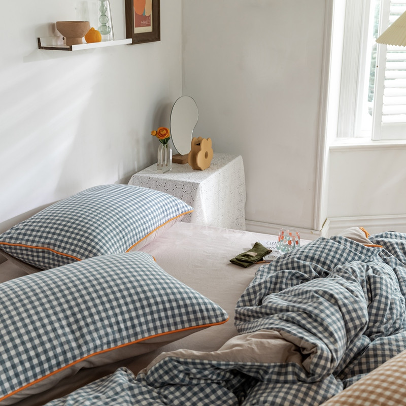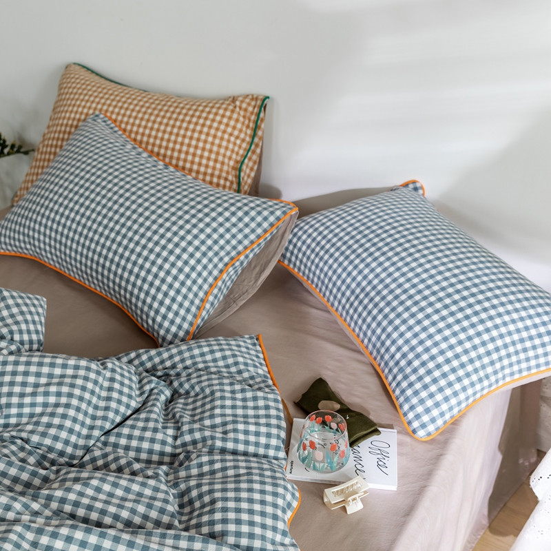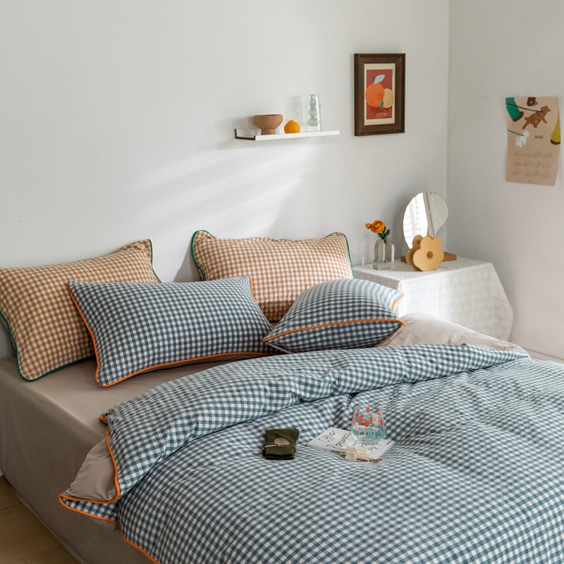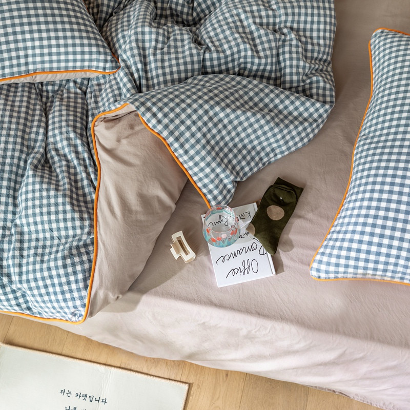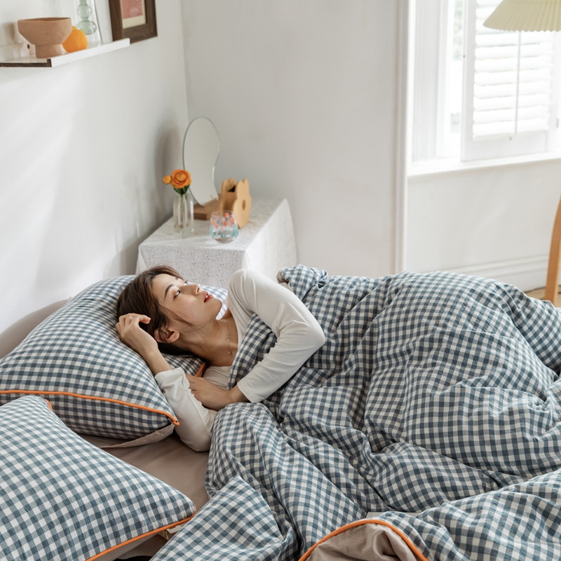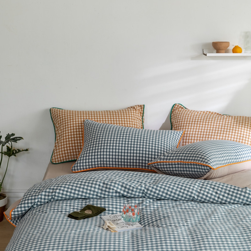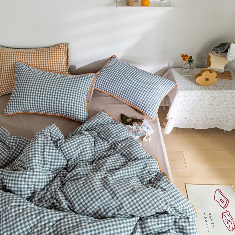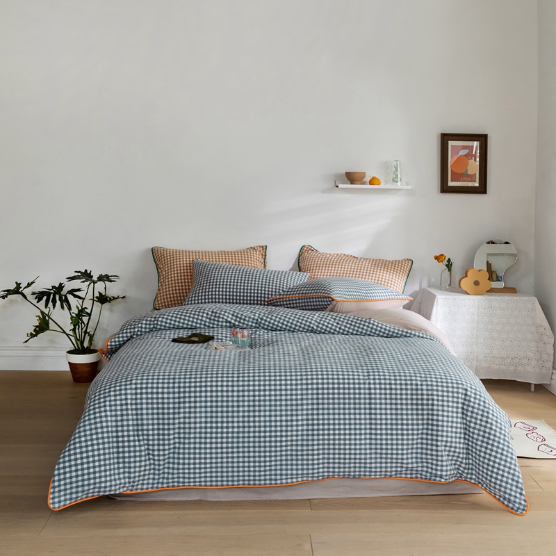 商品名称:棉眠2020夏季新款32支色织水洗棉四件套 小蓝格