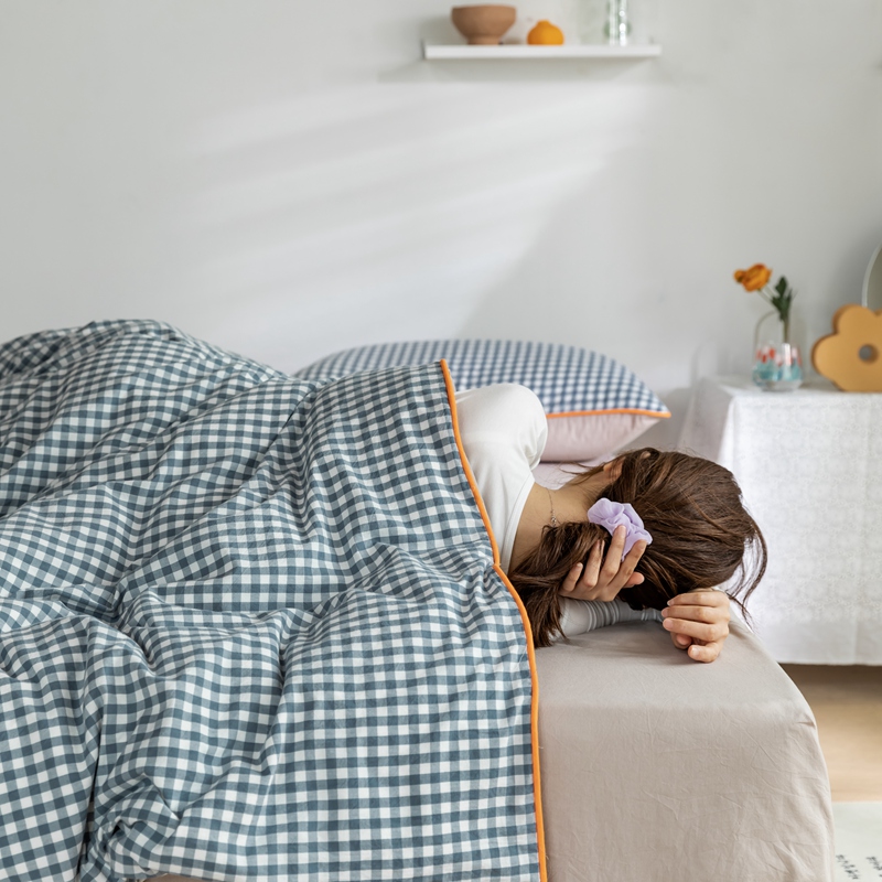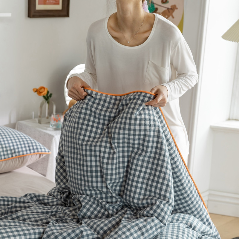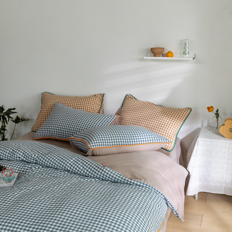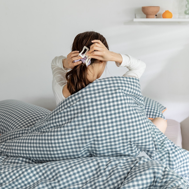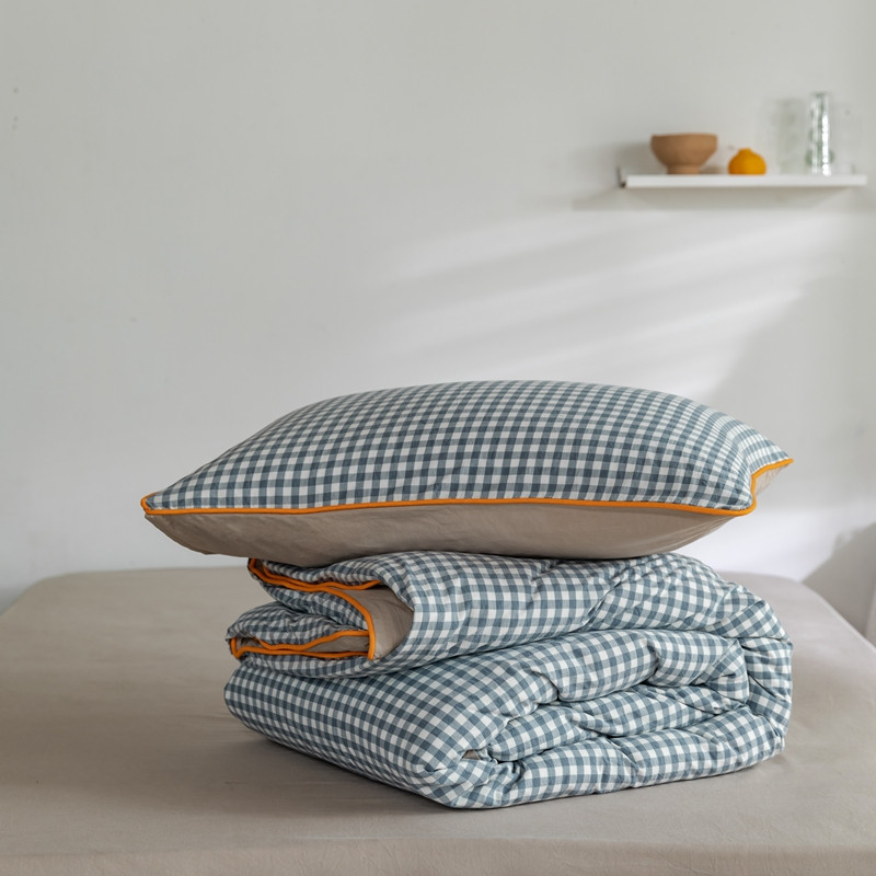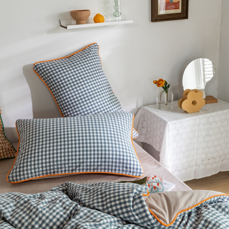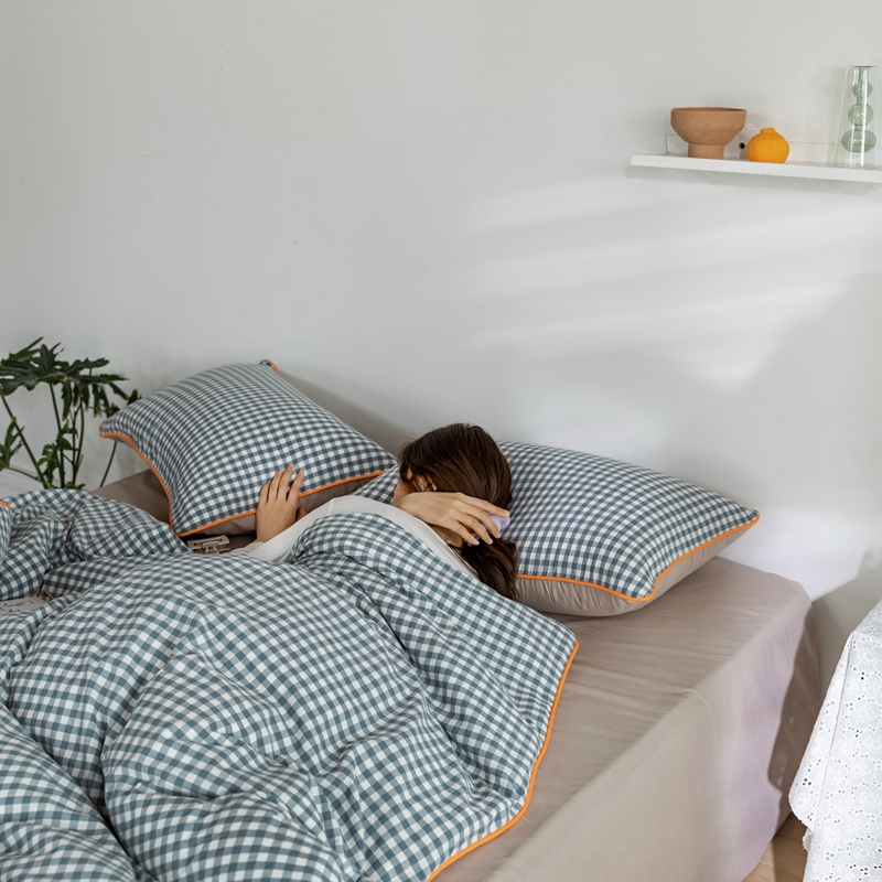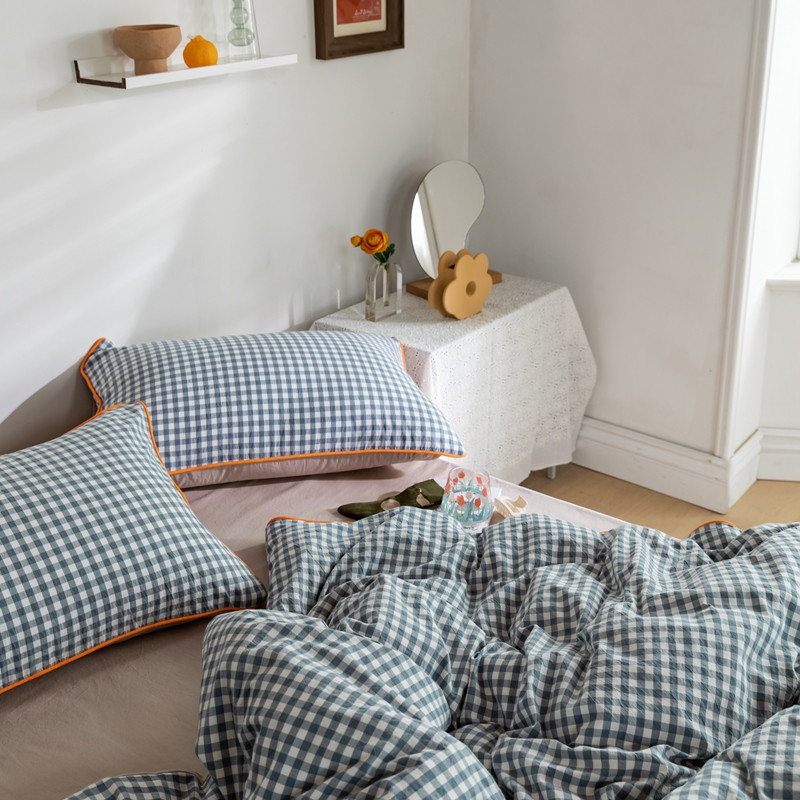 商品名称:棉眠2020夏季新款32支色织水洗棉四件套 小蓝格