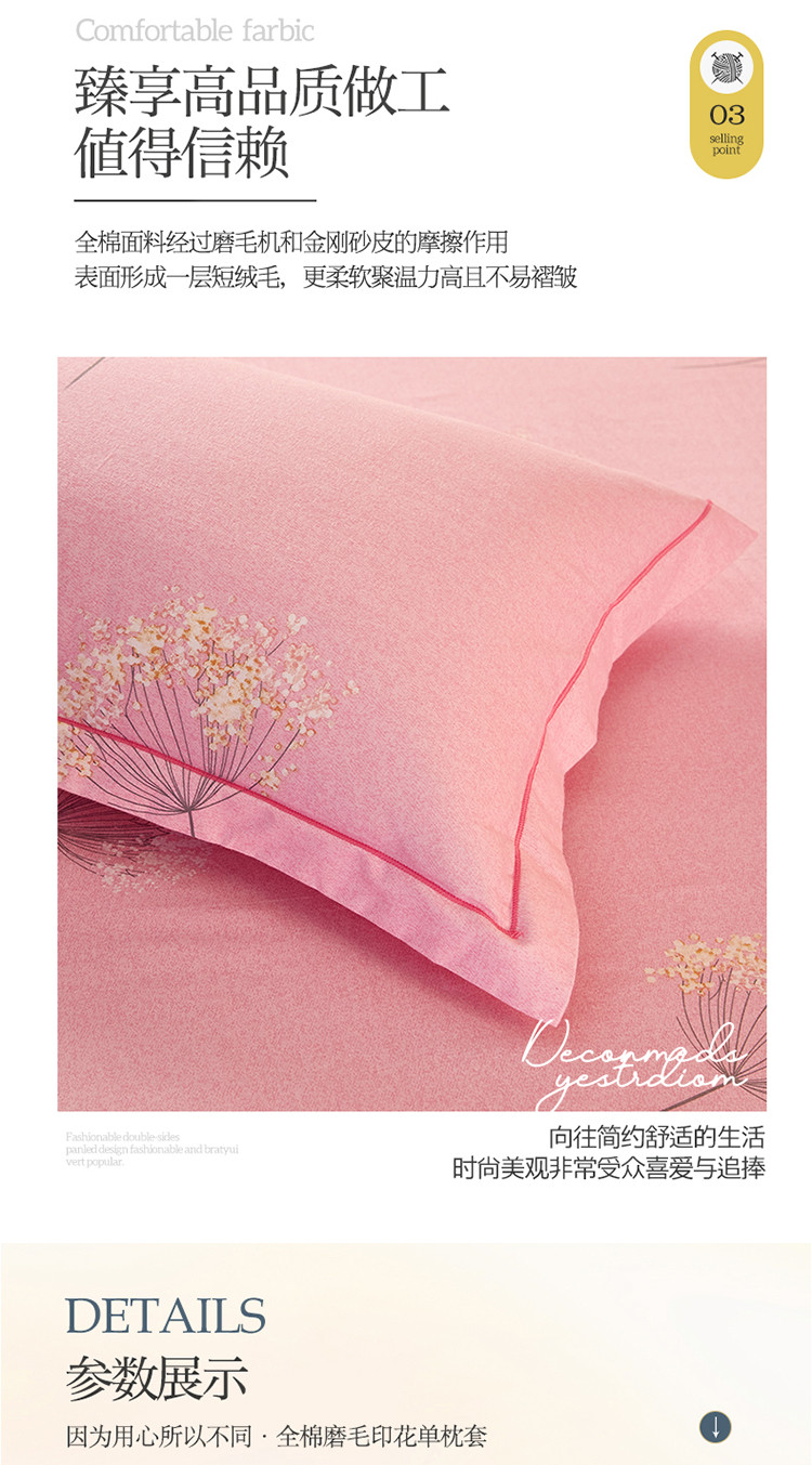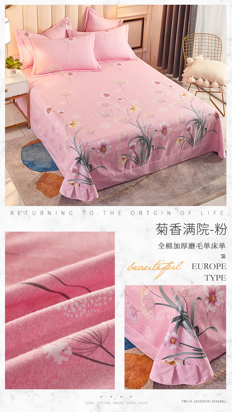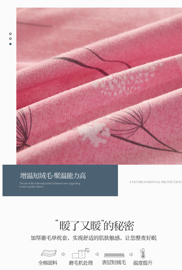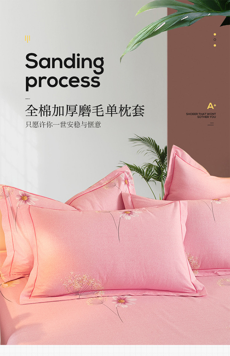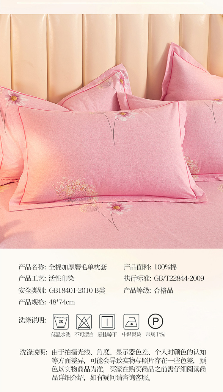 • 91家纺网 家纺一手货源 找家纺 雲归梦 2020新款多规格全棉加厚磨毛单枕套一对菊香满院-粉