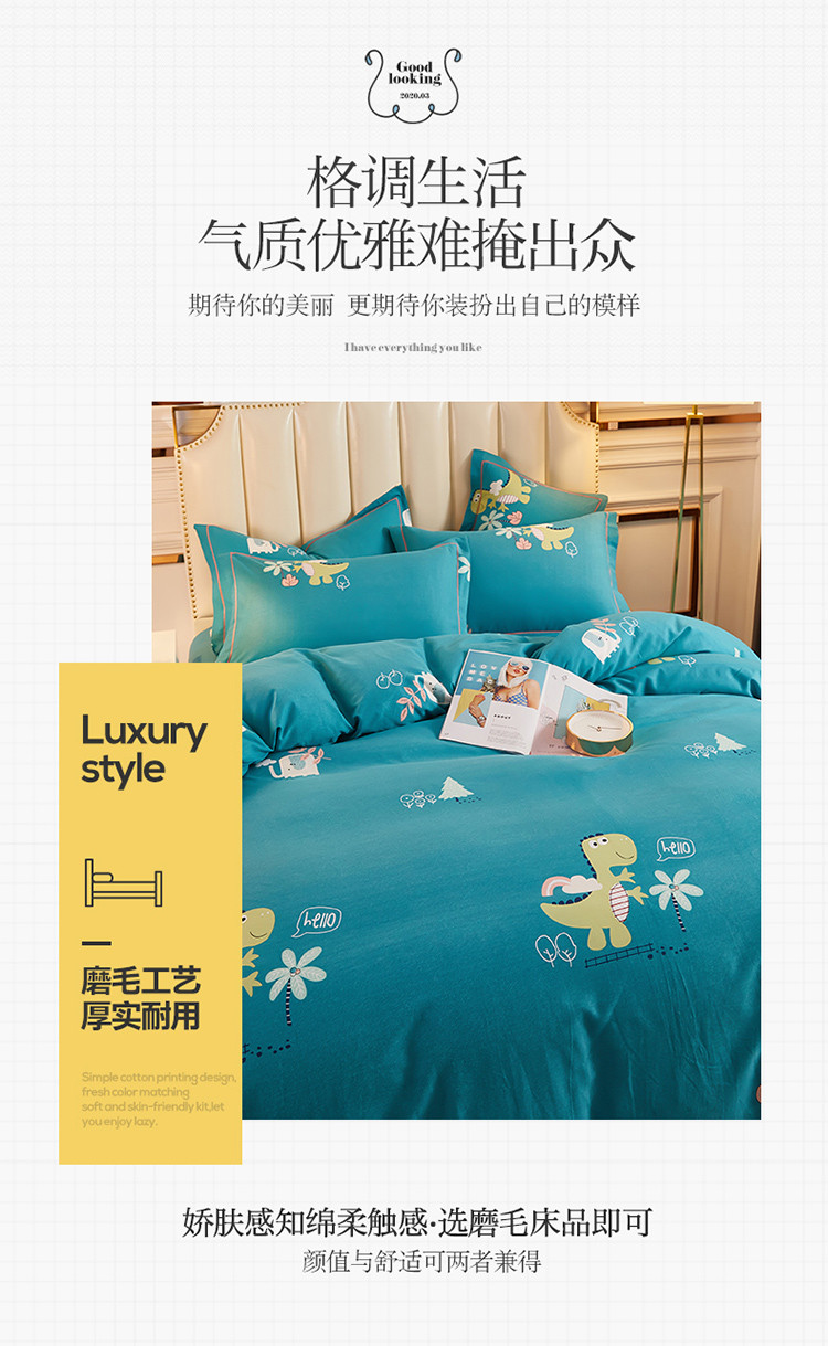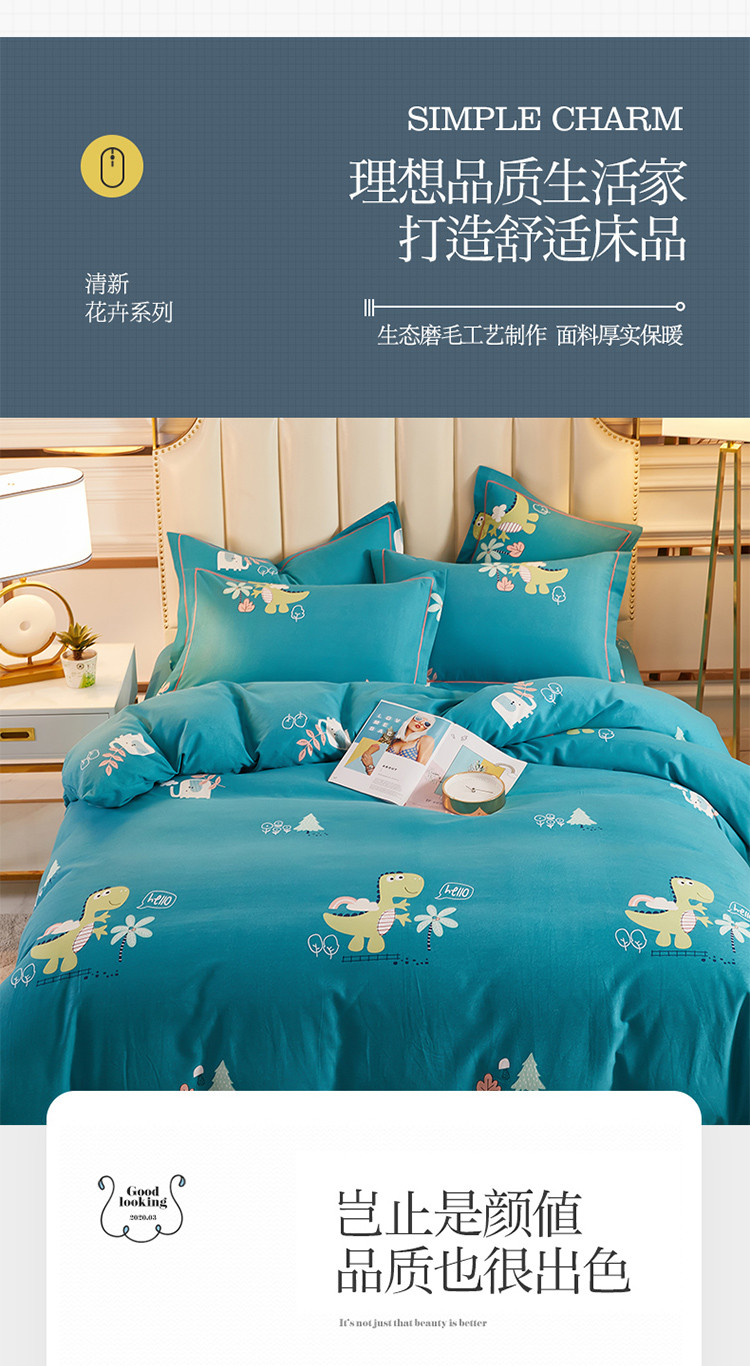 商品名称:雲归梦 2020新款多规格全棉加厚磨毛单被套 恐龙乐园-蓝