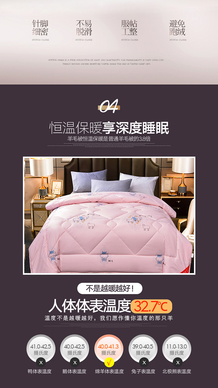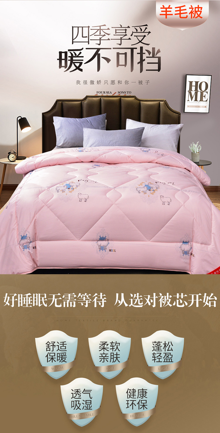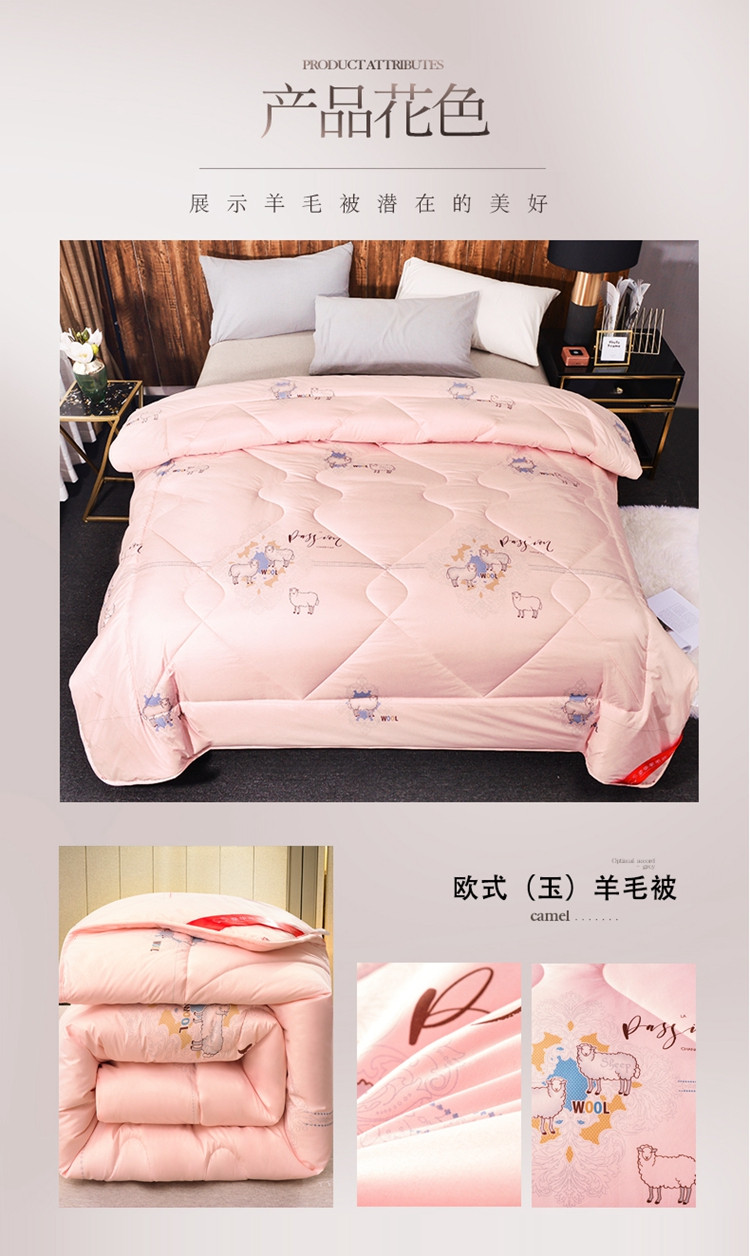 (总)拉菲伯爵爵 2023新款防钻毛水洗加厚无味羊毛被(粉羊),粉羊