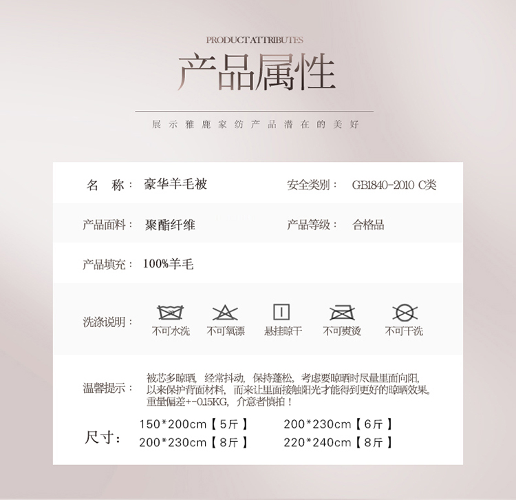 (总)香港拉菲伯爵集团有限公司 2024新款羊毛被芯-平安清白,平安清白