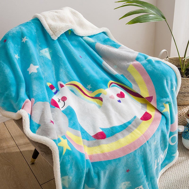 茗婷家纺 2025款羊羔绒双层加厚保暖儿童毛毯云毯供外贸跨境亚马逊TRMU 彩虹马