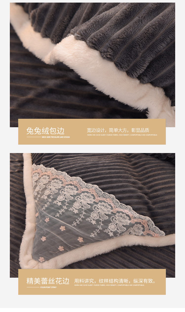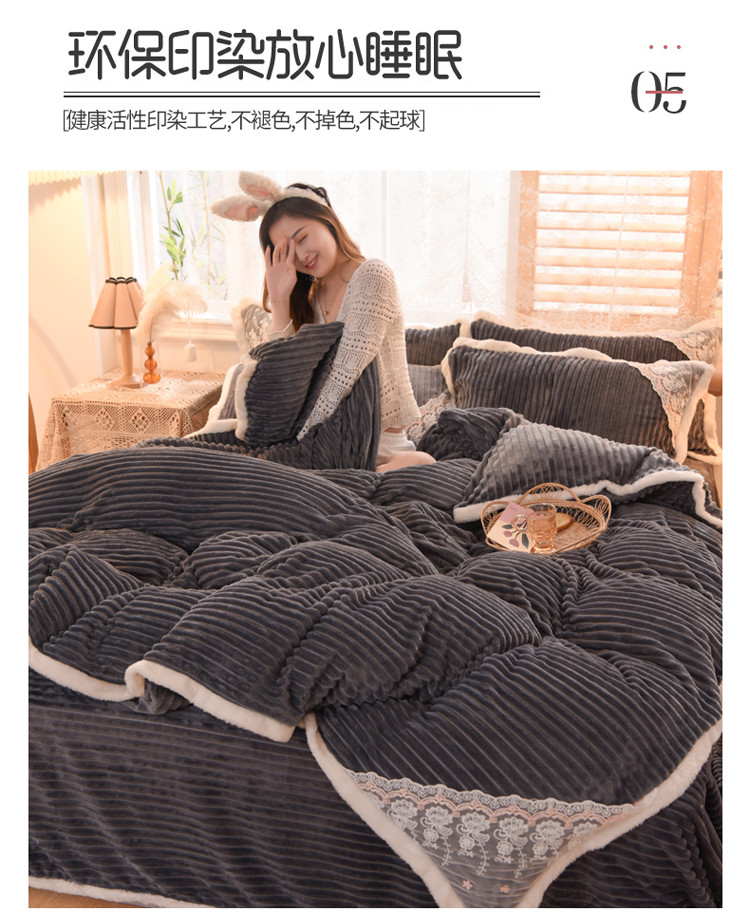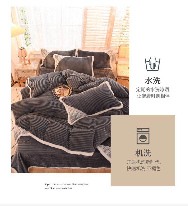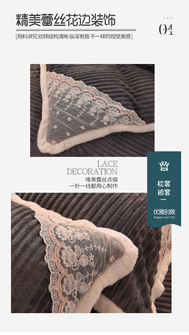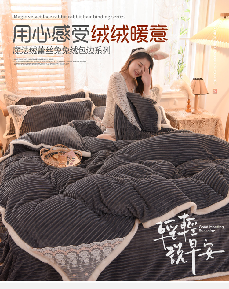 商品名称:欧冠 2020双面魔法绒兔兔绒蕾丝花边四件套 高级灰