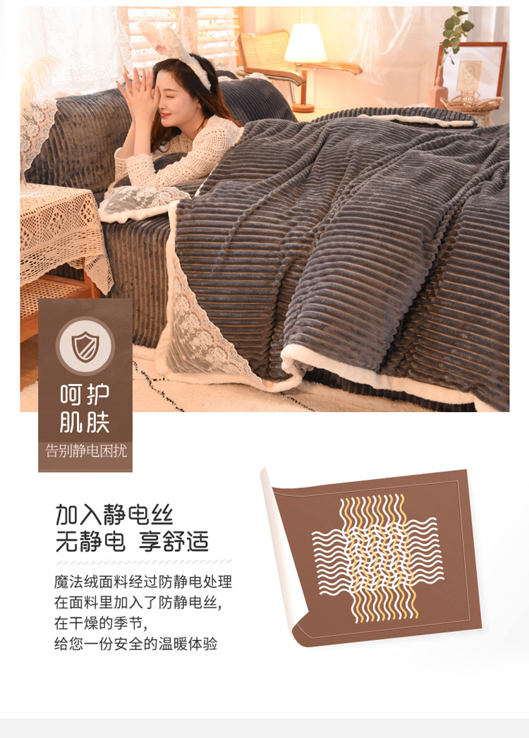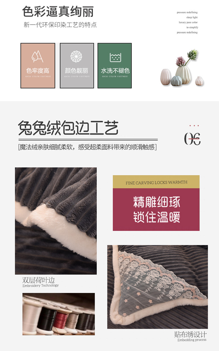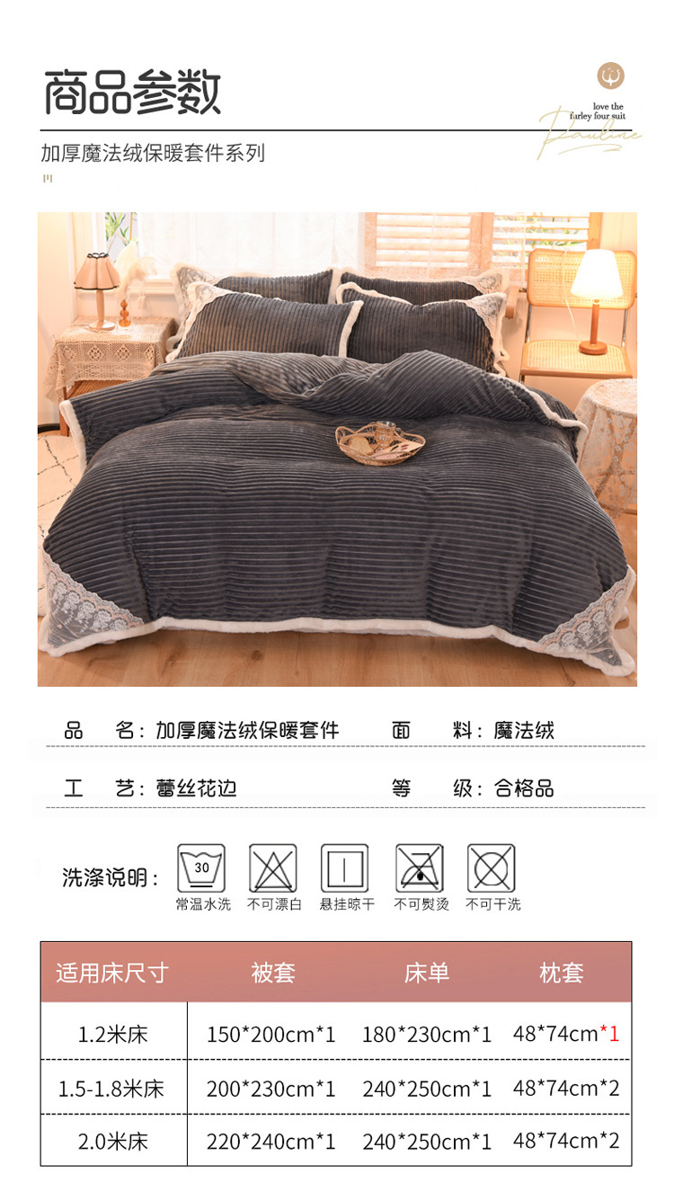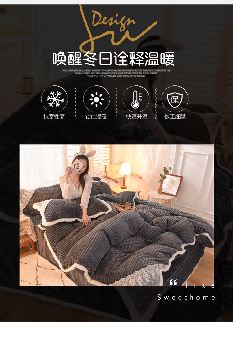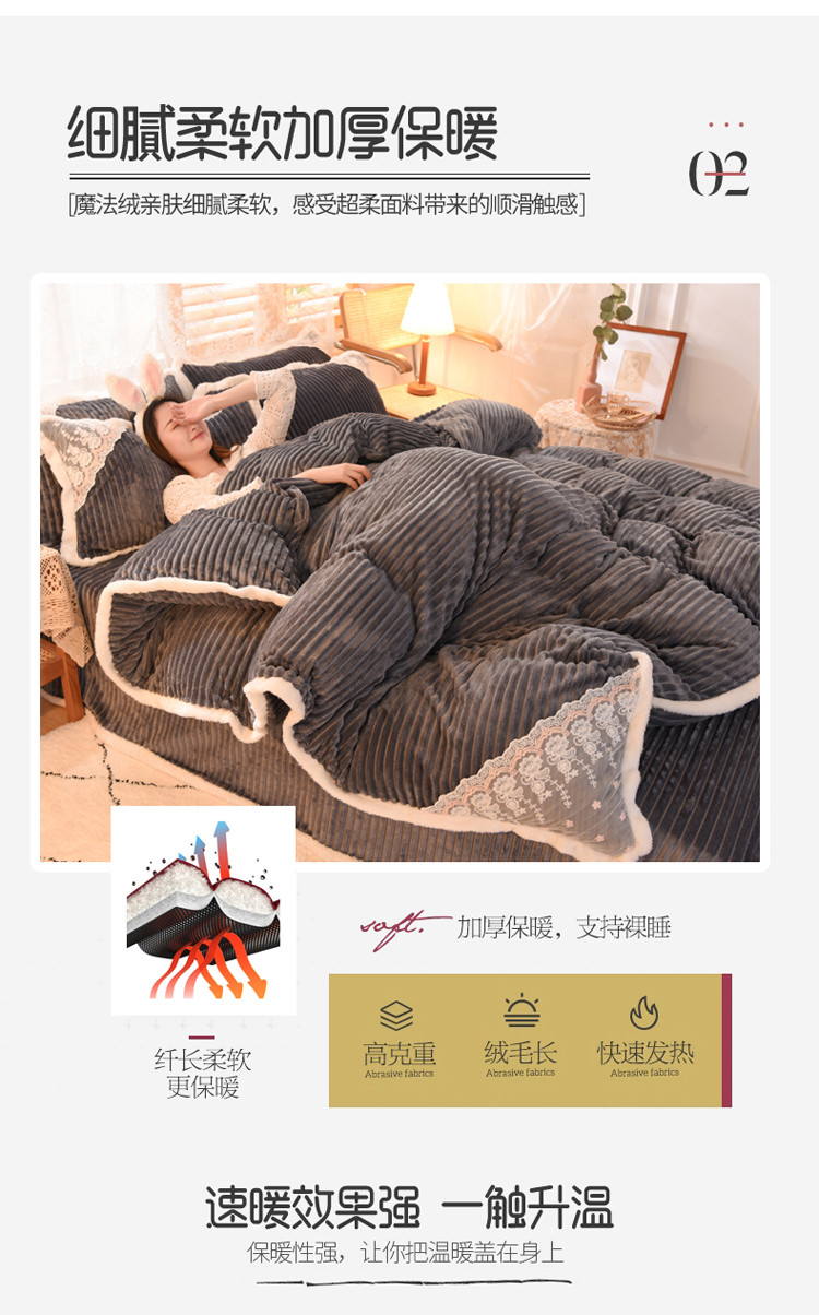 商品名称:欧冠 2020双面魔法绒兔兔绒蕾丝花边四件套 高级灰