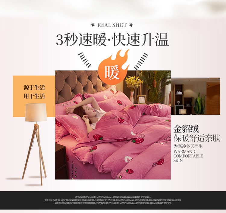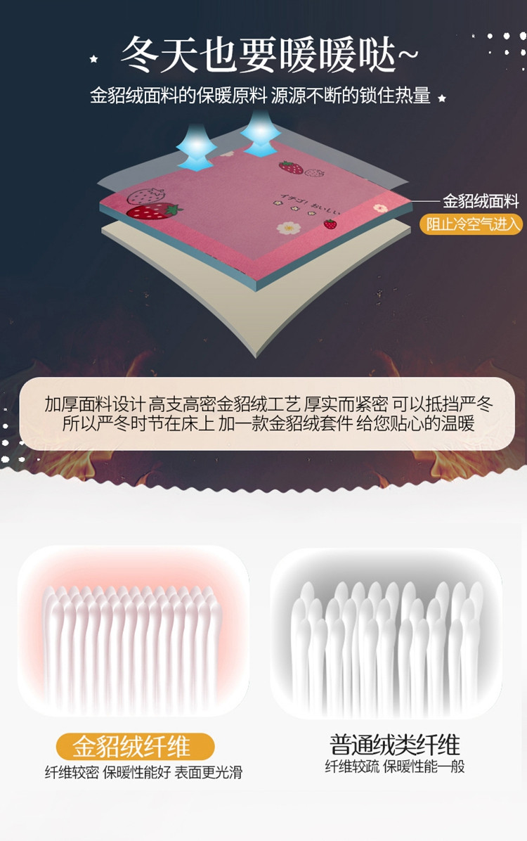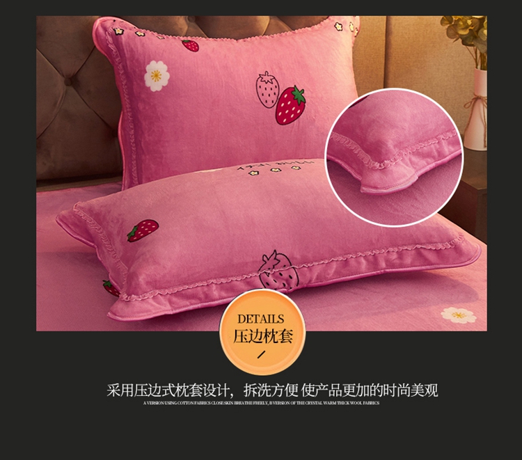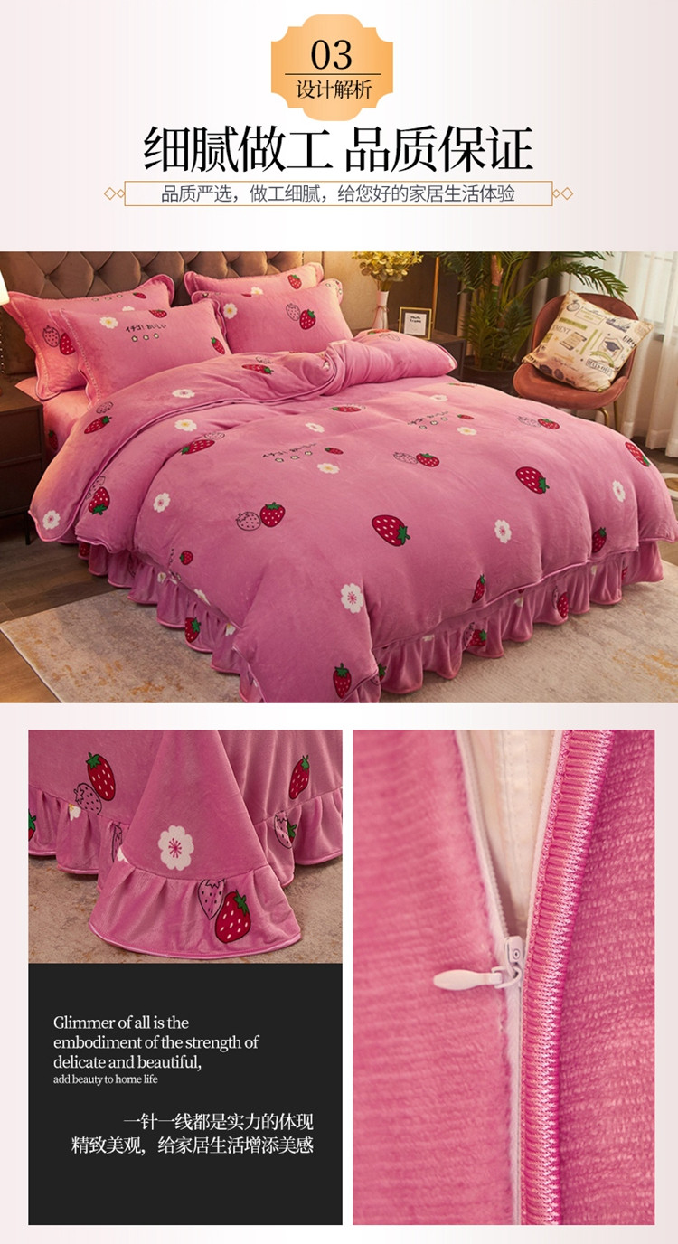 商品名称:爱洛牛奶绒宝宝绒水晶绒法莱绒金貂绒四件套 草莓甜心