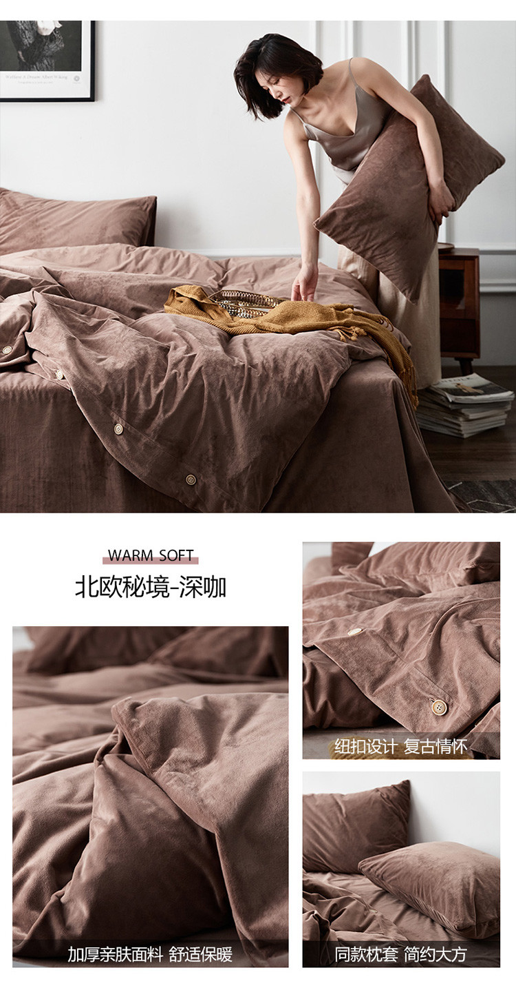 当前位置: 91家纺网 > 商品网购 > 床品套件 > 四件套 > 磨绒四件套 > 新款北欧秘境绒系列四件套 深咖