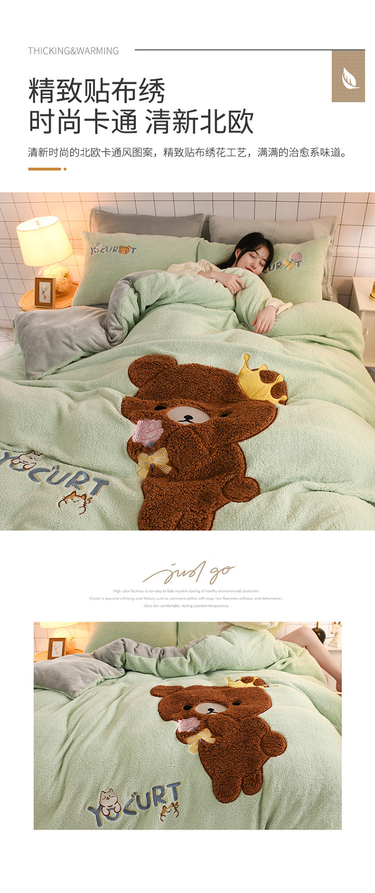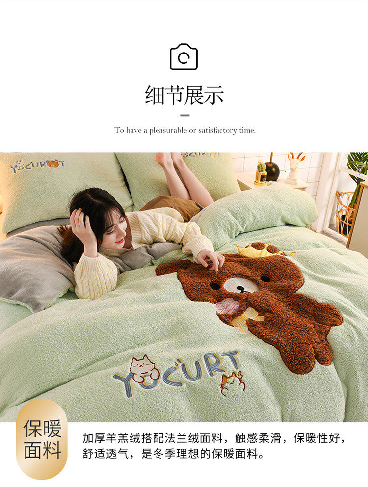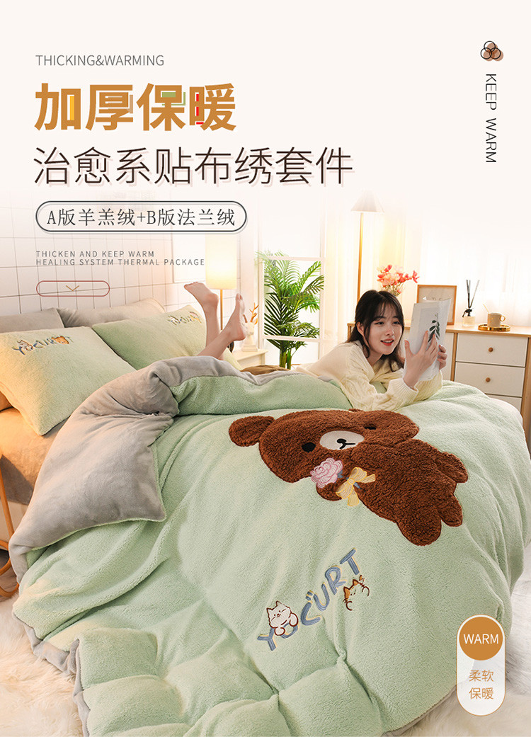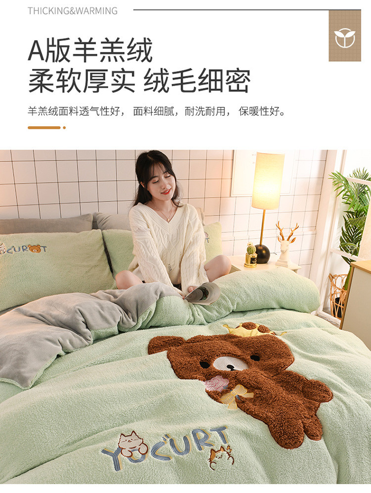 (总)朗莎家纺 2019新款羊羔绒贴布绣四件套,彩虹精灵,菠萝玉色,草莓奶白,独角兽抹茶绿,好色龙银灰,荷包蛋姜黄,荷包蛋抹茶绿,柠檬抹茶绿,柠檬墨绿,牛油果抹茶绿,圣诞鹿豆沙,小鸡藏青,小鸡午夜蓝,小鸡银灰