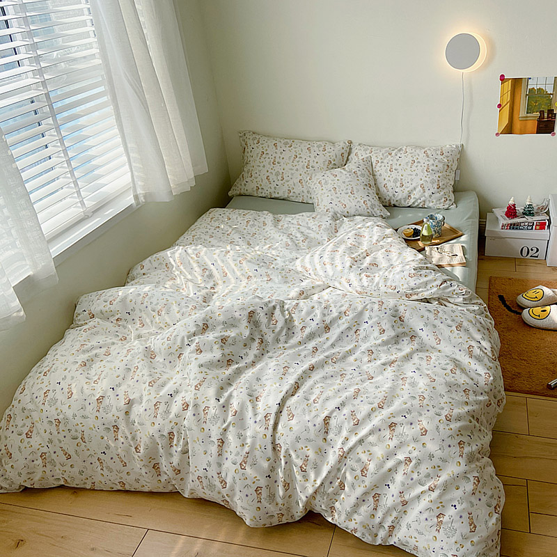 (总)尺素 全棉40支喷气13372韩国ins设计师四件套,花舞,篱落粉,篱落黄,落英,派对,童趣,涂鸦,小粉兔,雪地熊