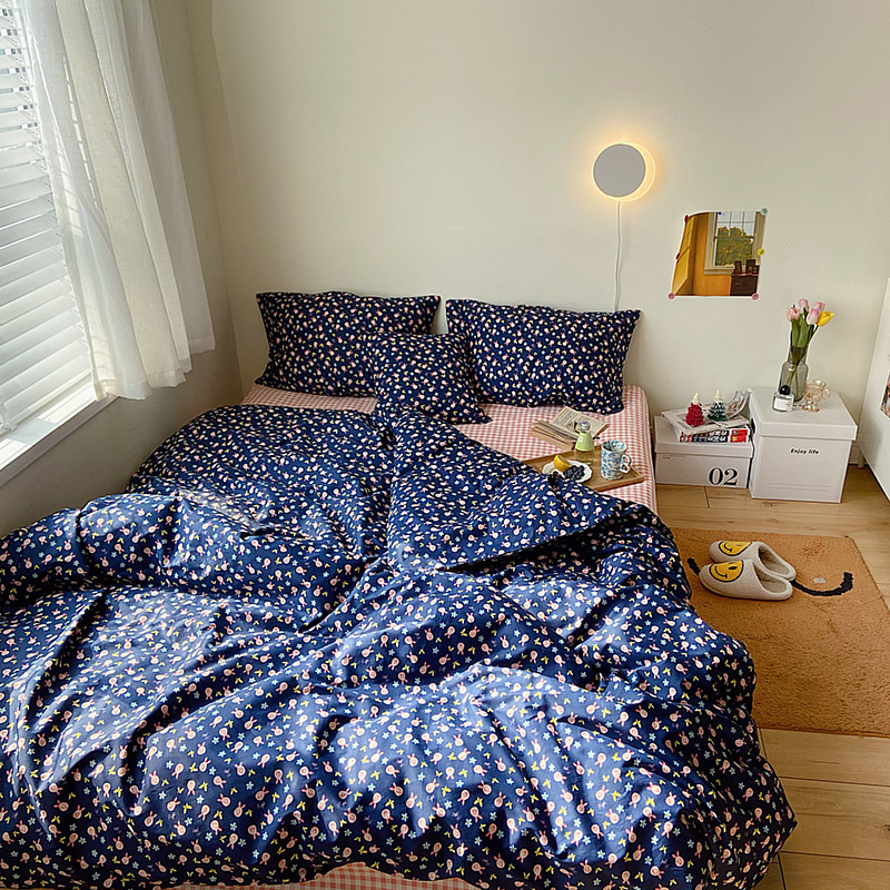 (总)尺素 2025新款田园小清新纯棉四件套出口韩国ins博主风全棉被套纯色加大床单1.8床笠印花枕套学生宿舍三件套,春不晚 桃粉,花似锦 奶白,紫鸢千夏紫