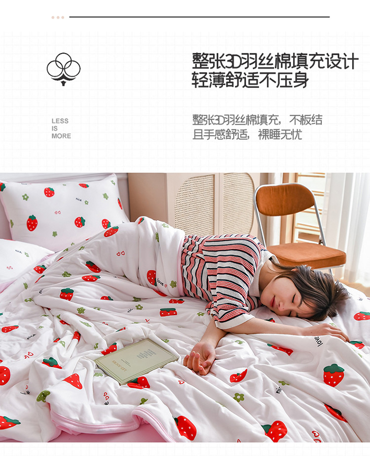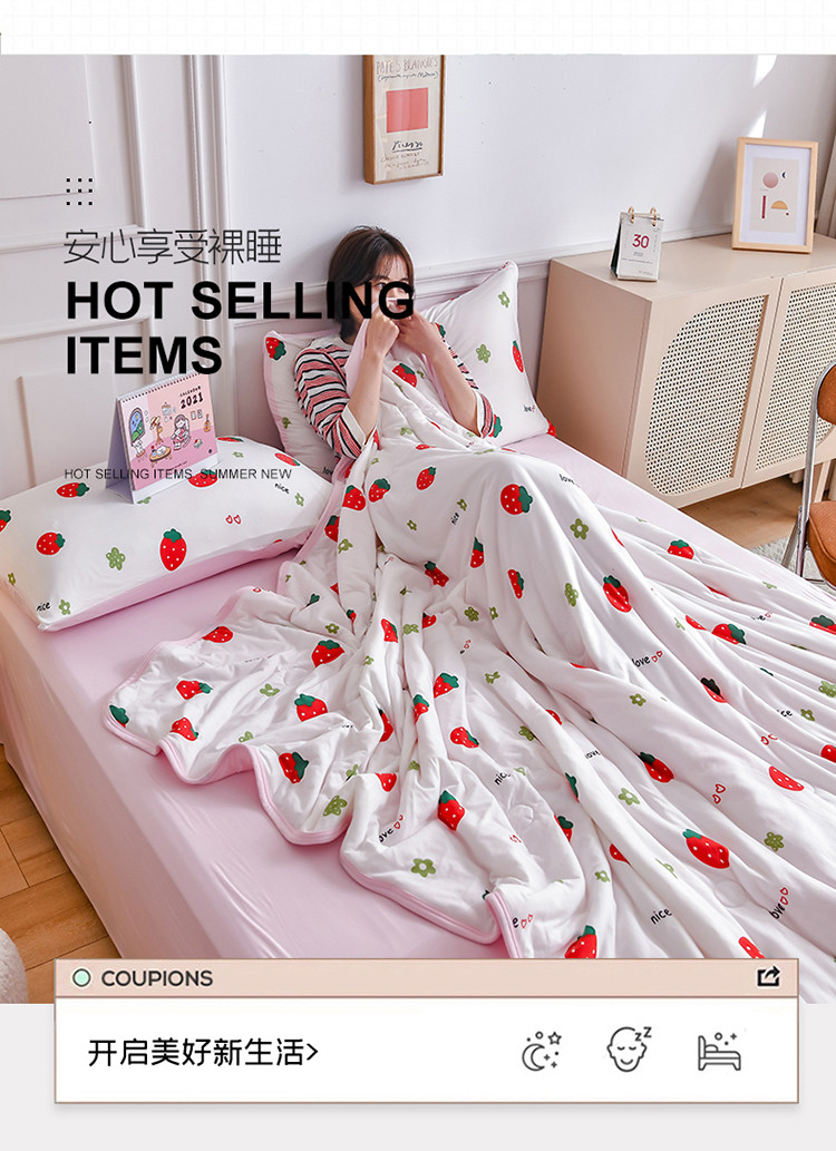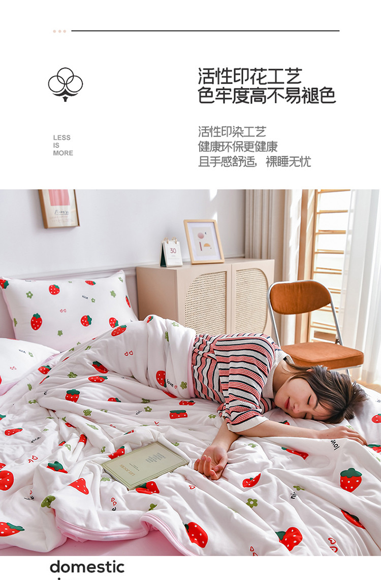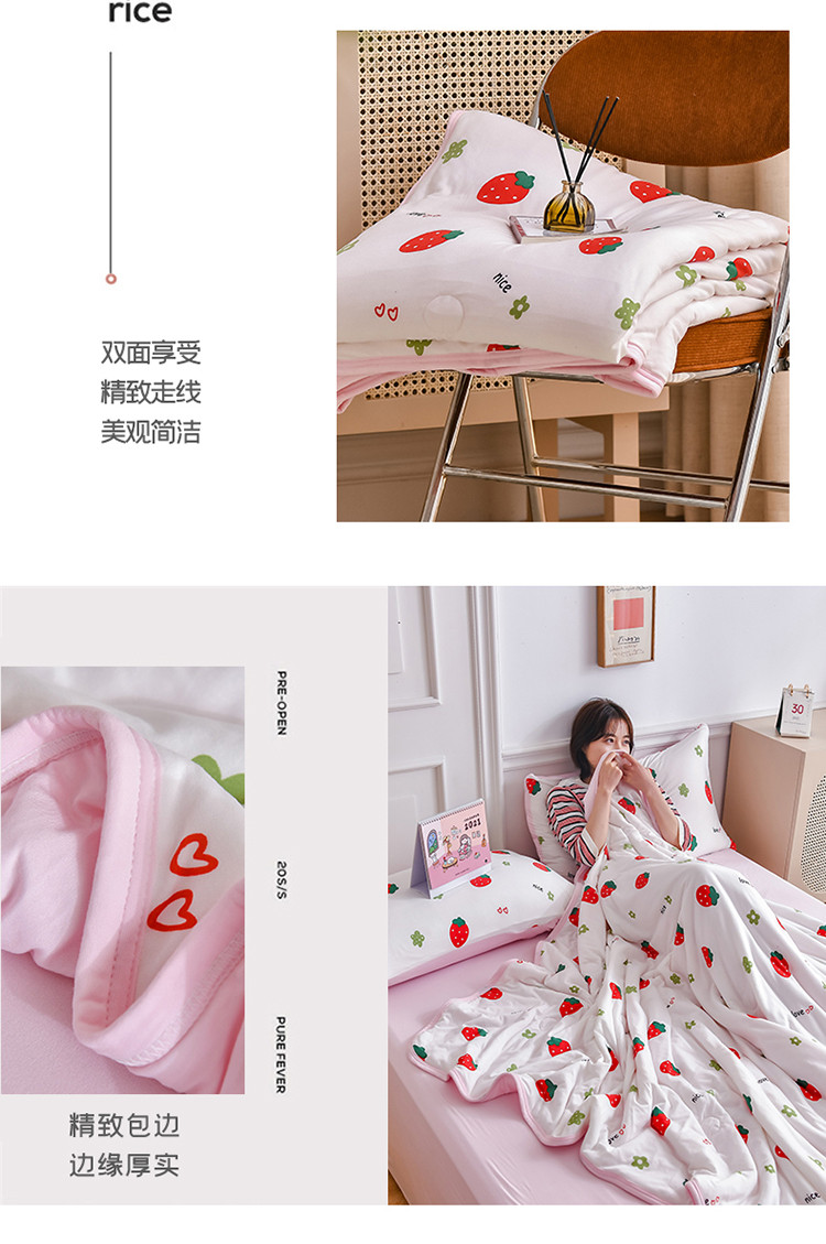 当前位置: 91家纺网 > 商品网购 > 被子 > 夏被 > 澳洲羽2024新款凉感丝针织棉夏被四件套空调被 草莓派