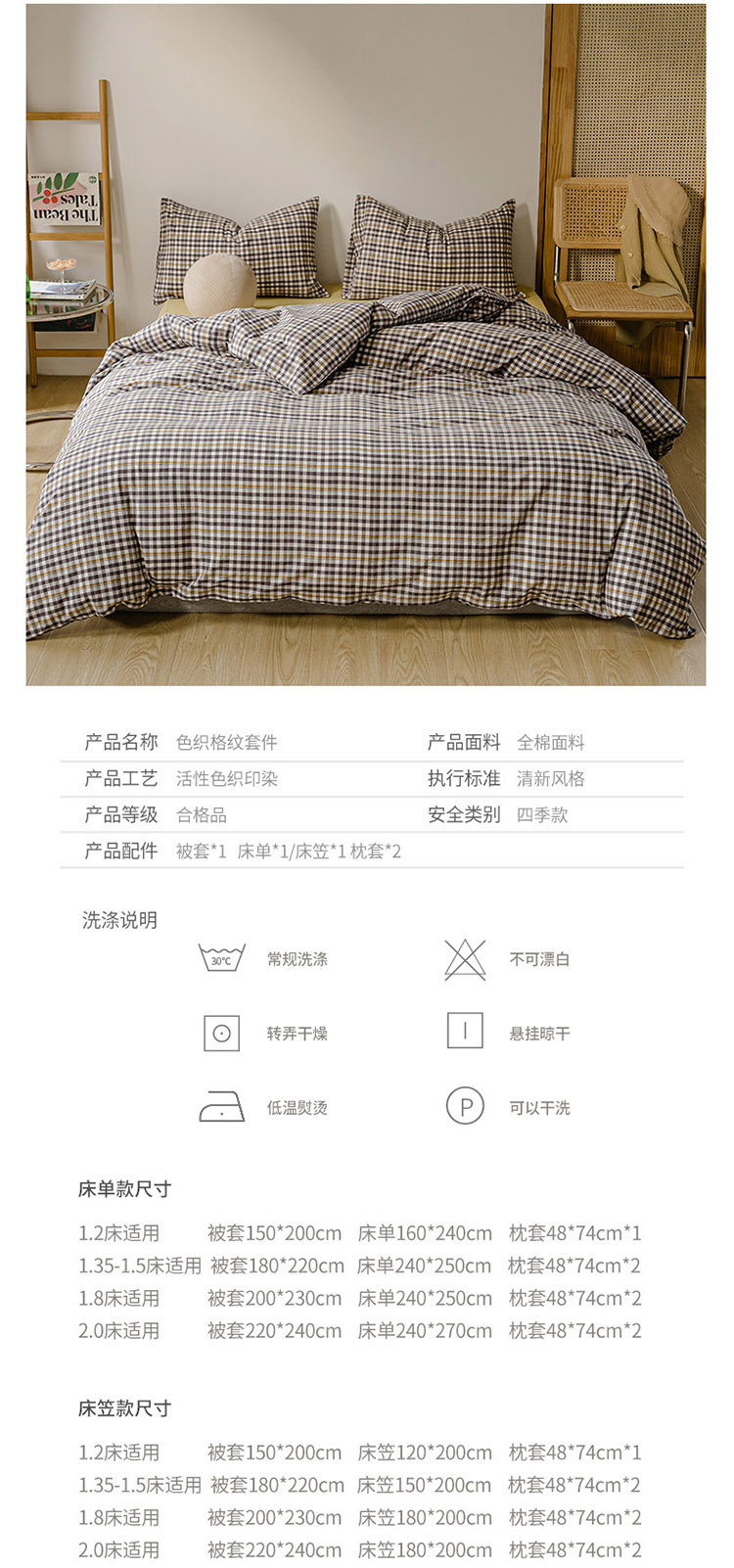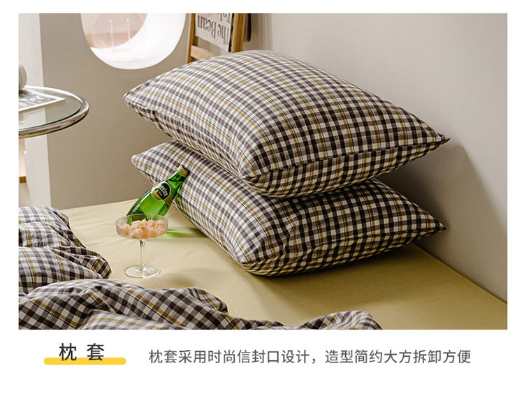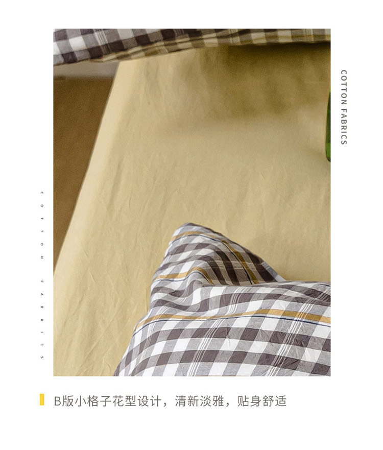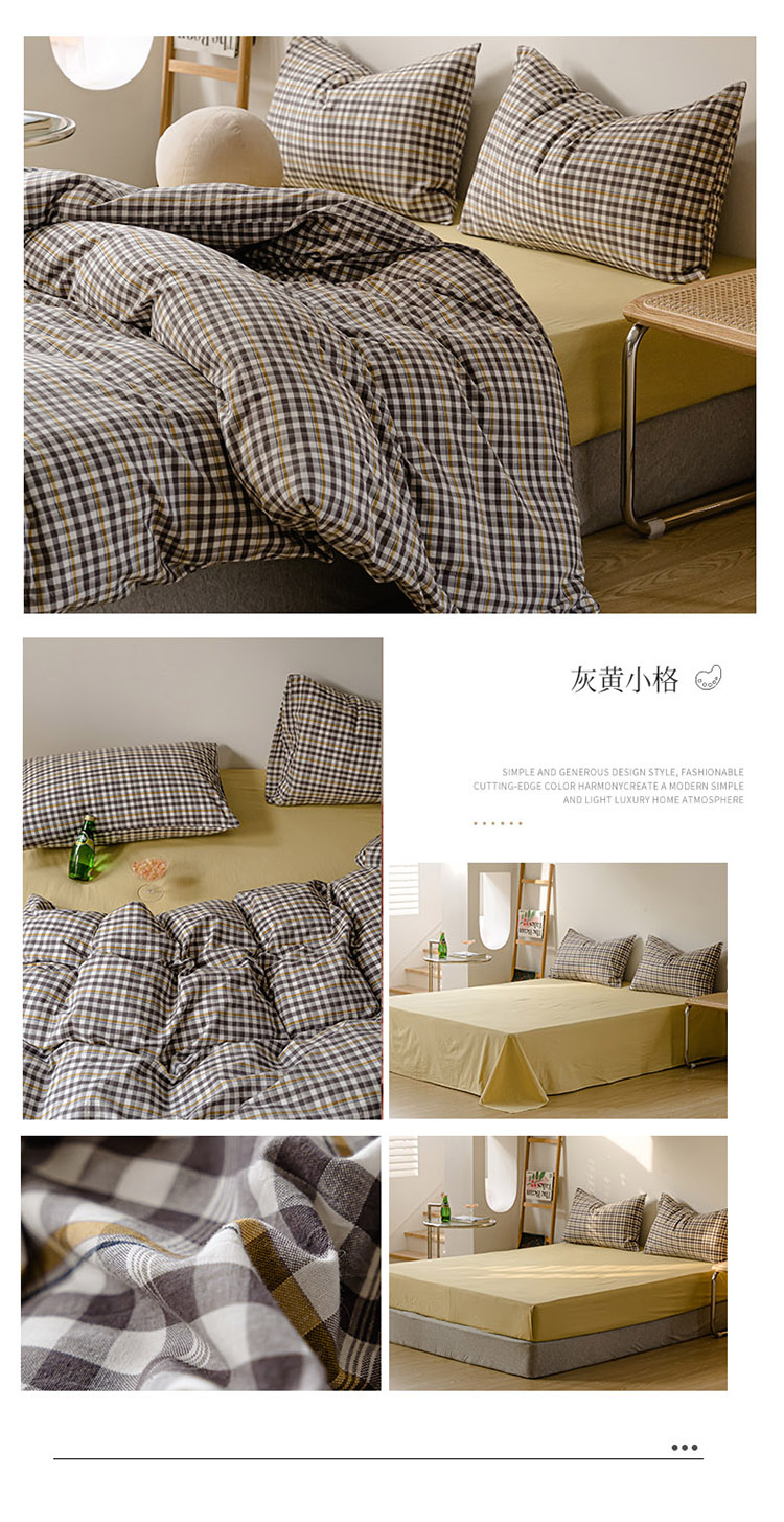 当前位置: 91家纺网 > 商品网购 > 床品套件 > 四件套 > 水洗棉四件套 > 柠萌家居 2021新款无印风格良品色织水洗棉四件套 灰黄小格